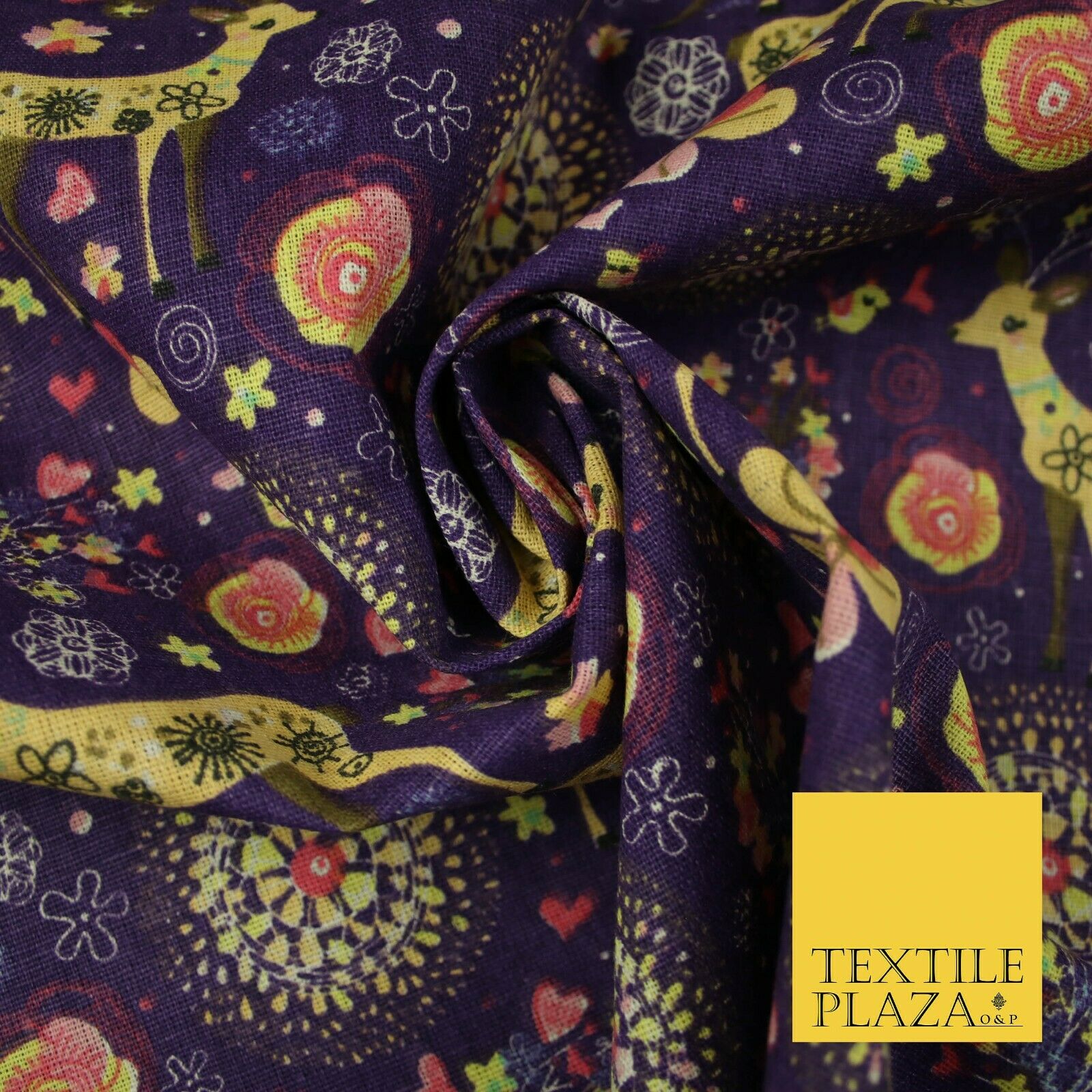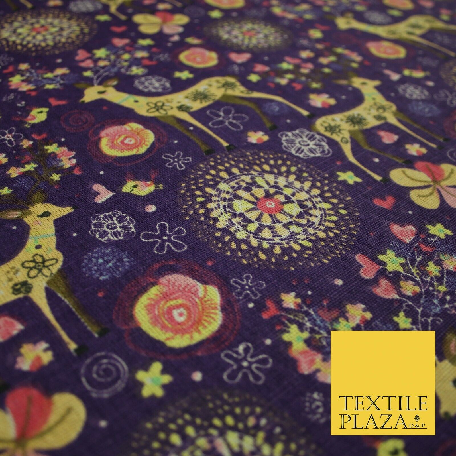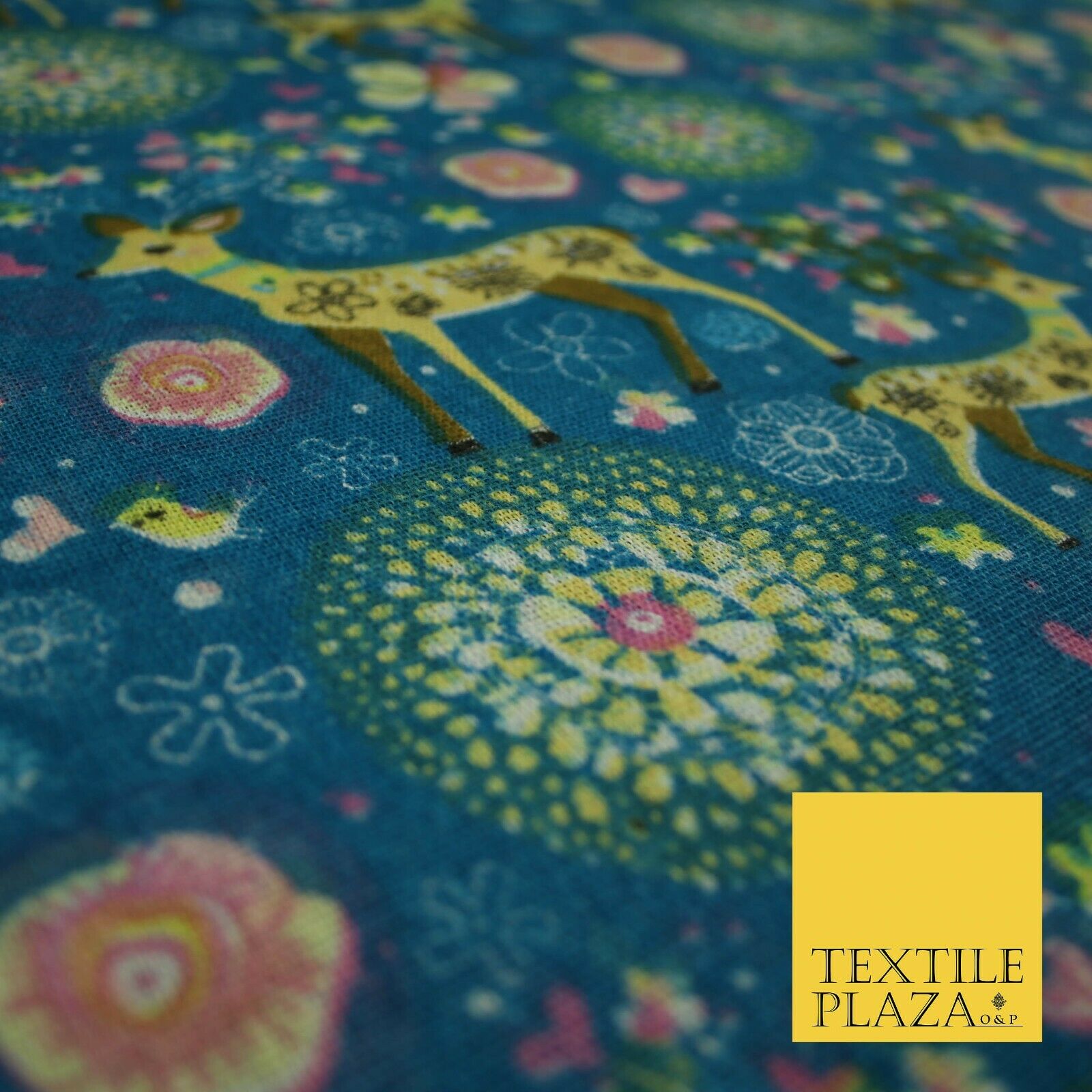 Christmas Ornate Reindeer Floral Flower Printed 100% Cotton Canvas Fabric 60"