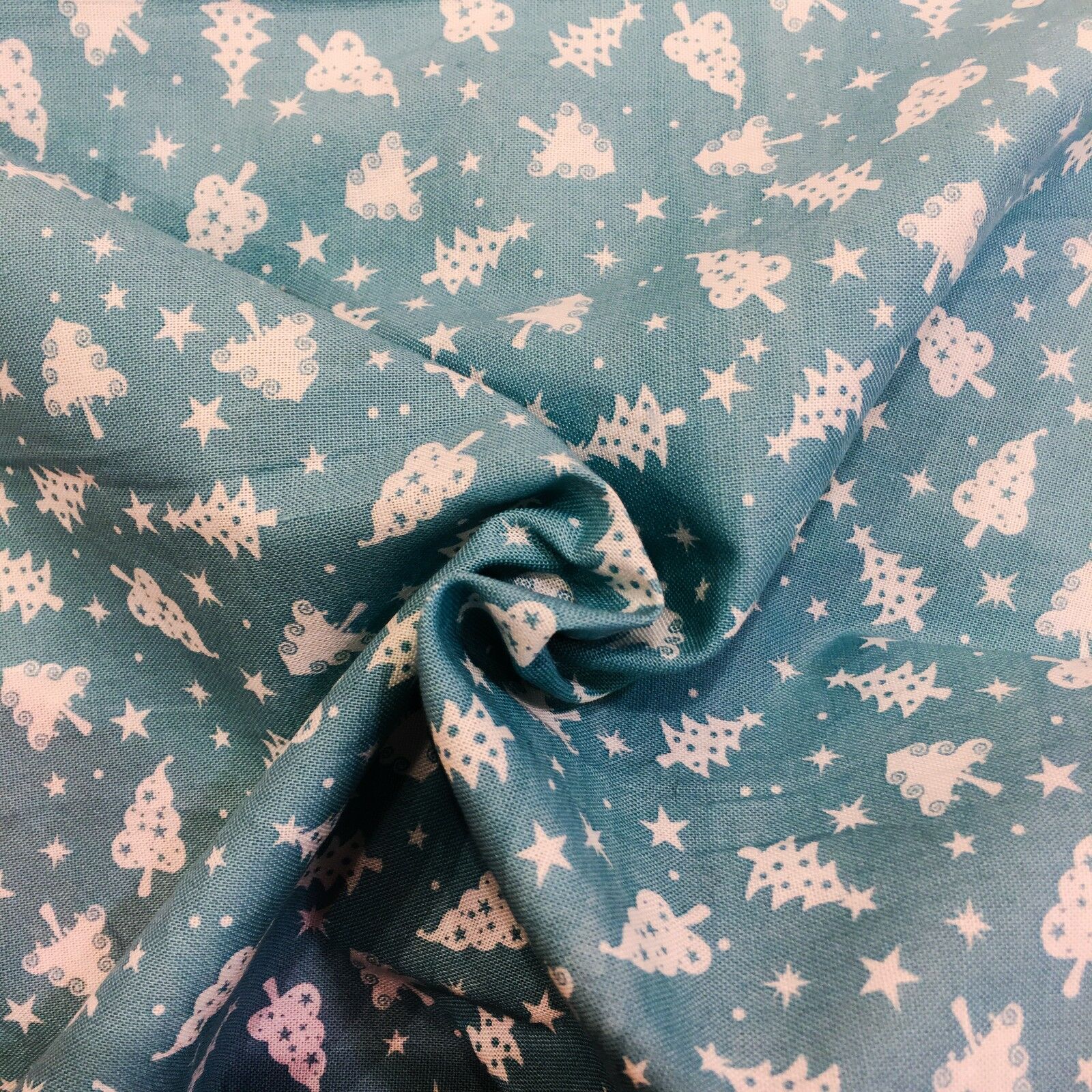 Christmas Trees Fabric 100% Cotton - Per Metre/Half Metre/Fat Quarter AQUA RF41