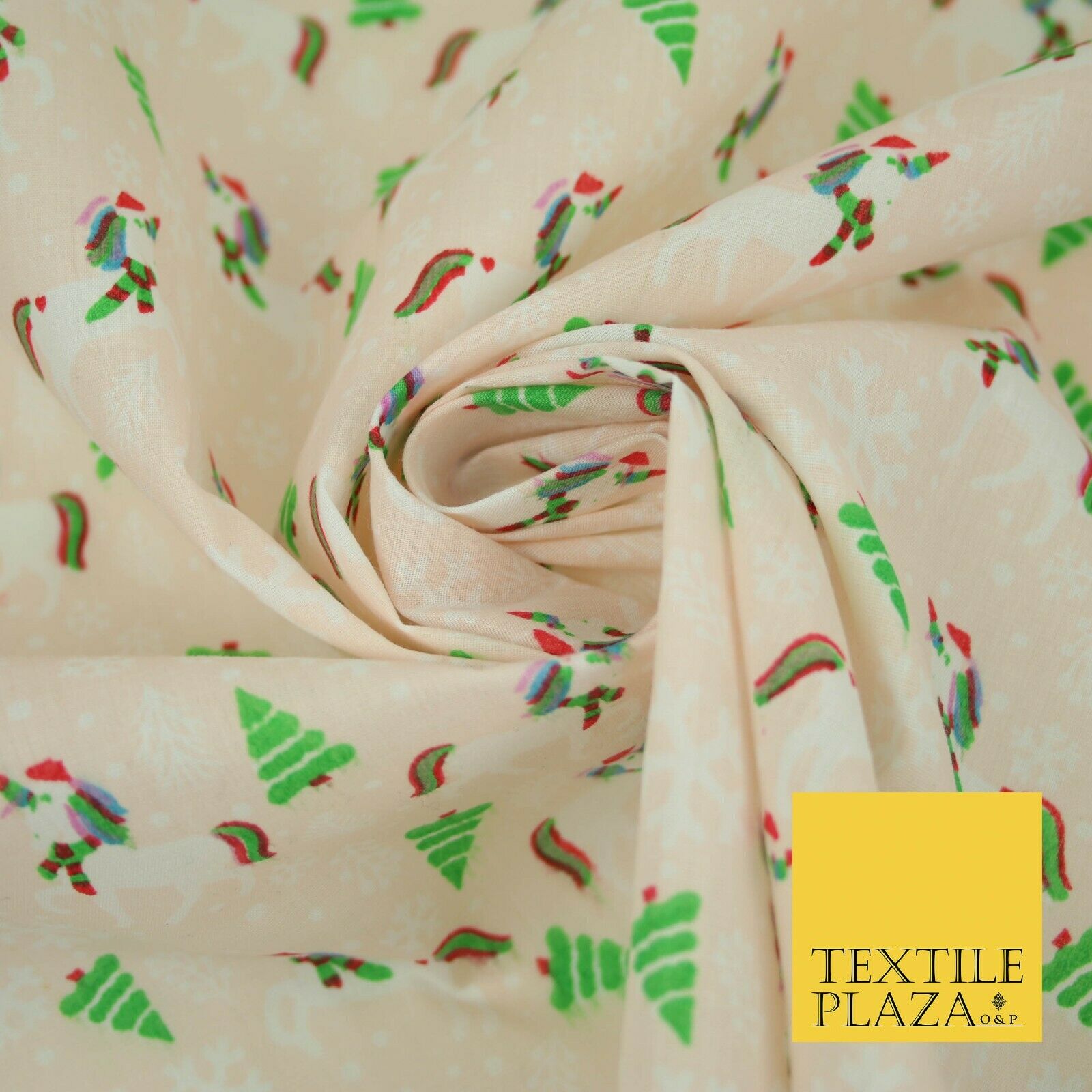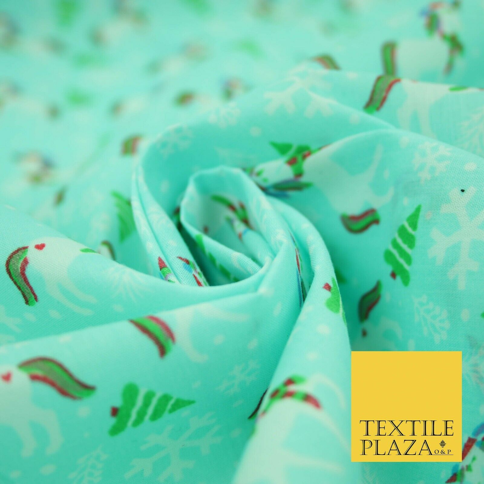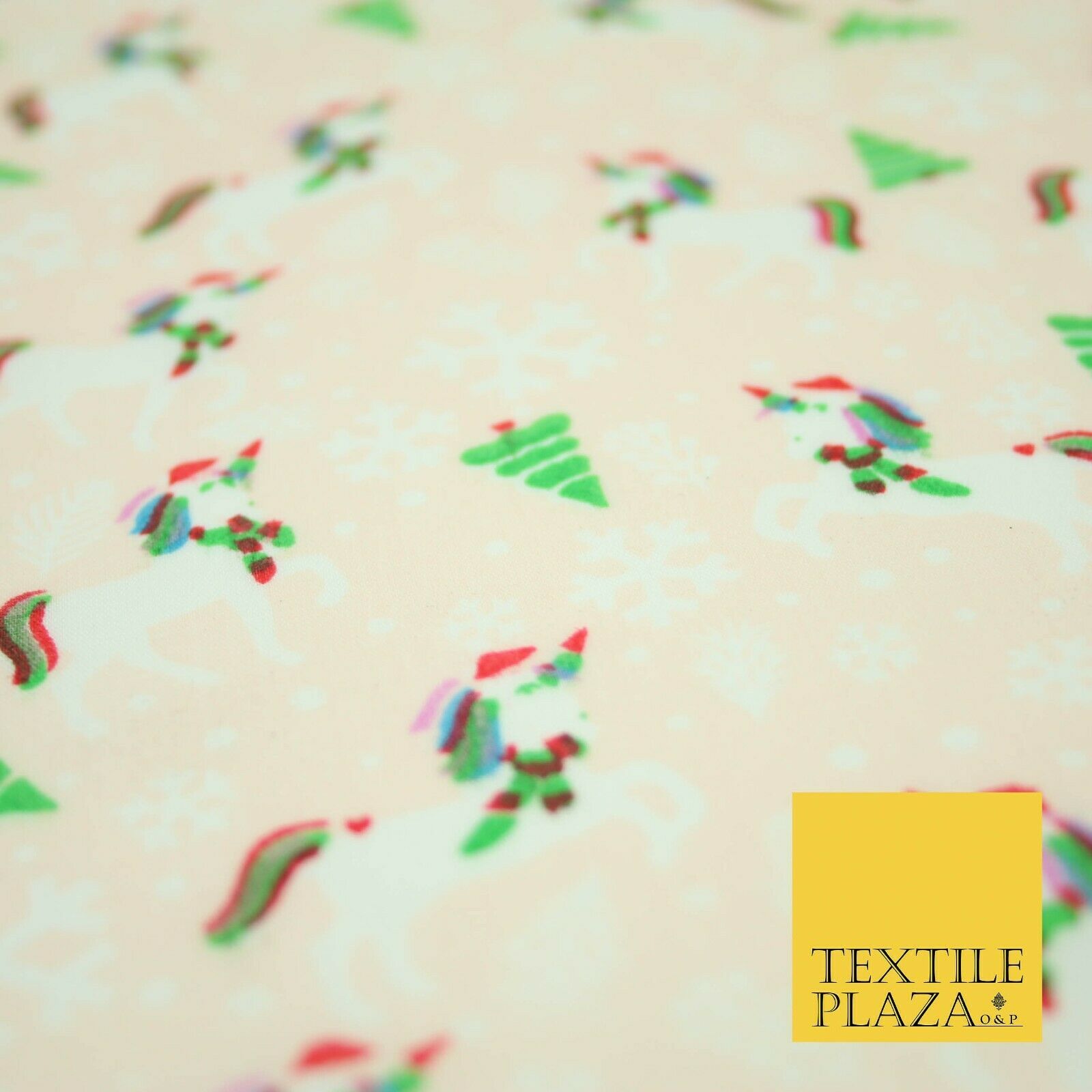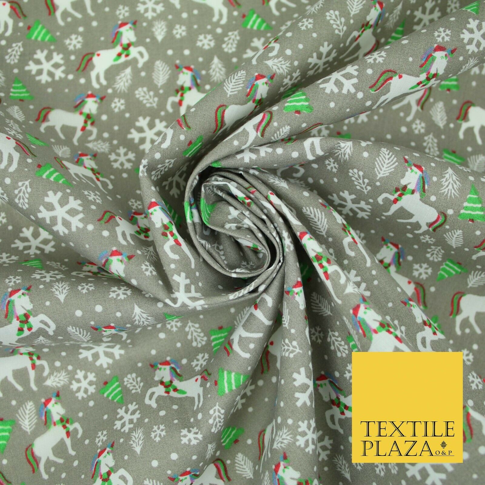 Premium Christmas Flying Unicorn Snowflake Trees Festive Poly Cotton Fabric