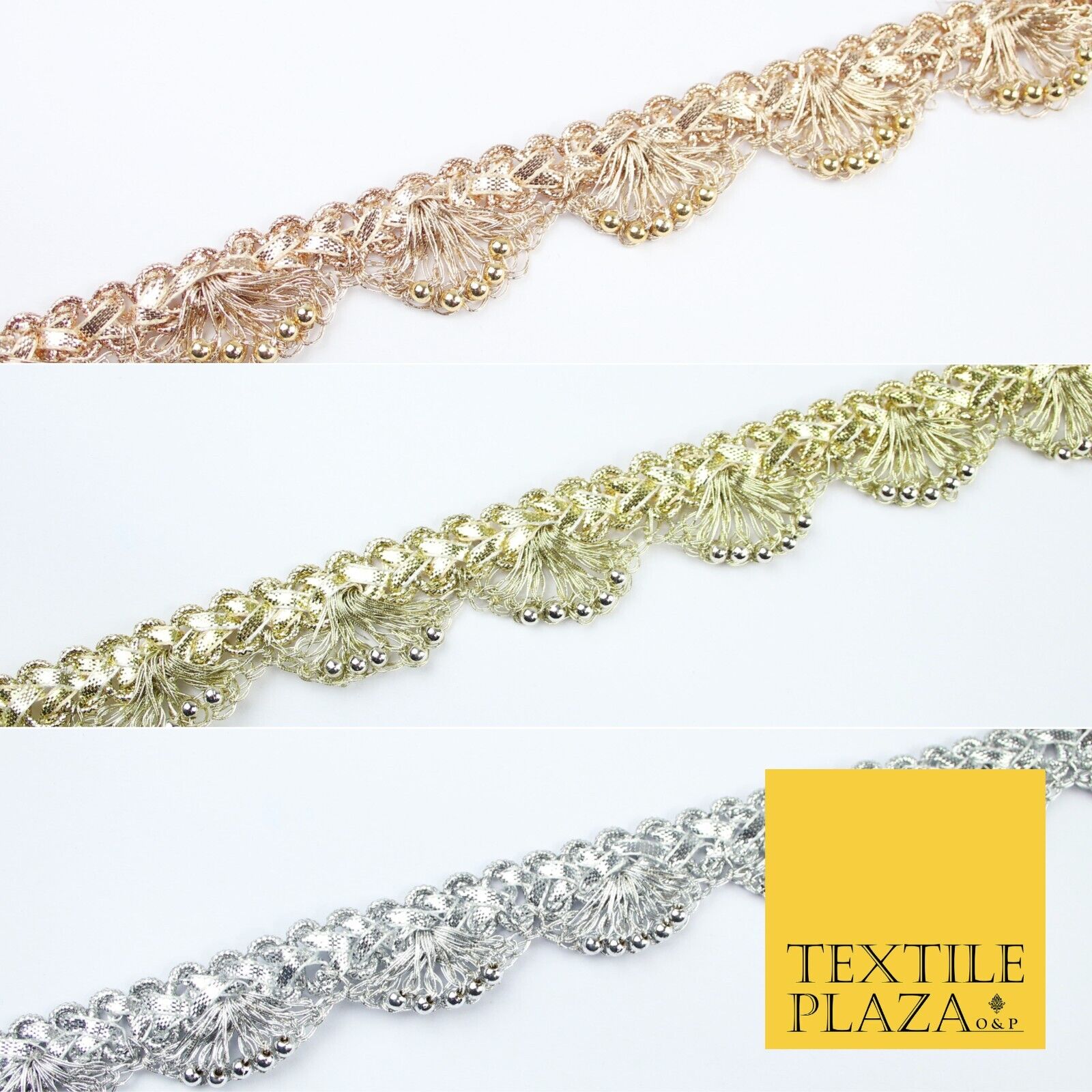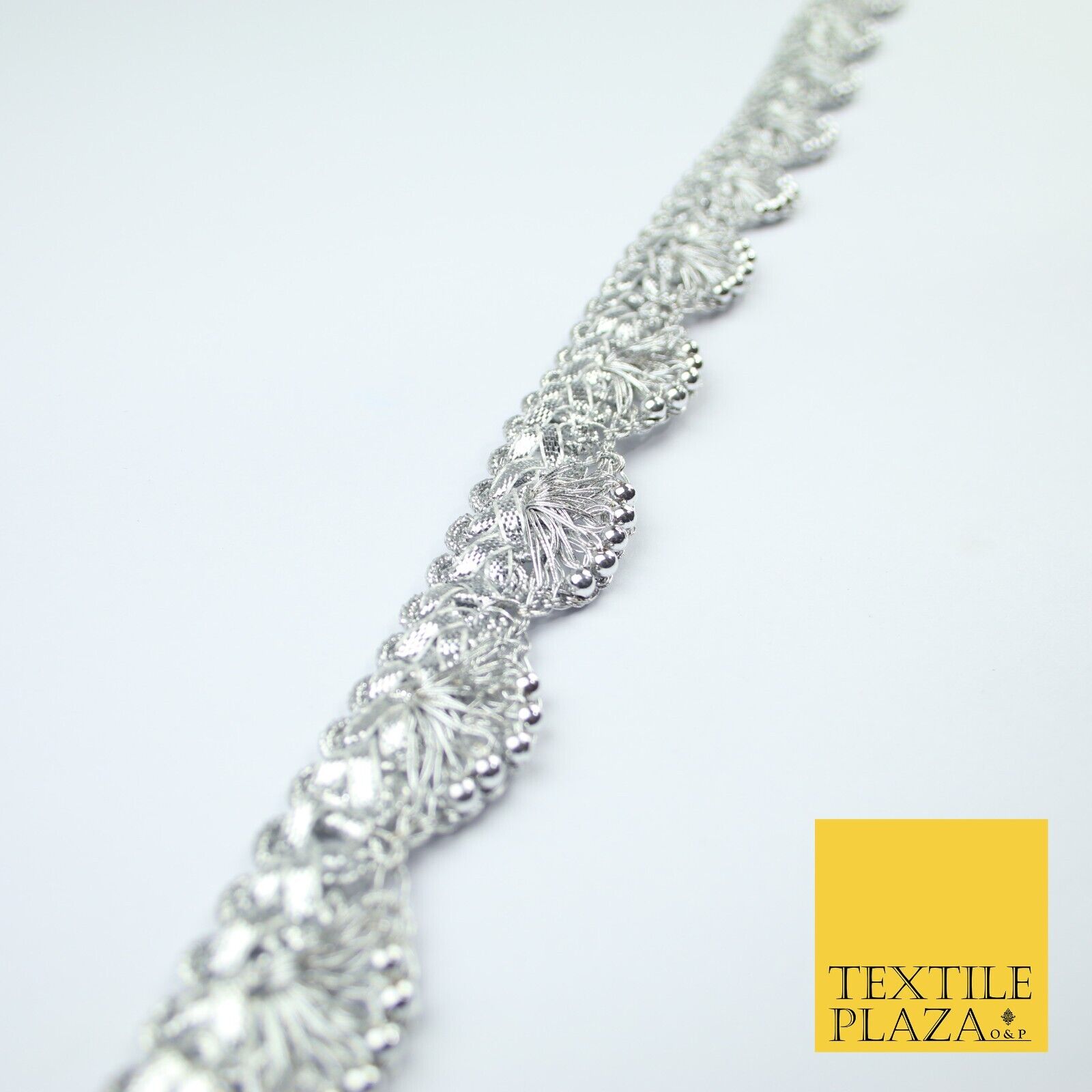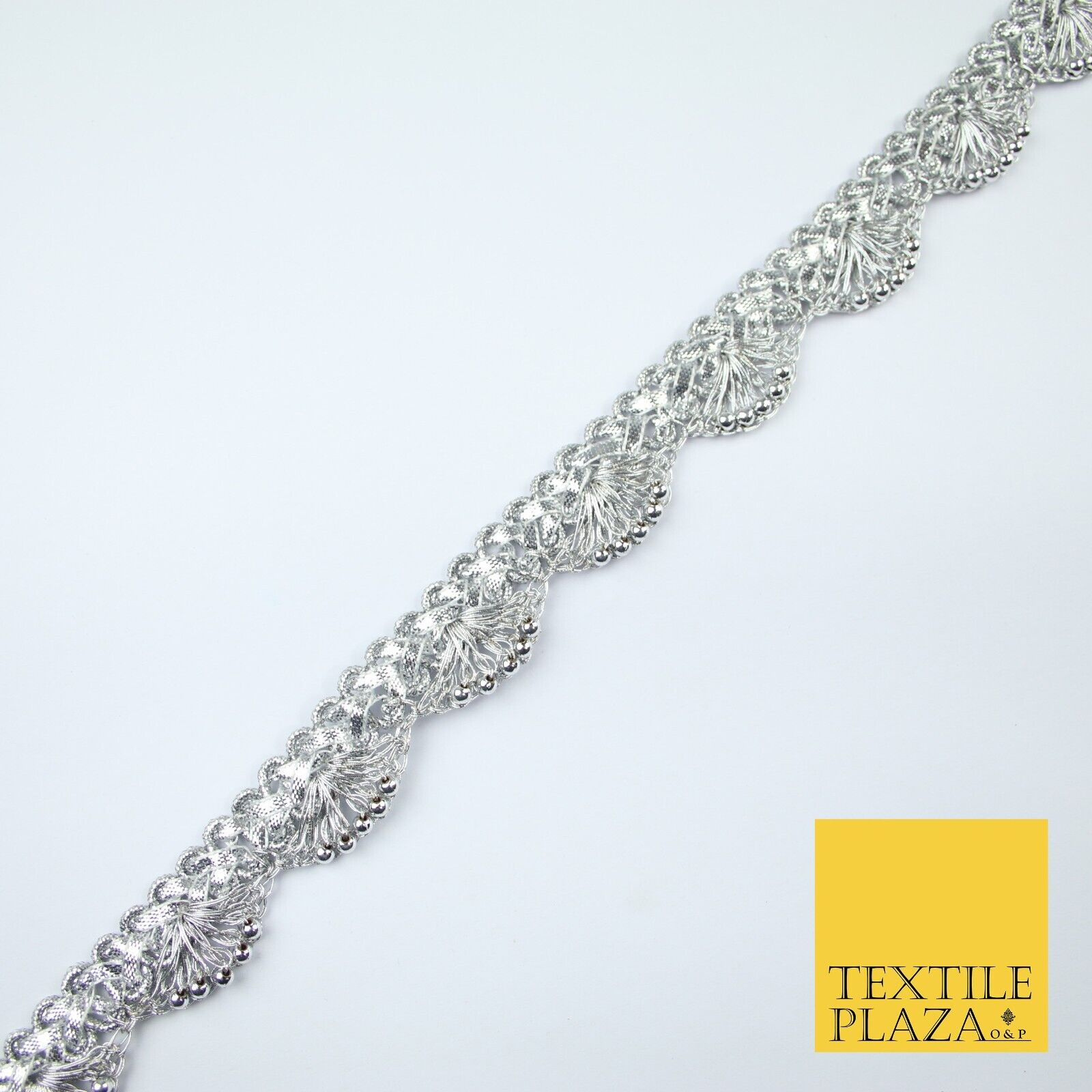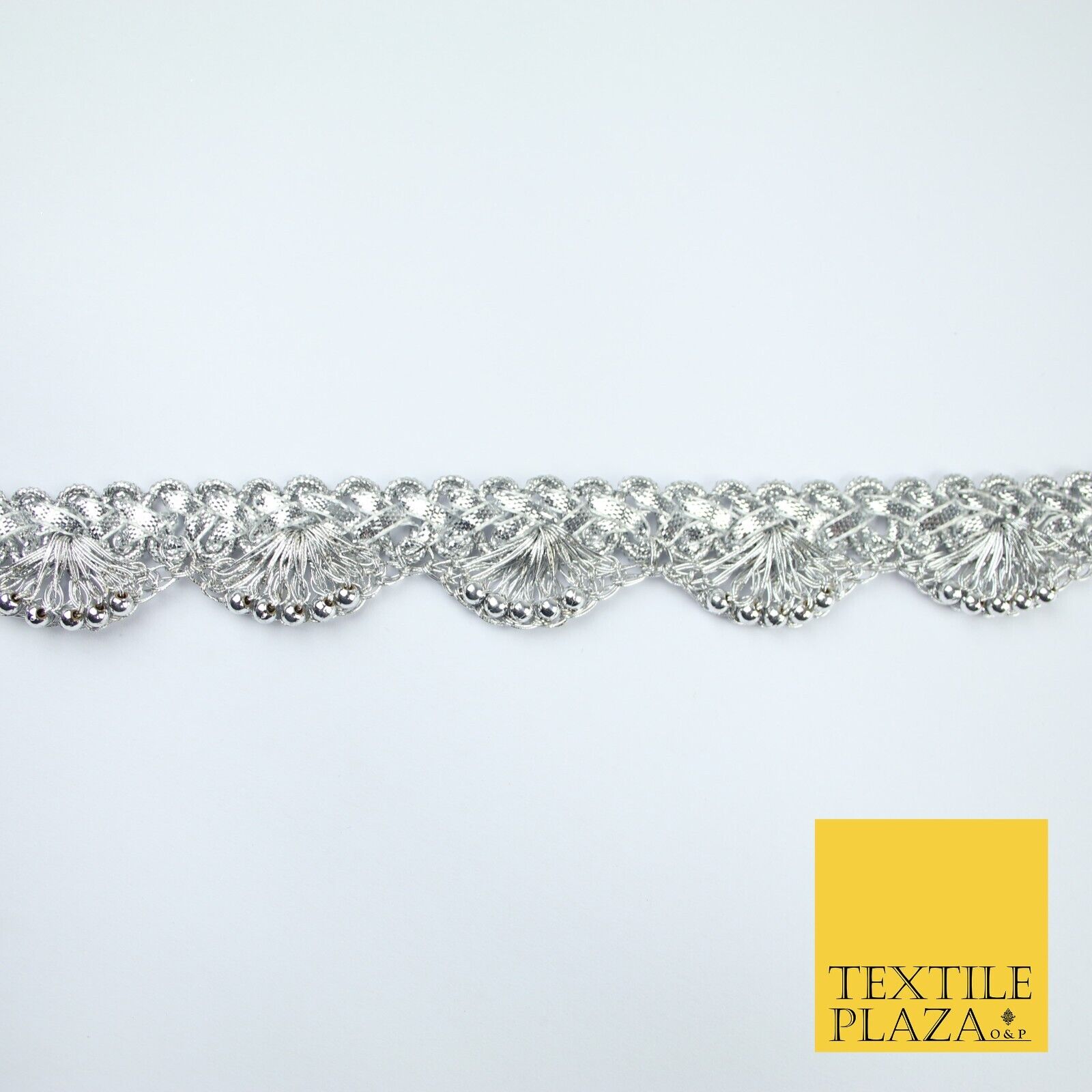 Chrome Pearl Beaded Swag Scalloped Metallic Ribbon Trim Border Lace - 2.2cm Wide