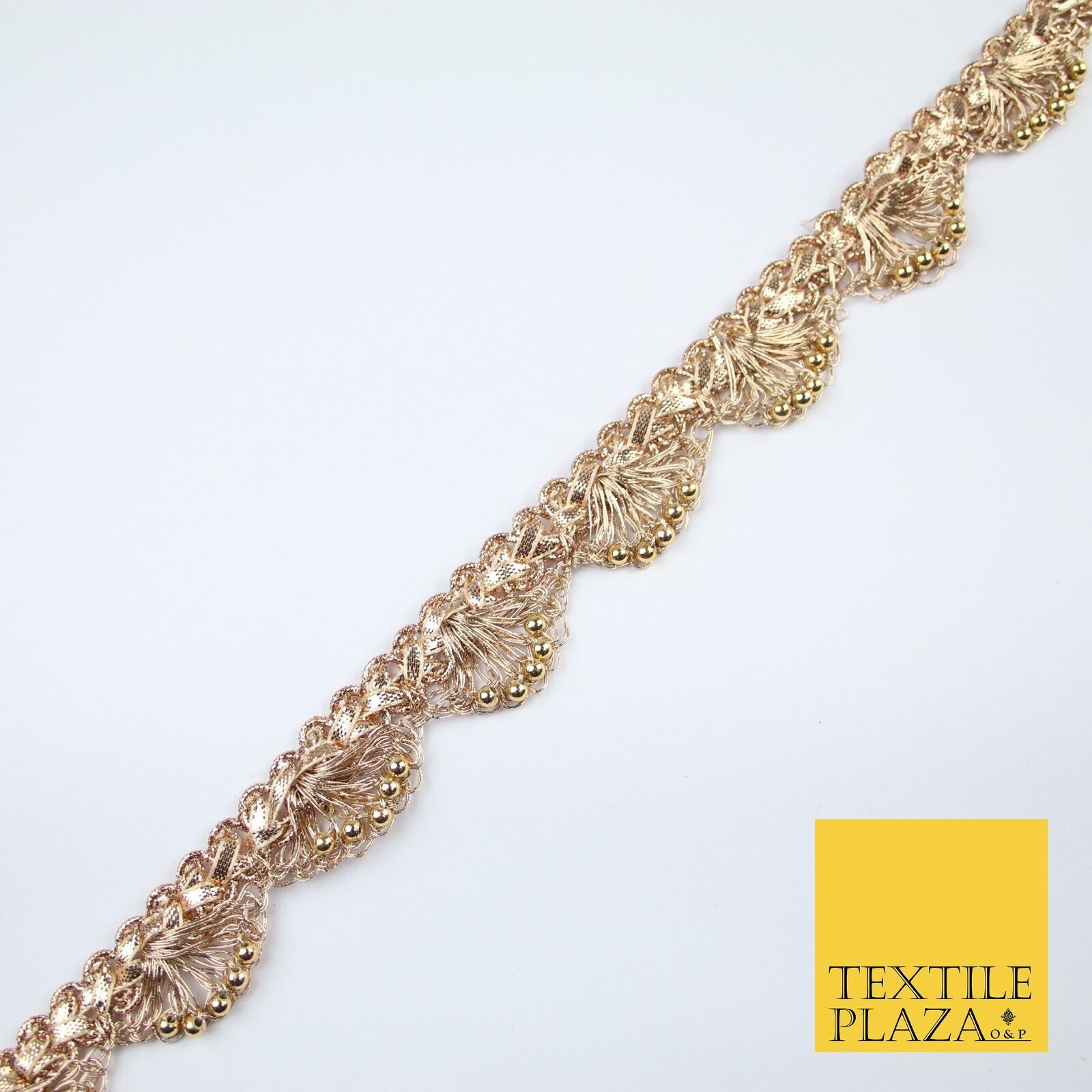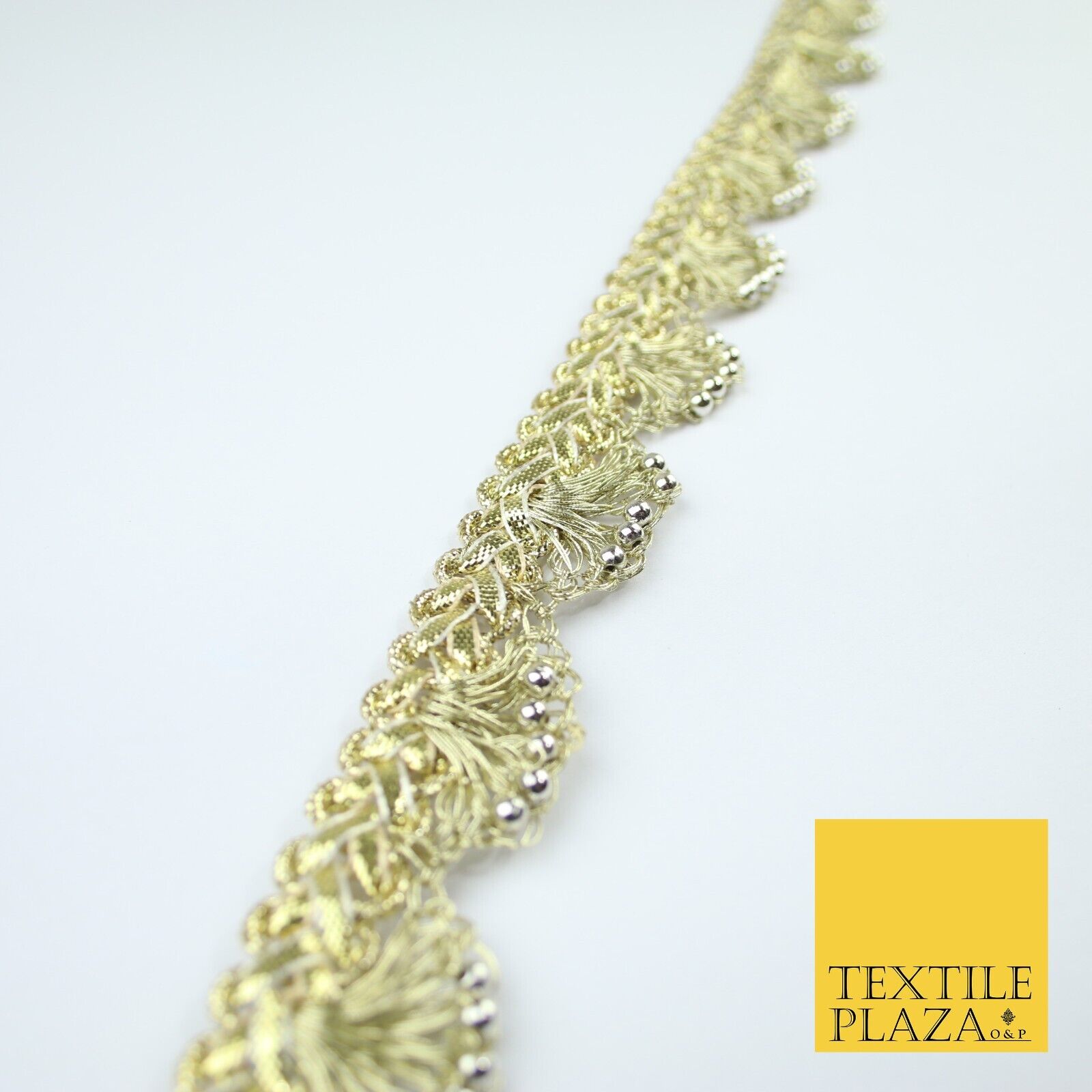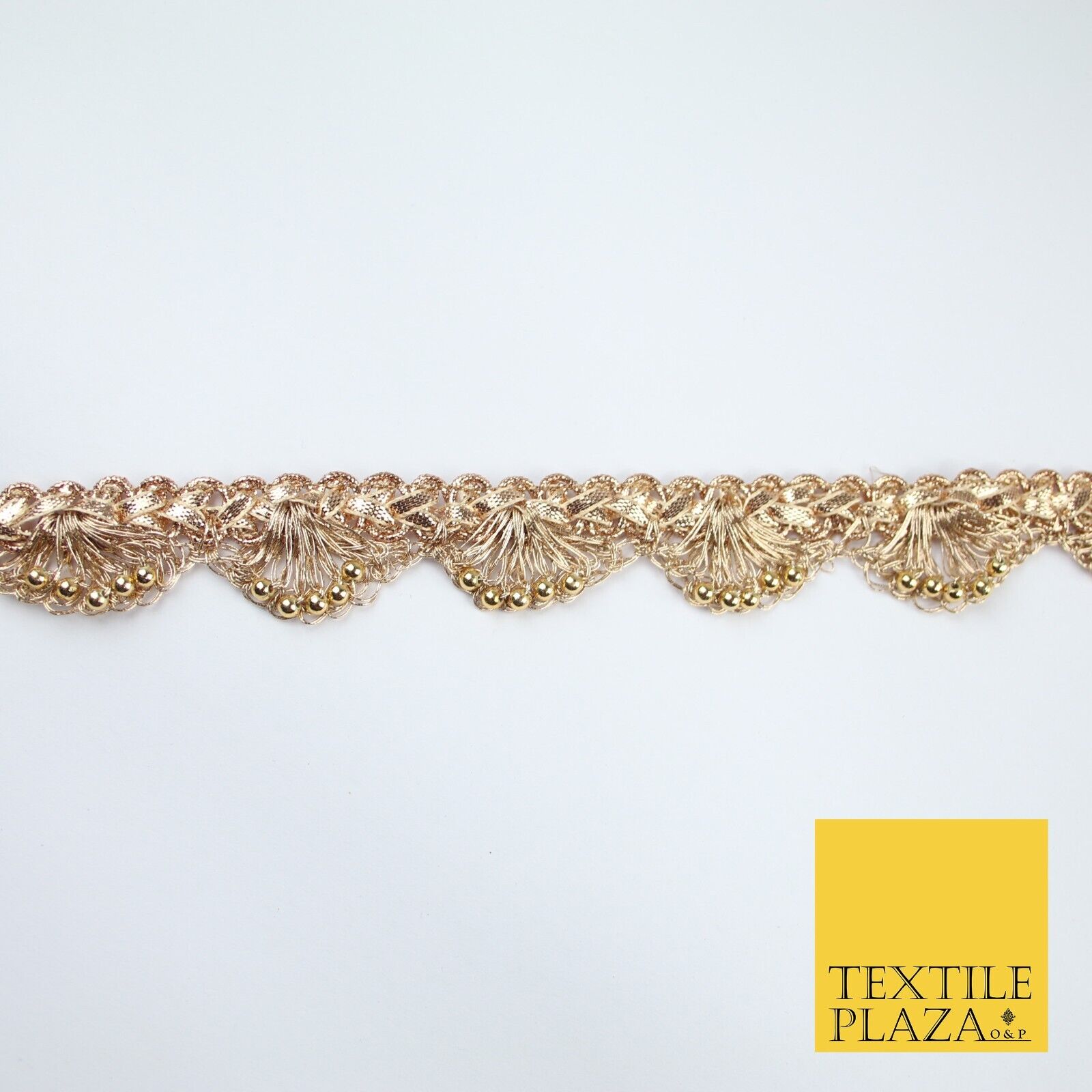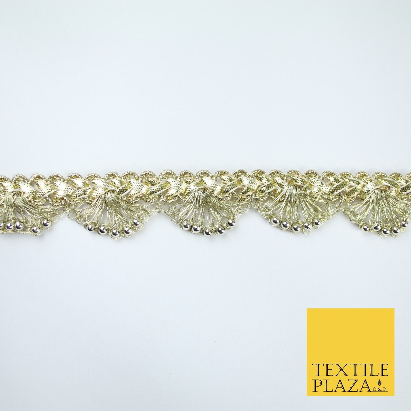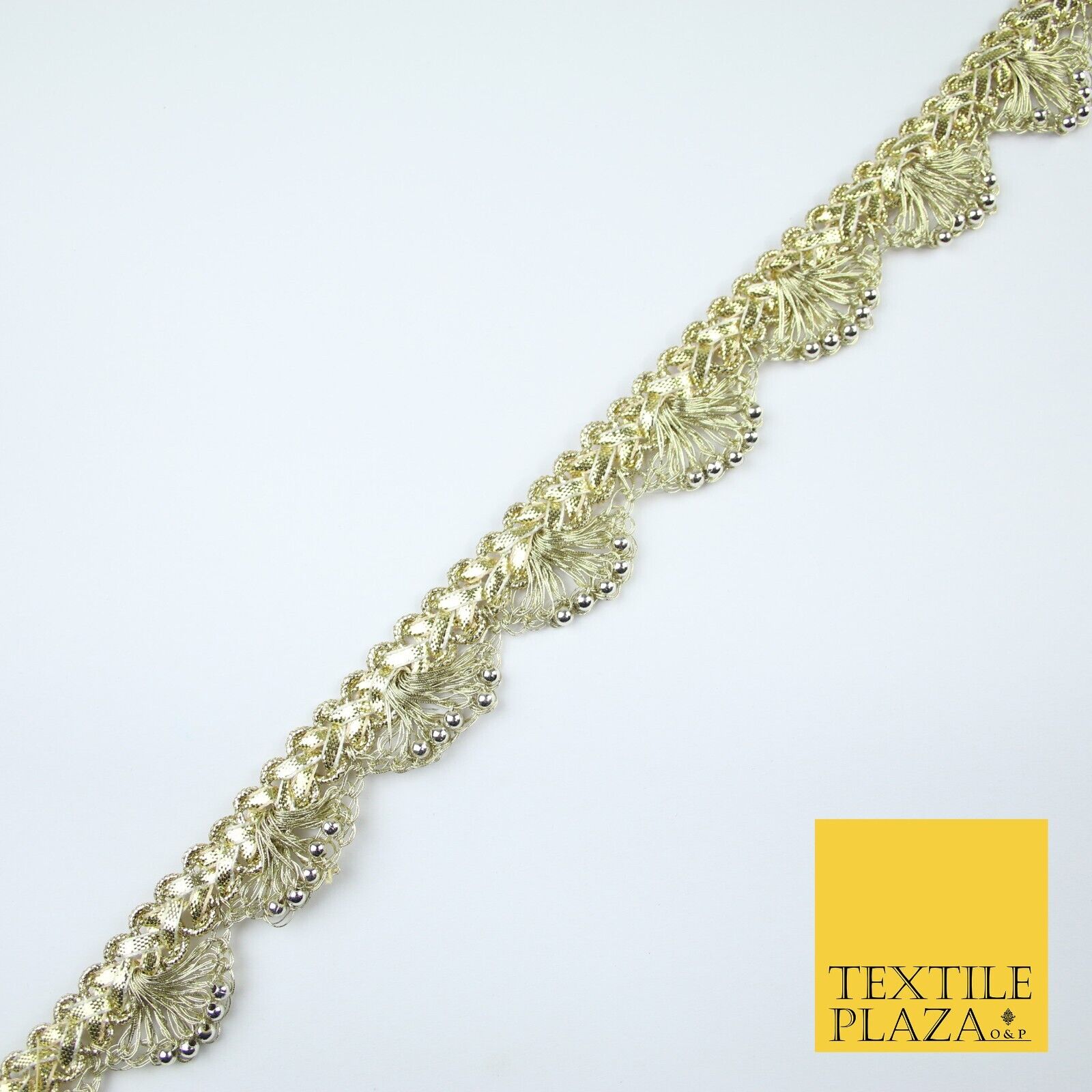 Chrome Pearl Beaded Swag Scalloped Metallic Ribbon Trim Border Lace - 2.2cm Wide