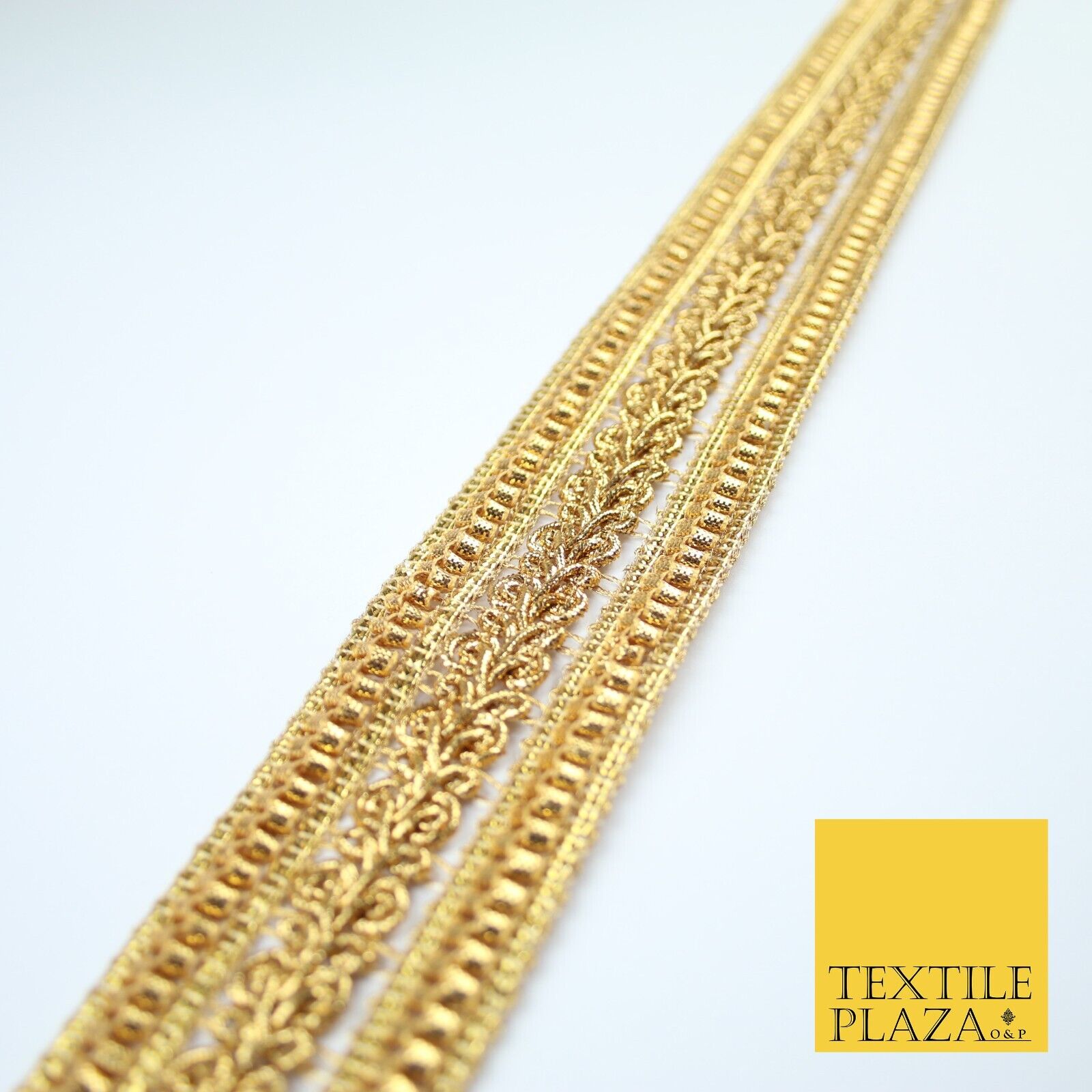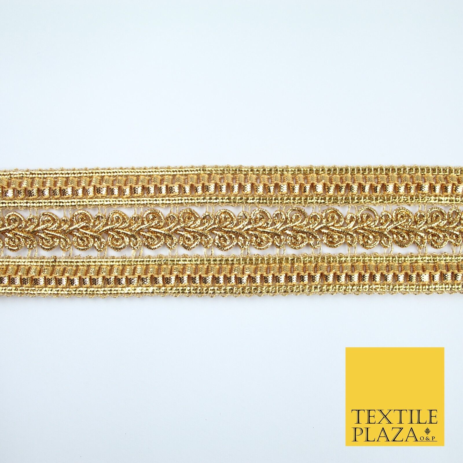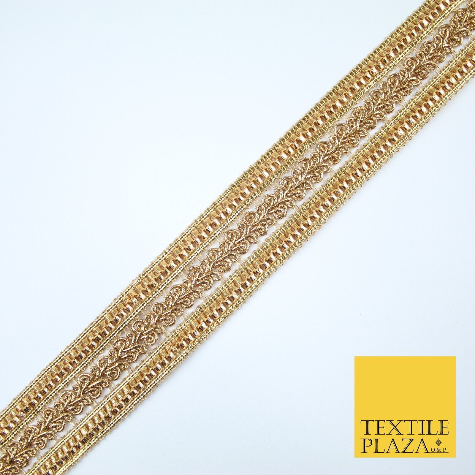 Classic Gold Double Row Metallic Ribbon Ornate Trim Border Lace - 4cm Wide X396