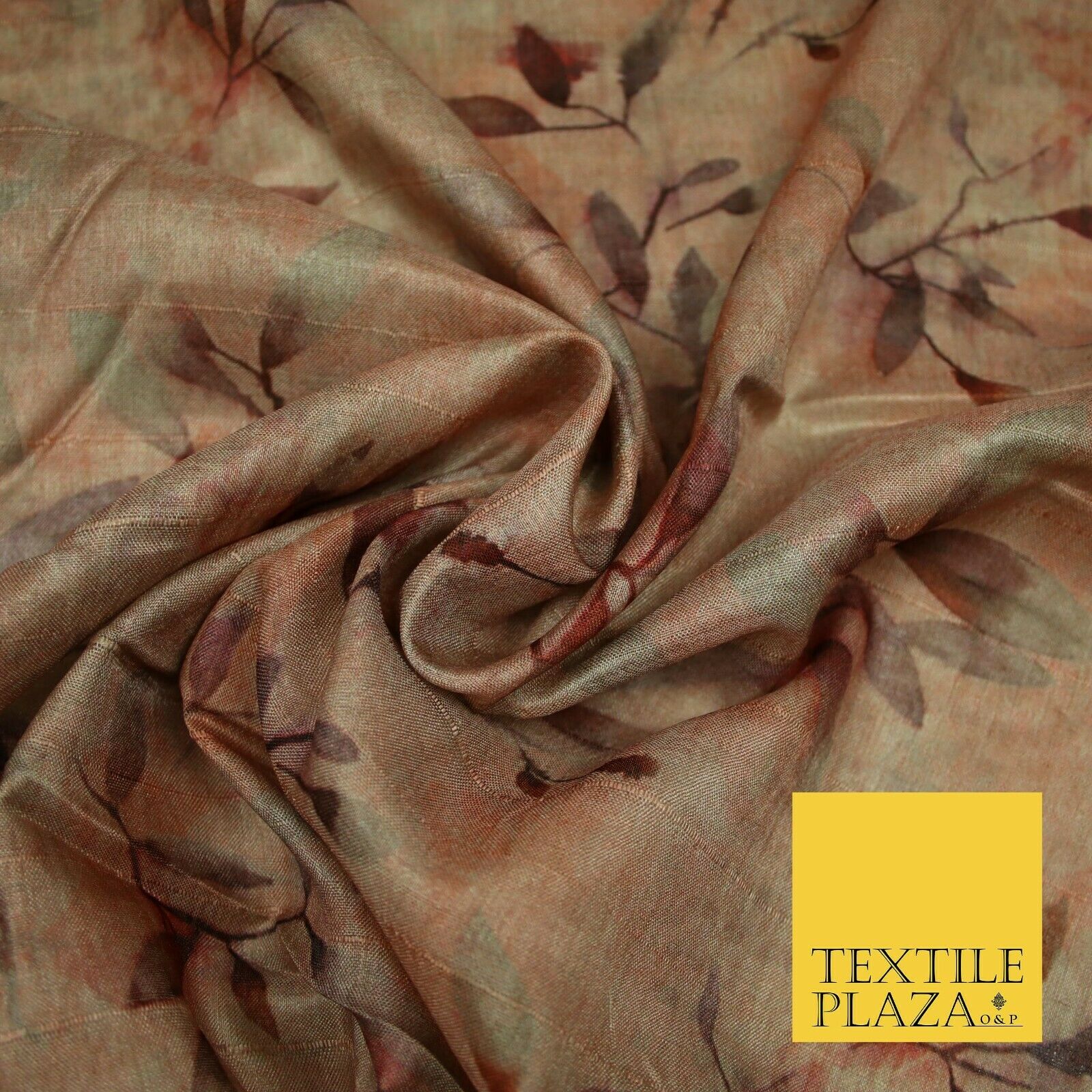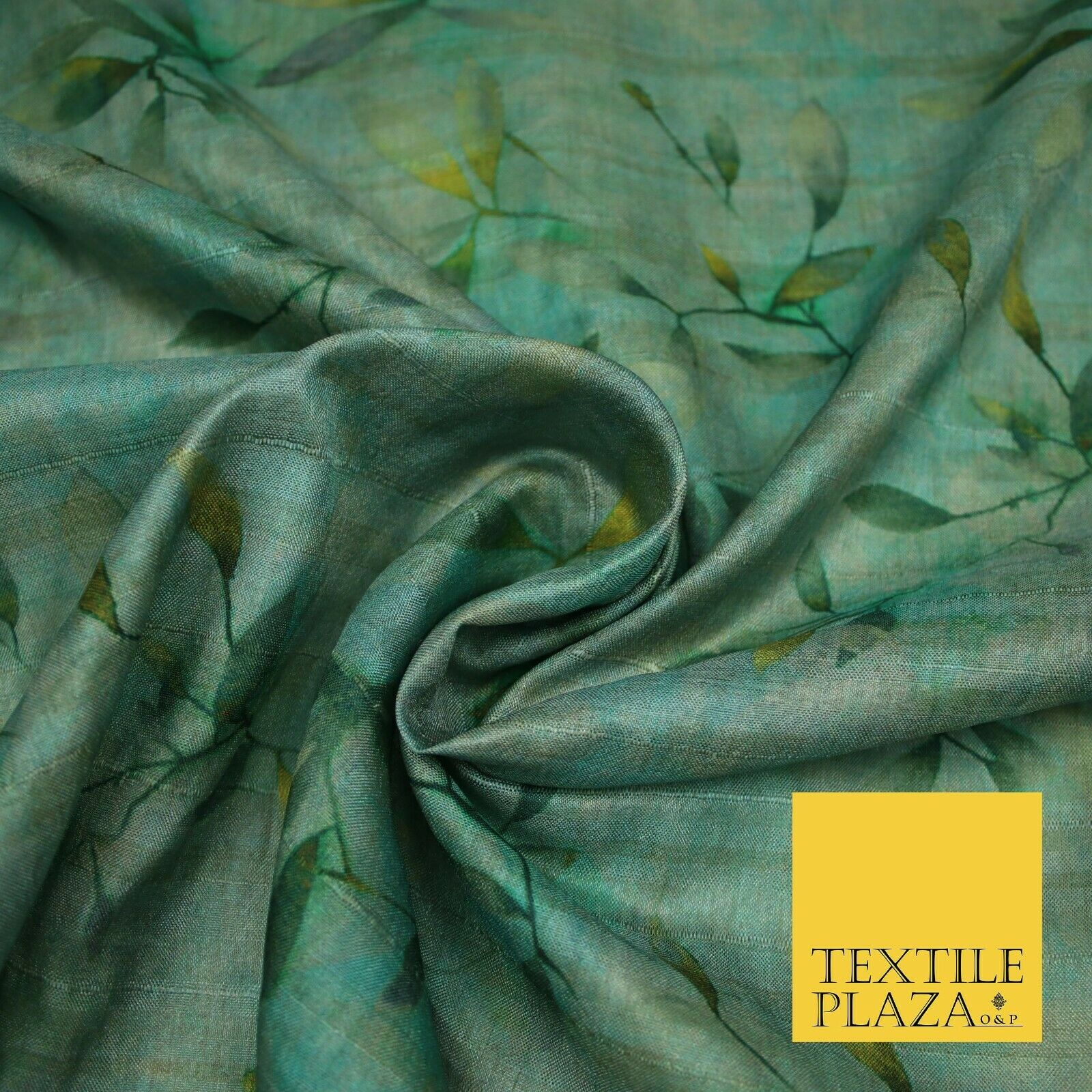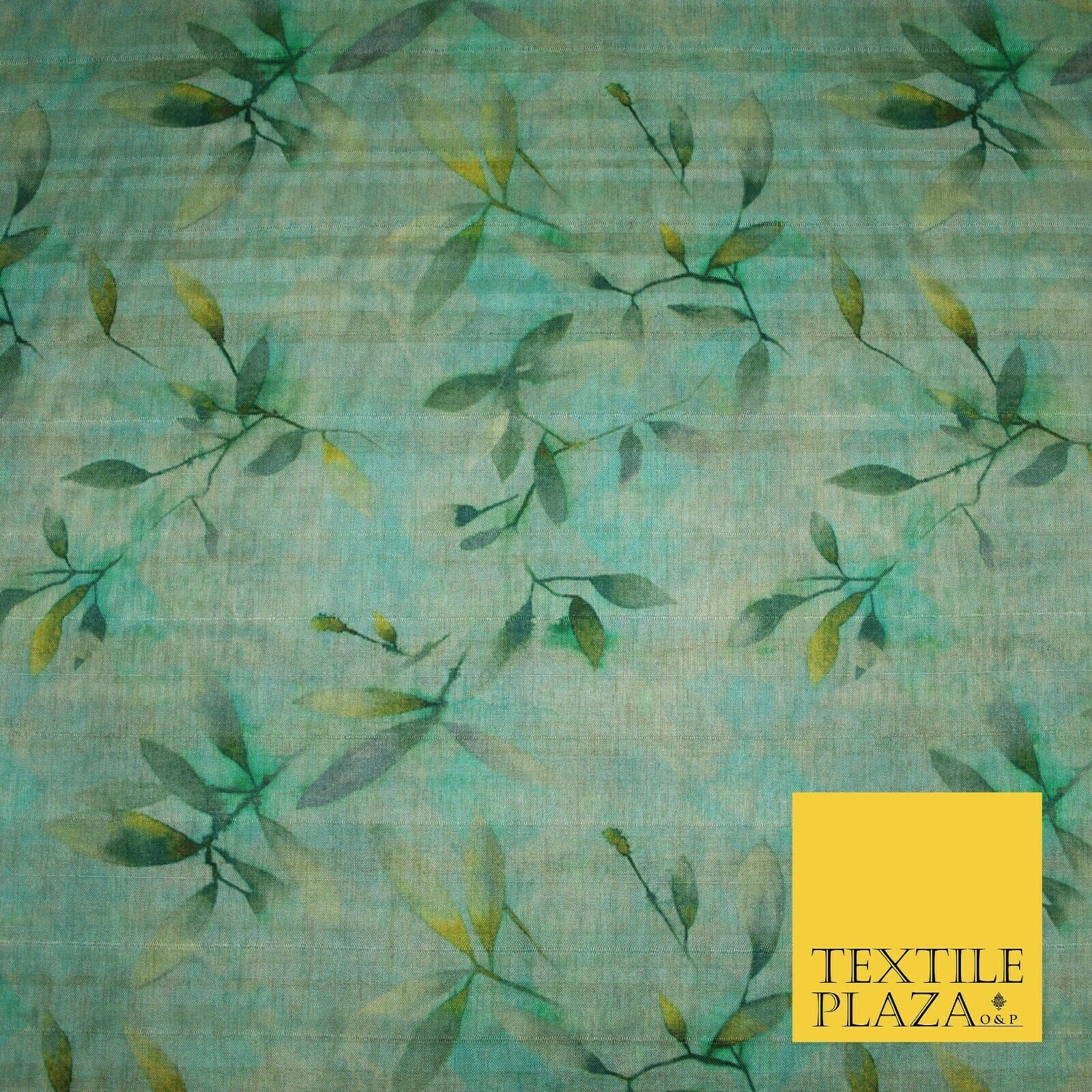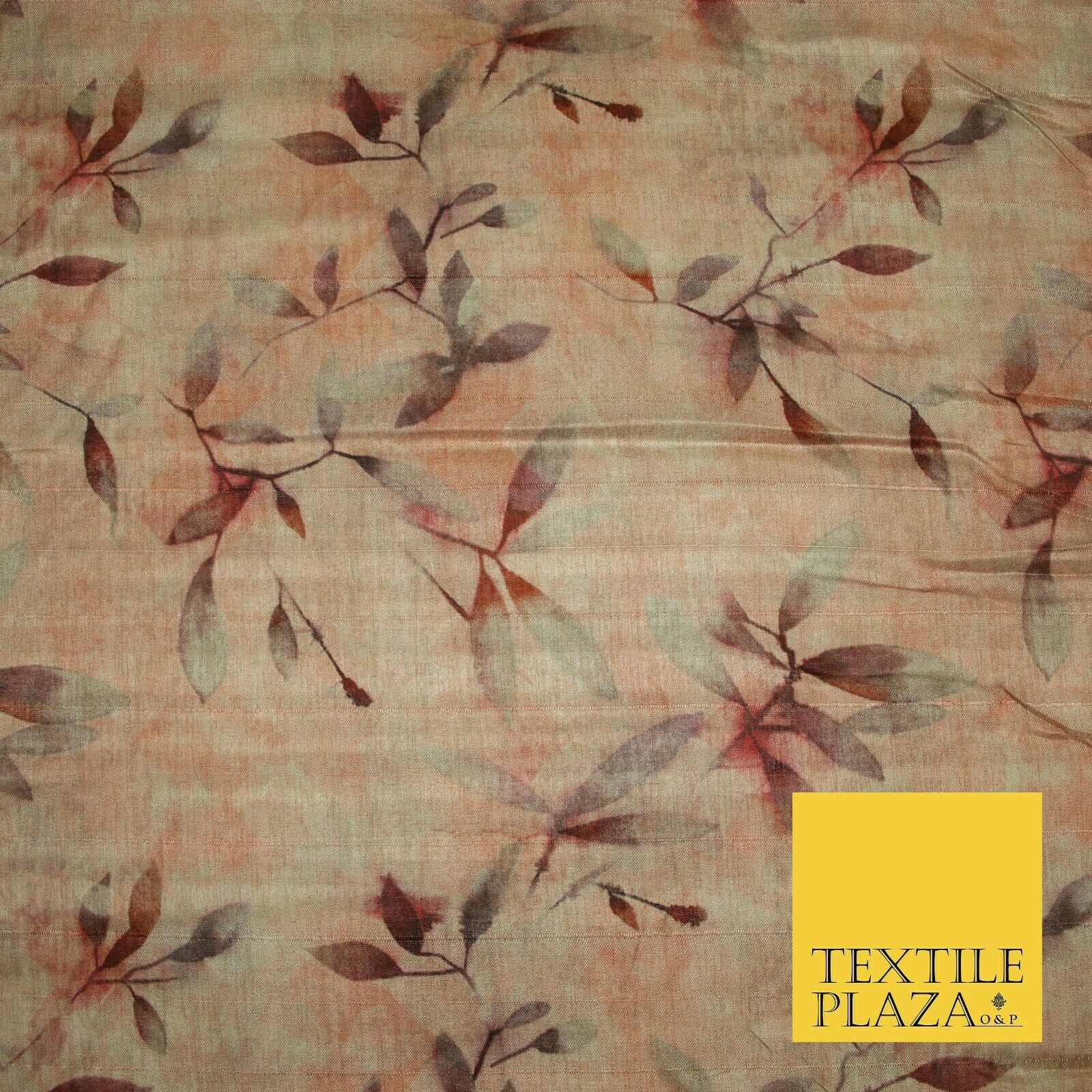 Cloudy Artsy Leaves Digital Printed Faux Dupion Raw Silk Fabric Textured Line