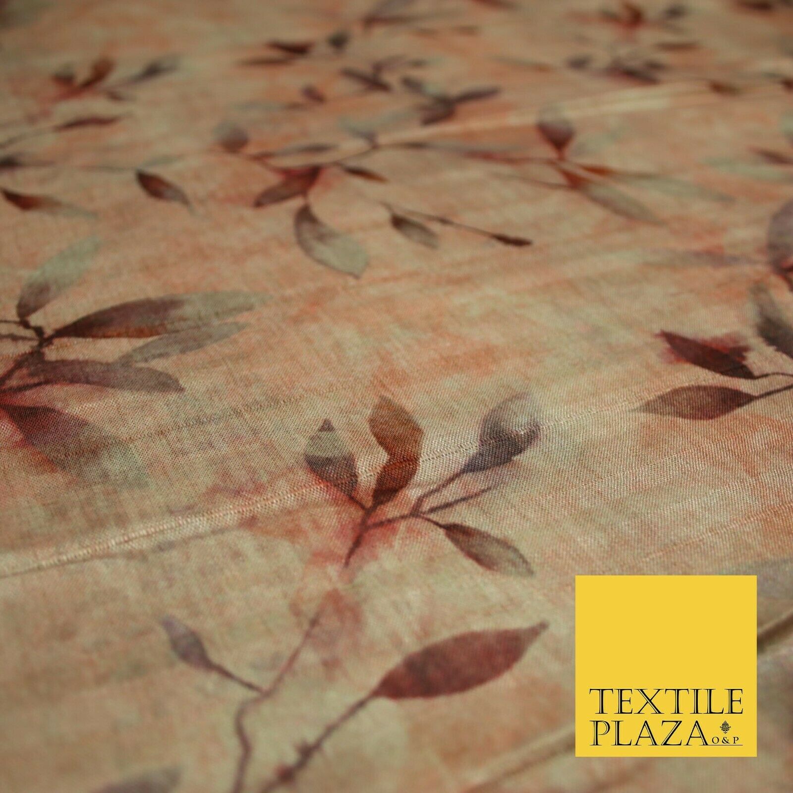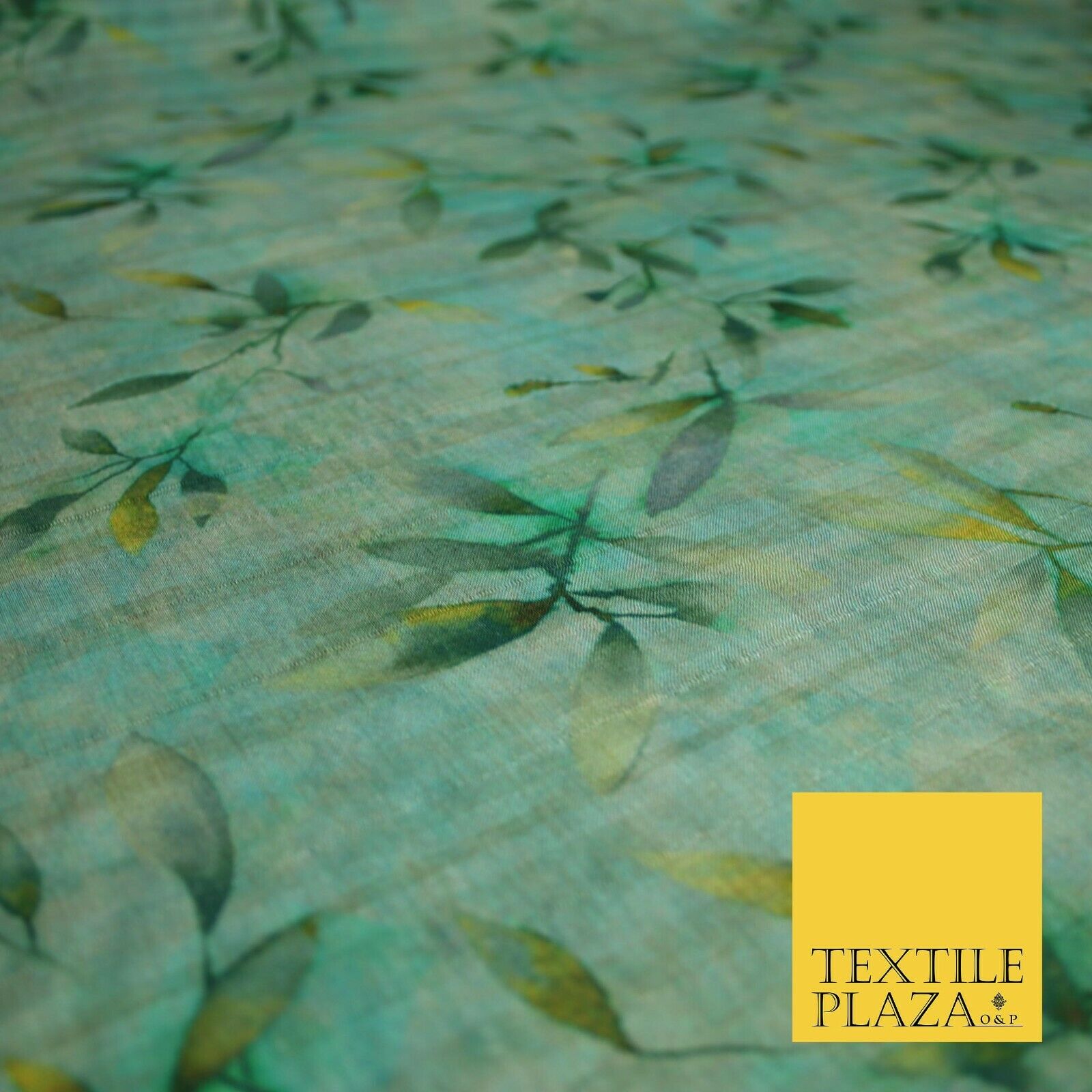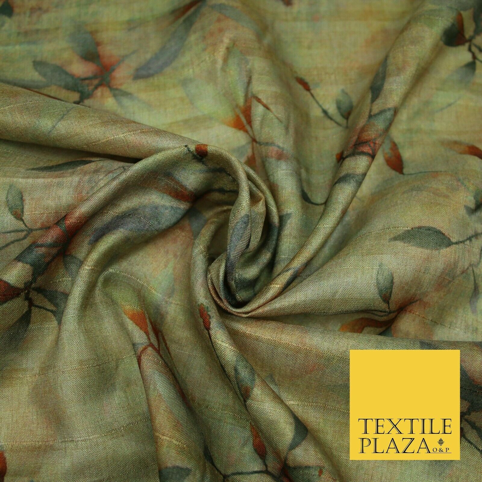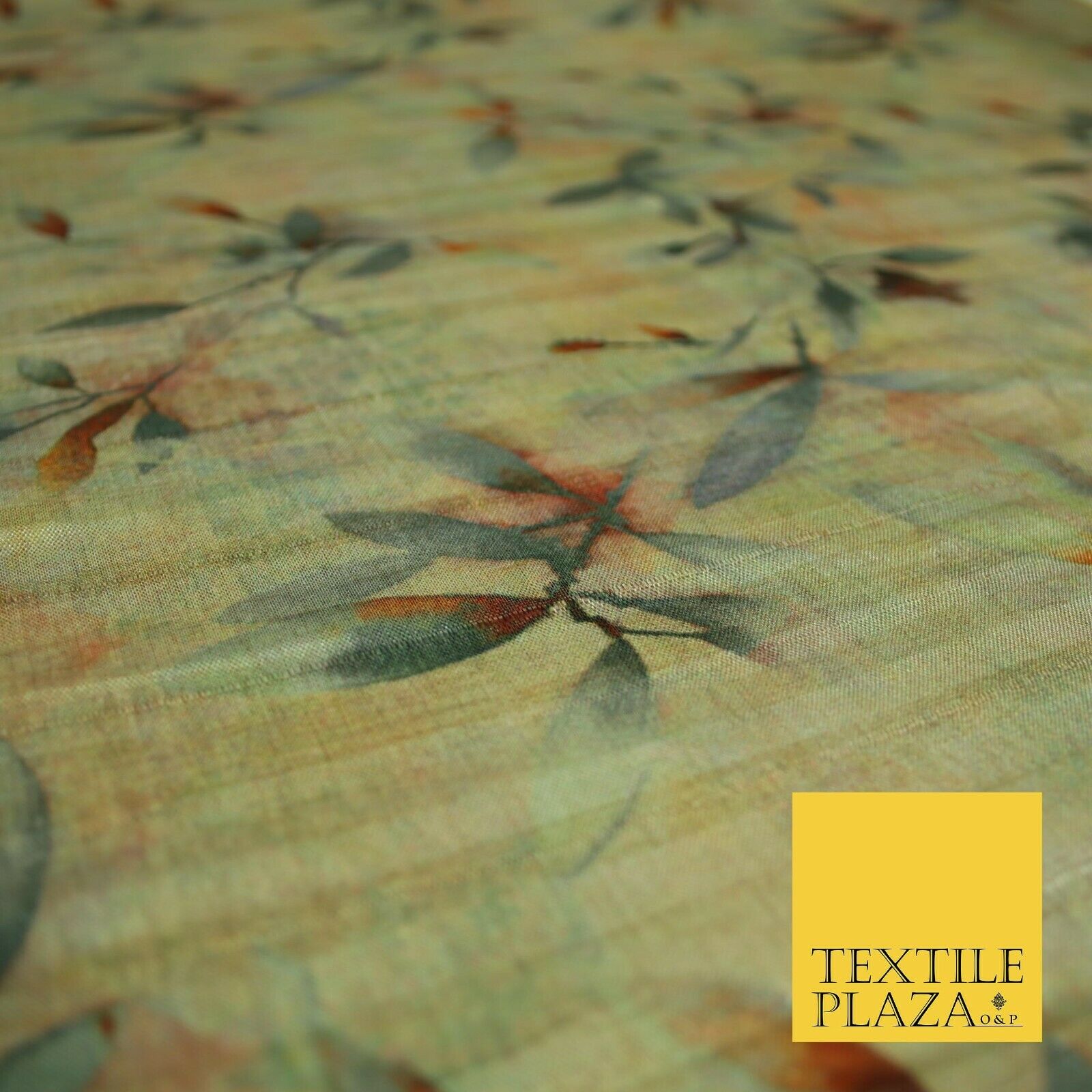 Cloudy Artsy Leaves Digital Printed Faux Dupion Raw Silk Fabric Textured Line