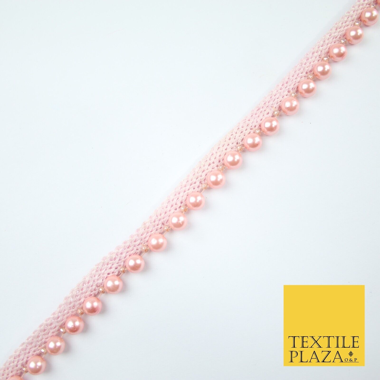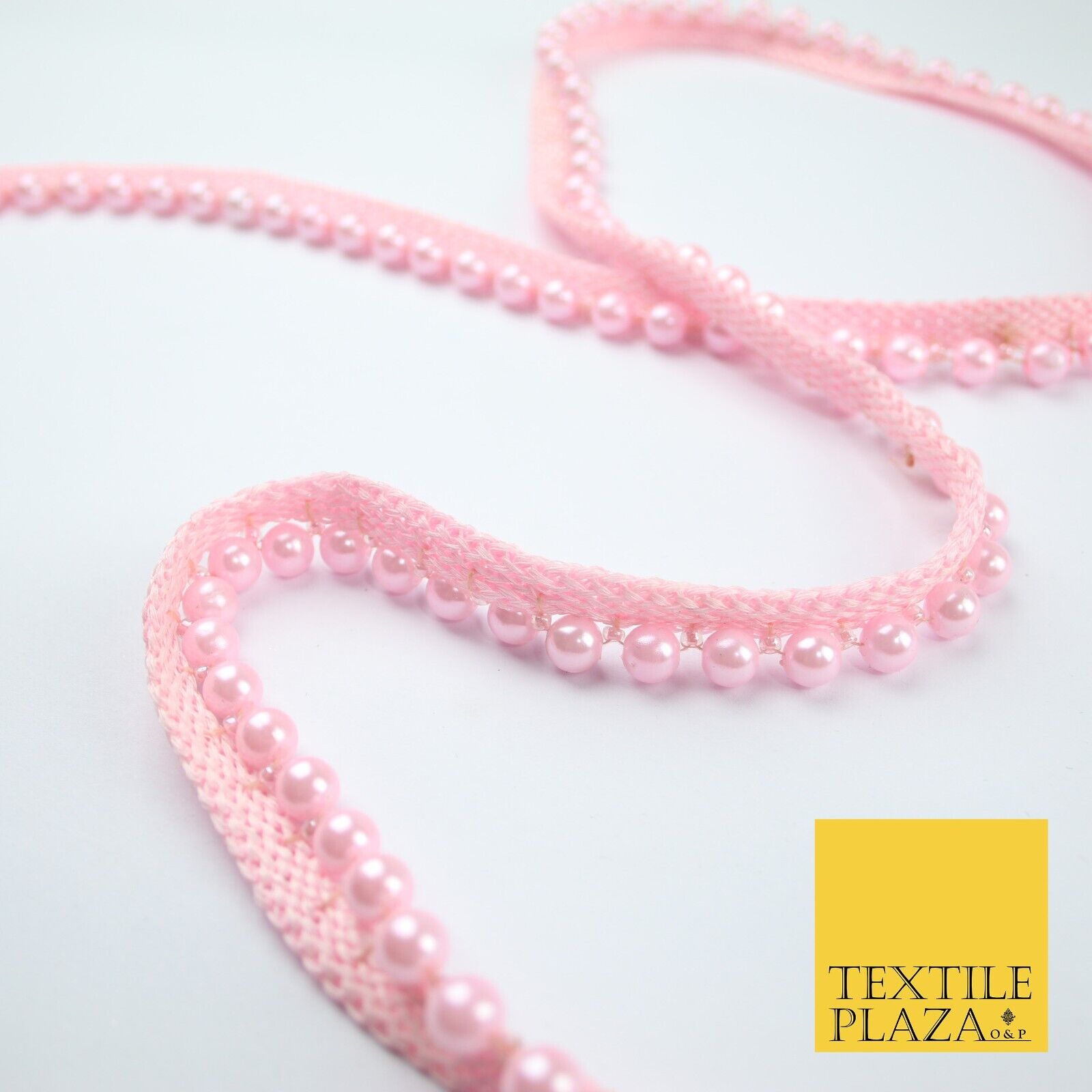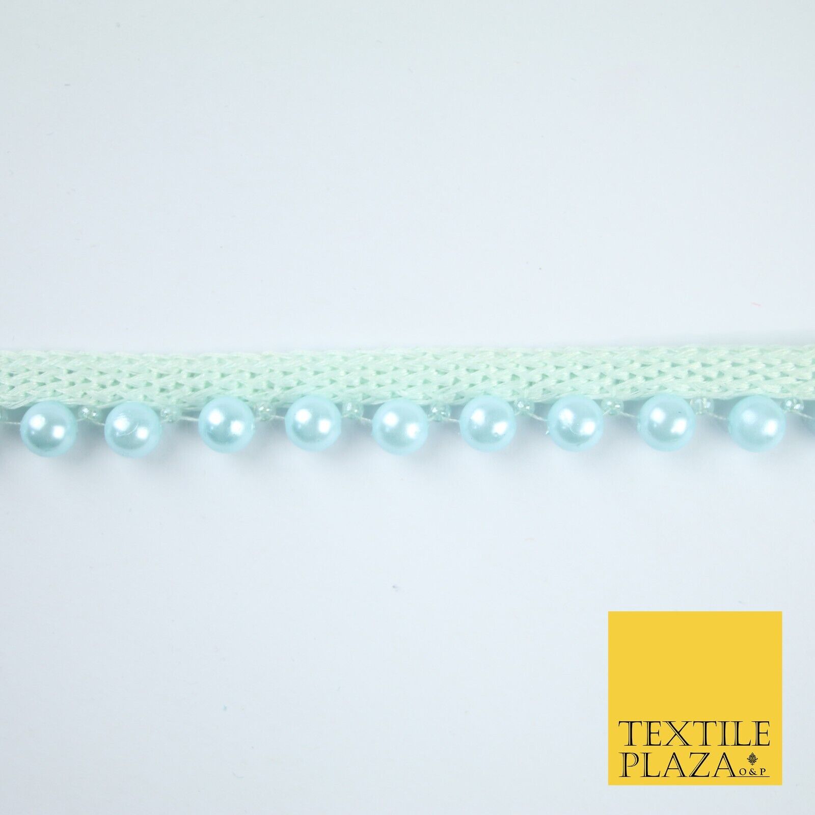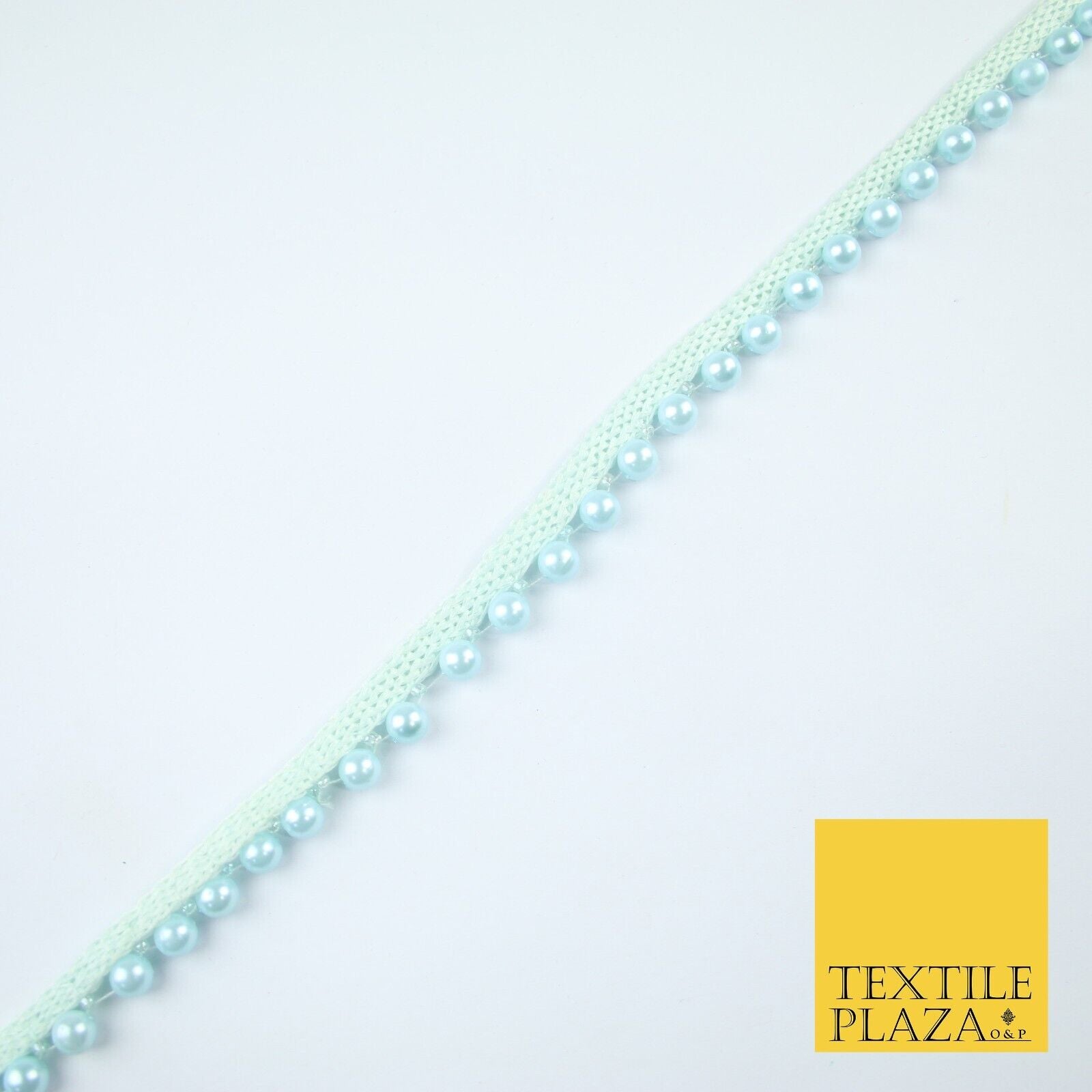 Coloured 7mm Pearl Ball Moti Beaded Ribbon Trim Border Indian Lace - 1.5cm Wide