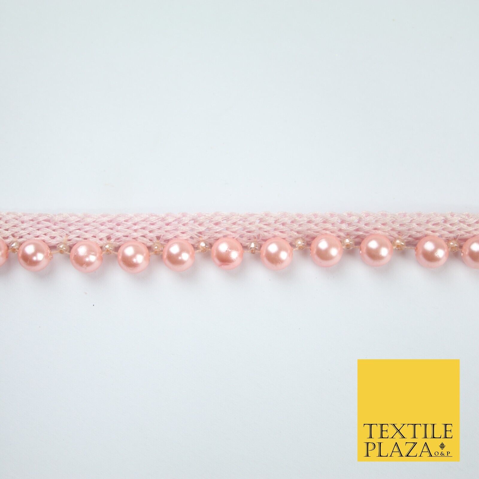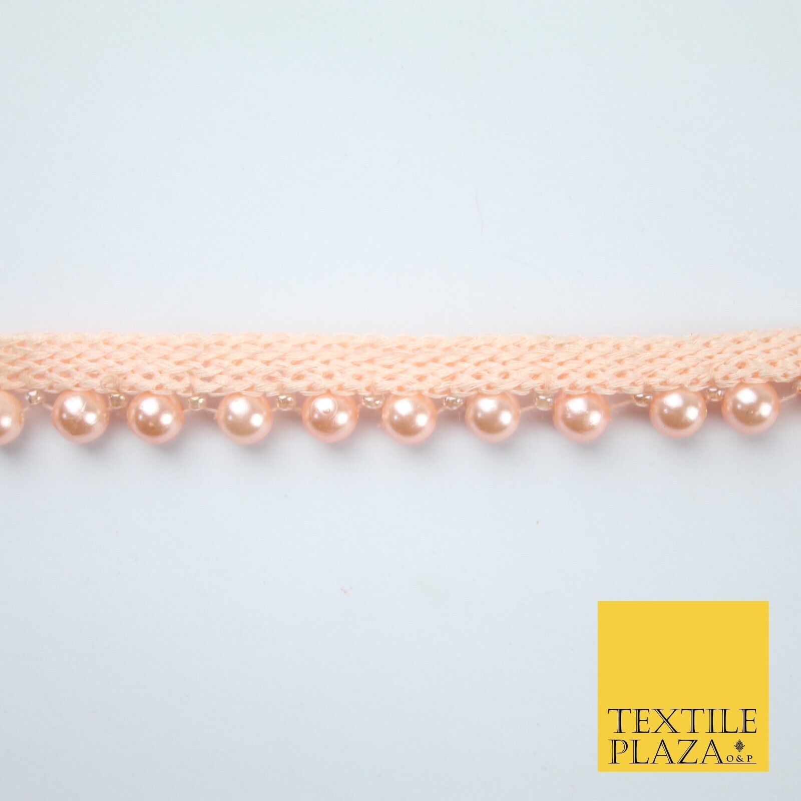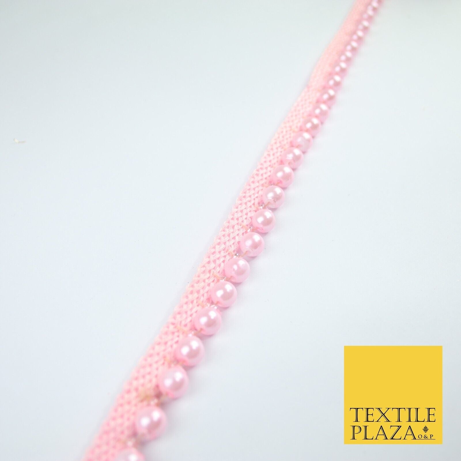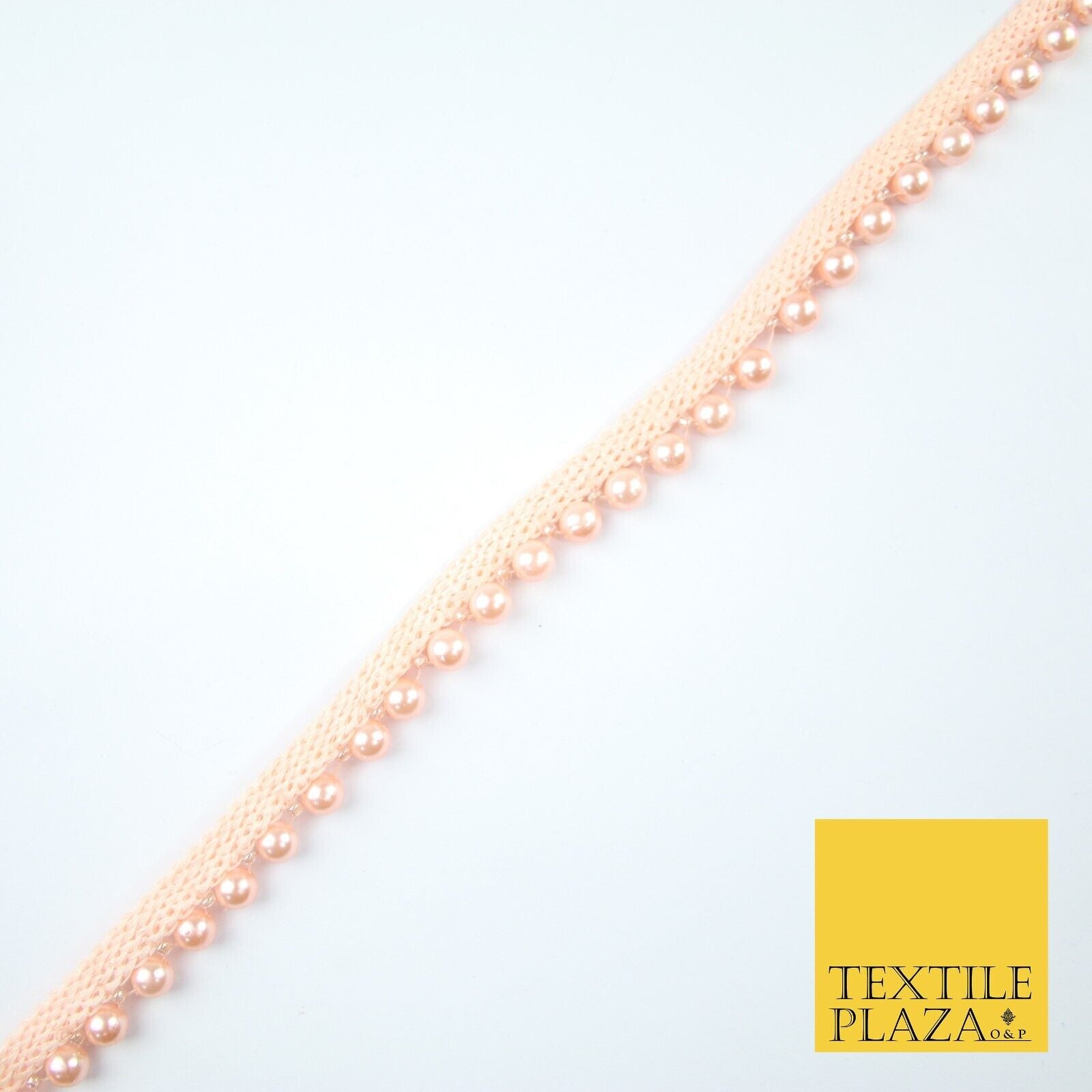 Coloured 7mm Pearl Ball Moti Beaded Ribbon Trim Border Indian Lace - 1.5cm Wide