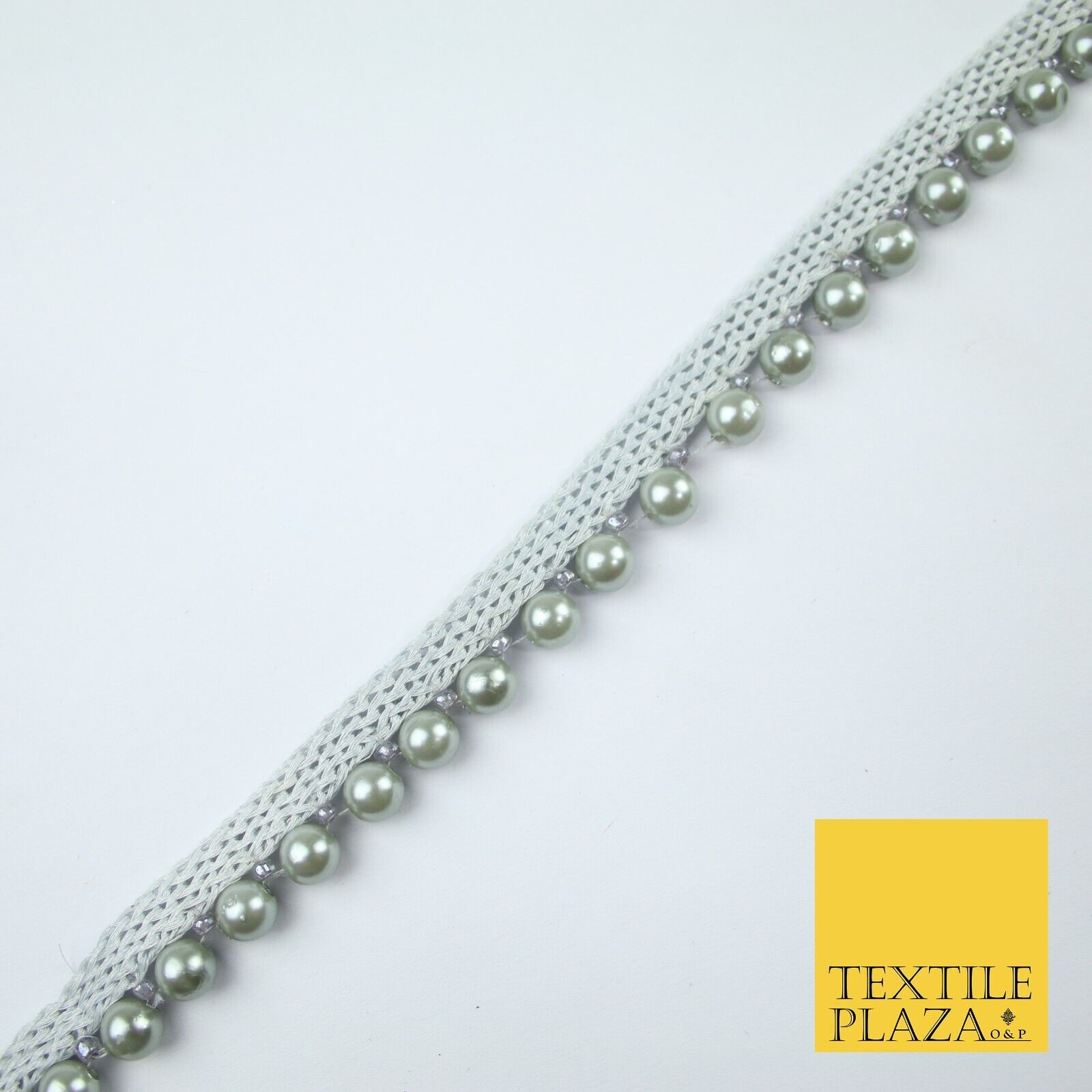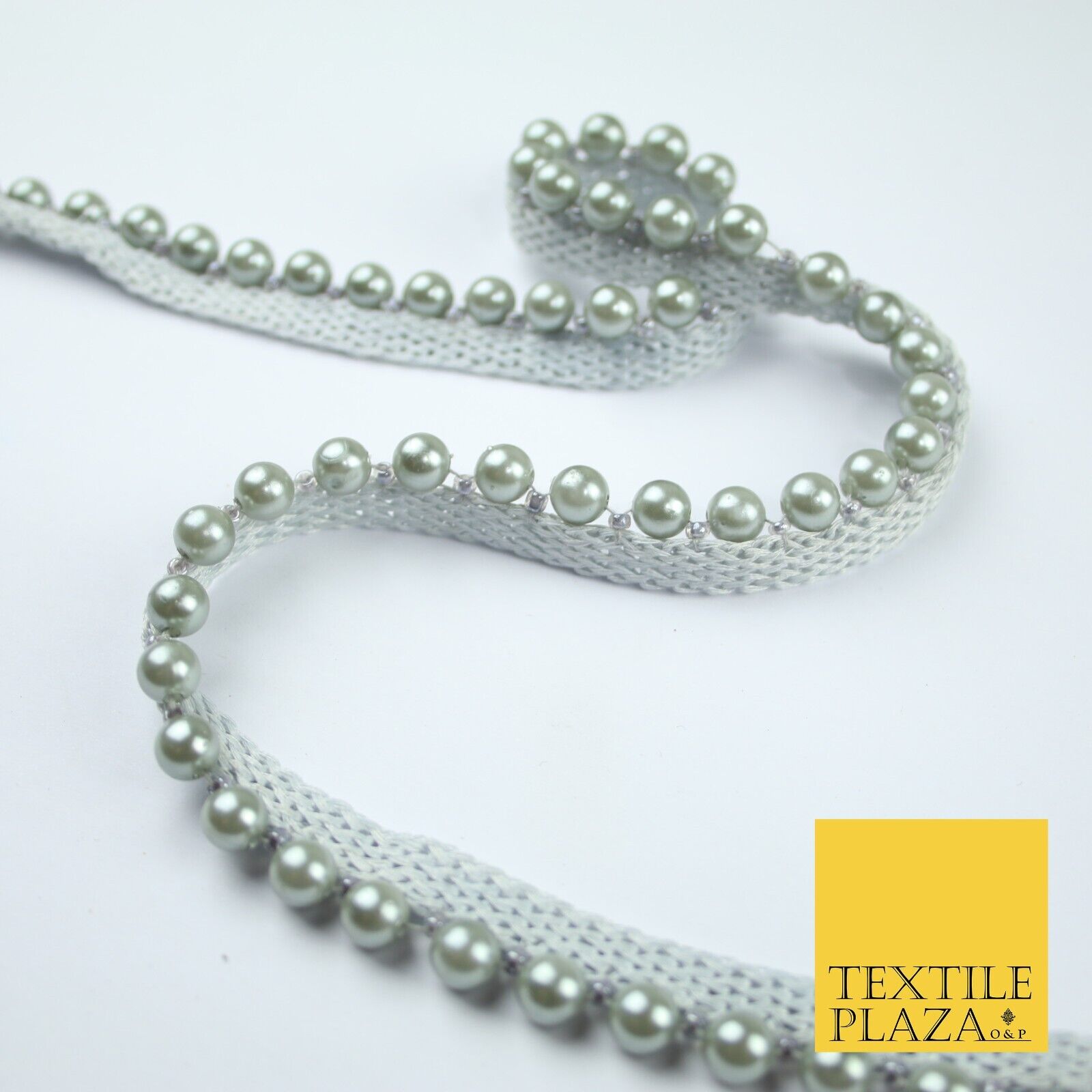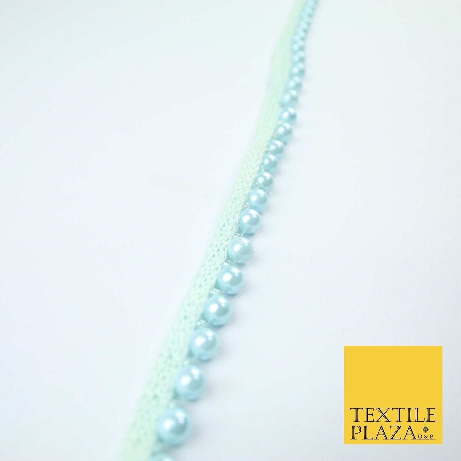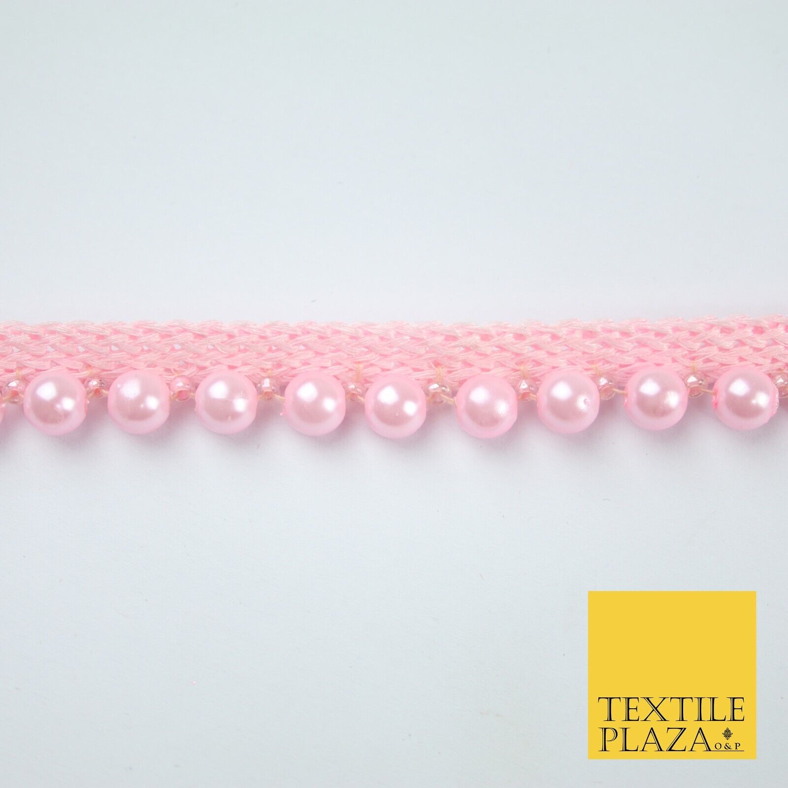 Coloured 7mm Pearl Ball Moti Beaded Ribbon Trim Border Indian Lace - 1.5cm Wide