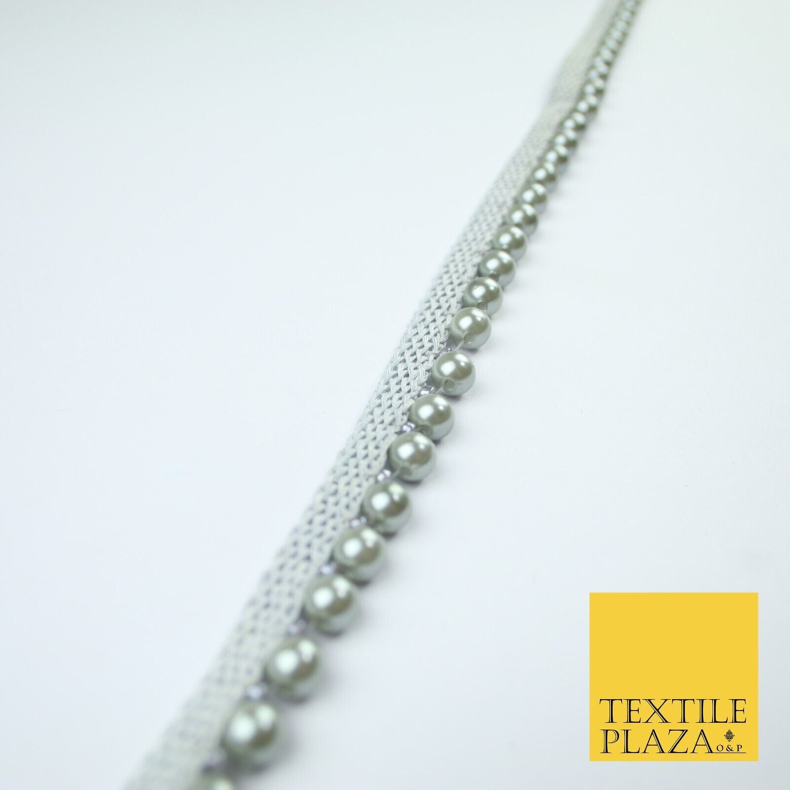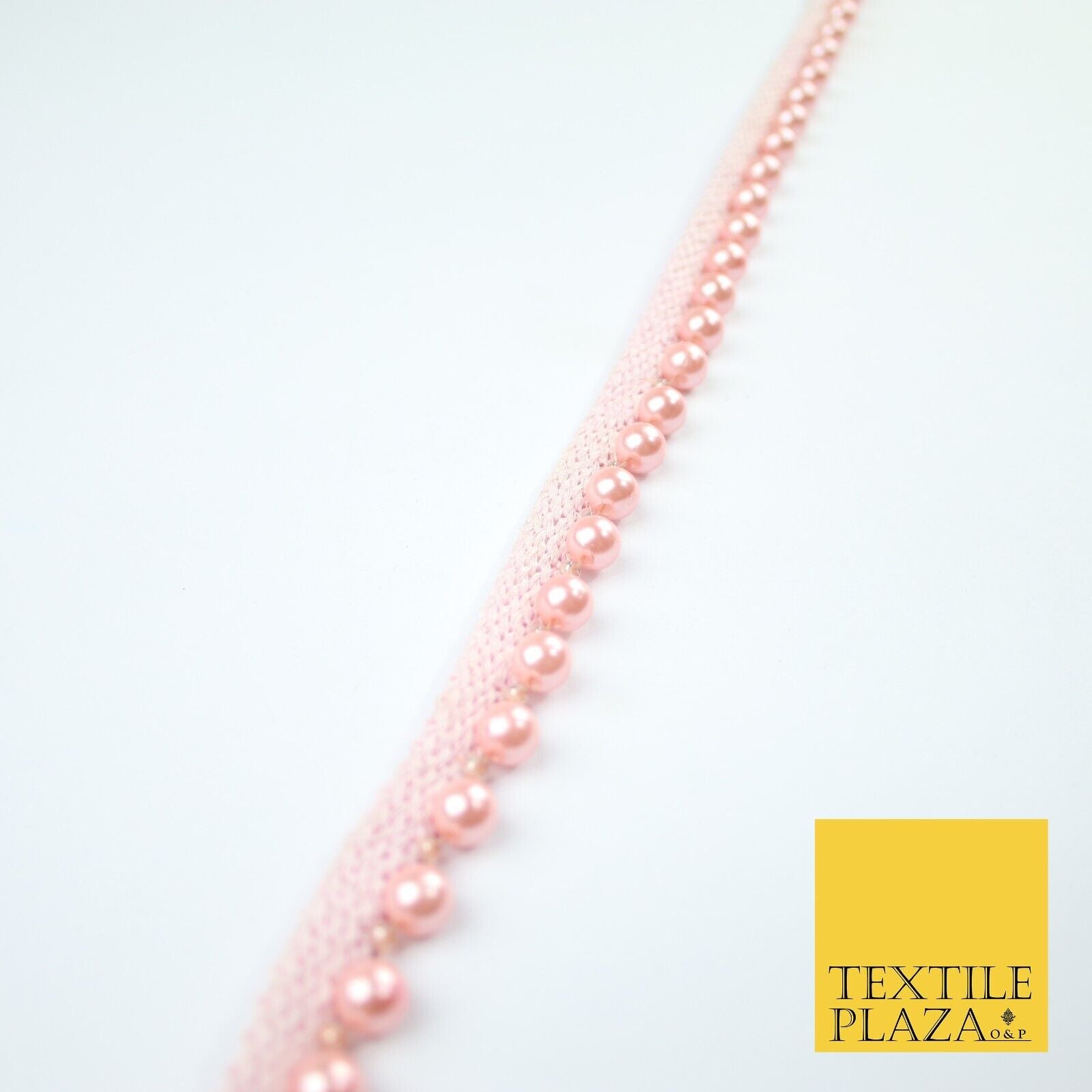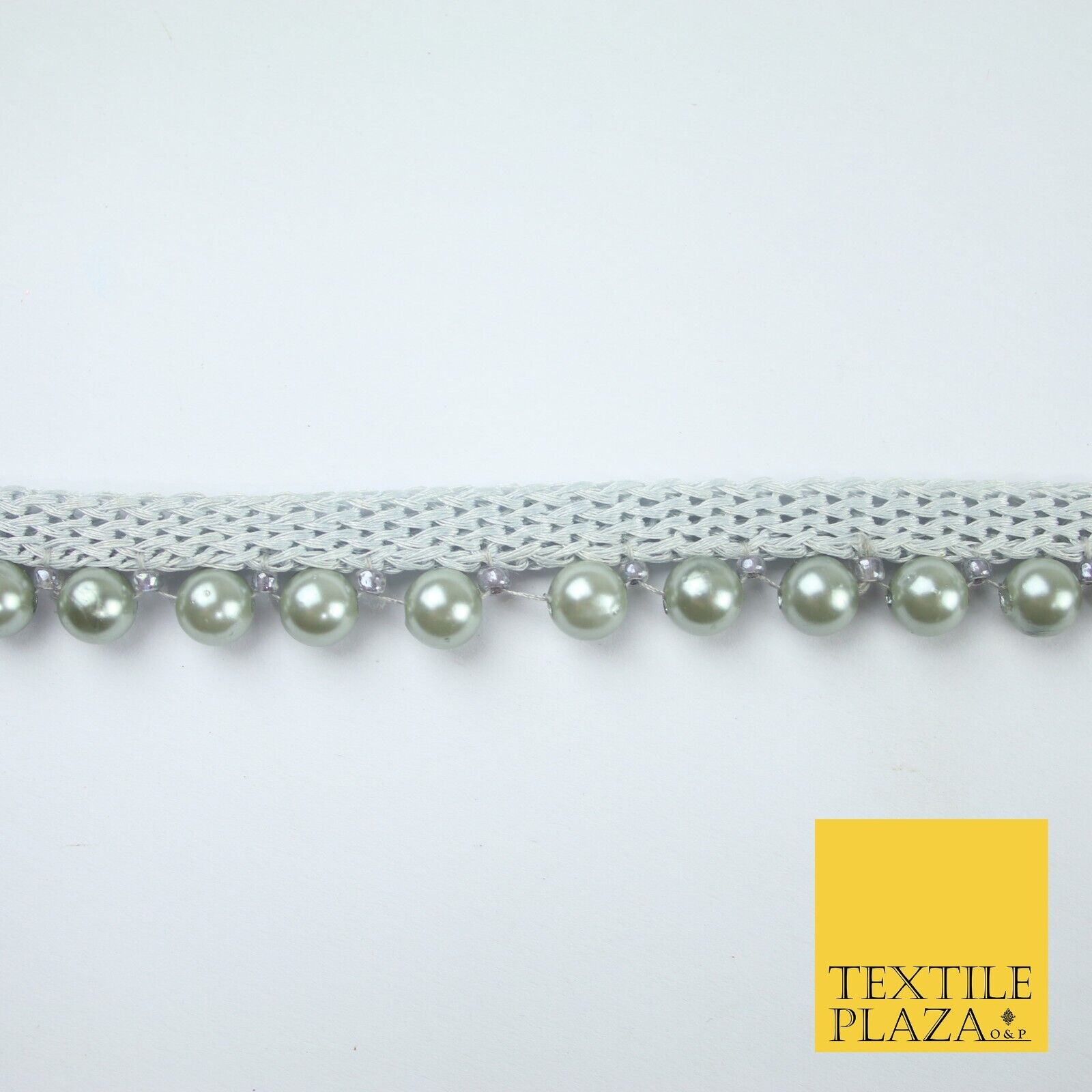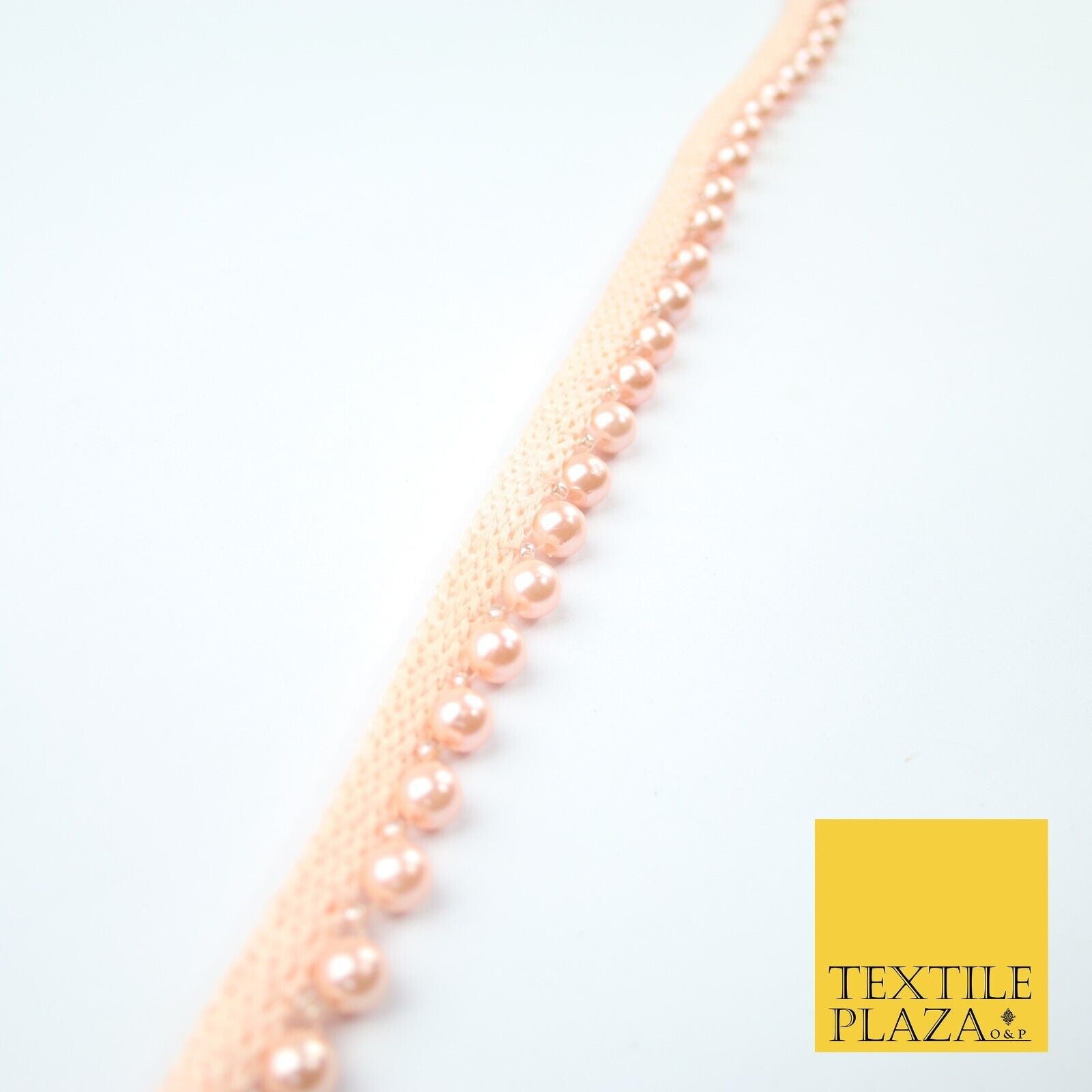 Coloured 7mm Pearl Ball Moti Beaded Ribbon Trim Border Indian Lace - 1.5cm Wide