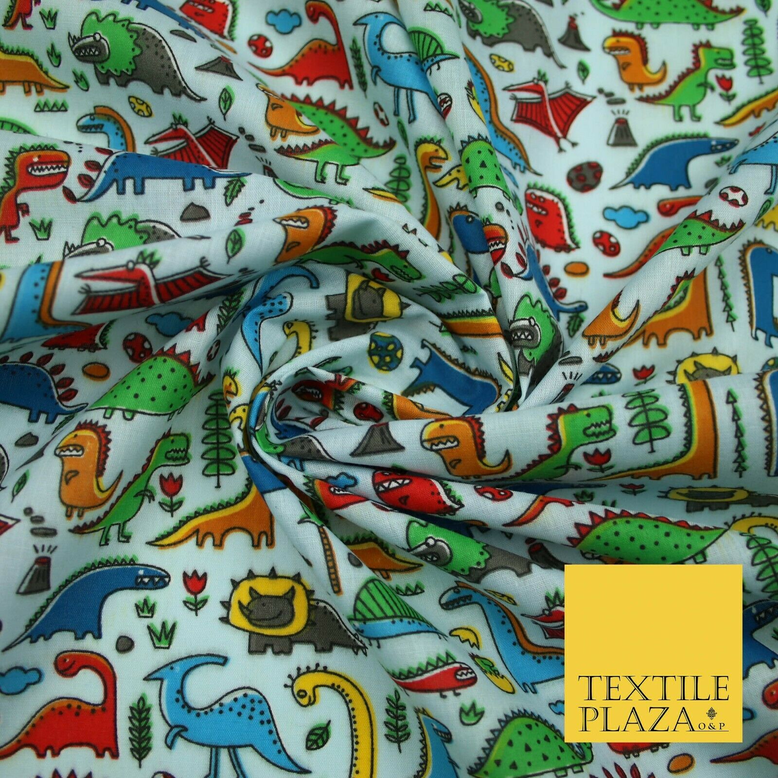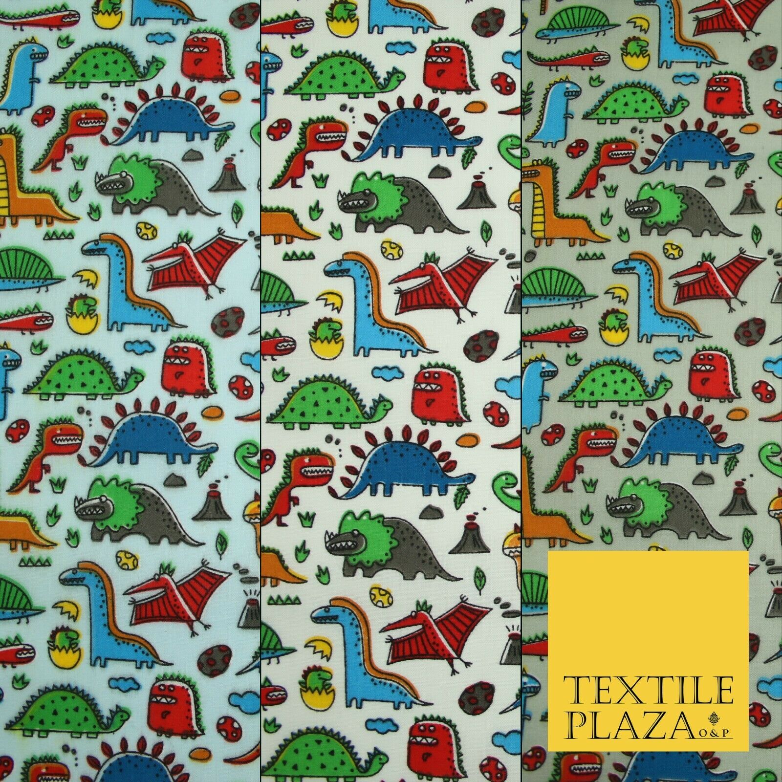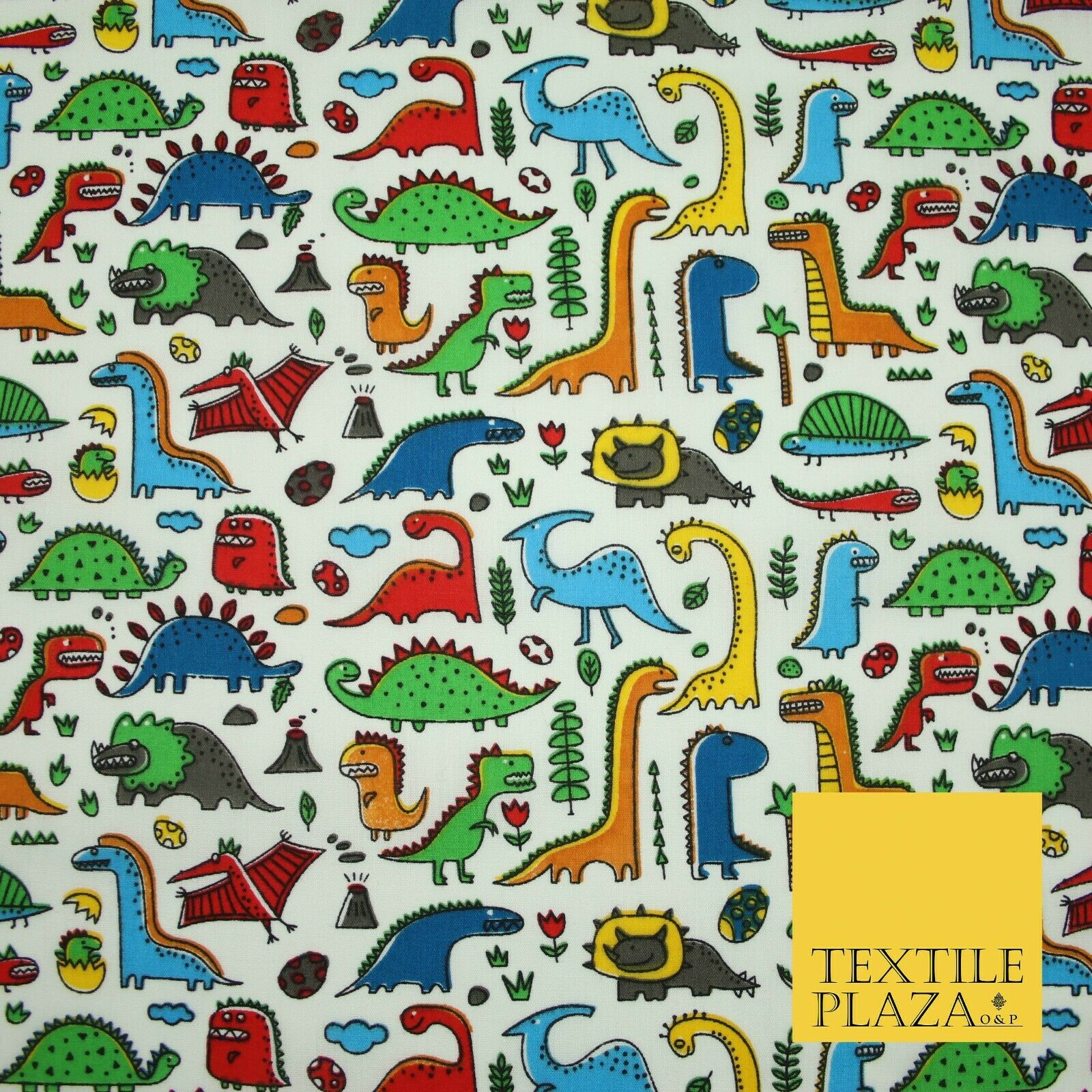 Colourful Cartoon Dinosaurs Printed Polycotton Dress Craft Fabric 44" 3 COLOURS
