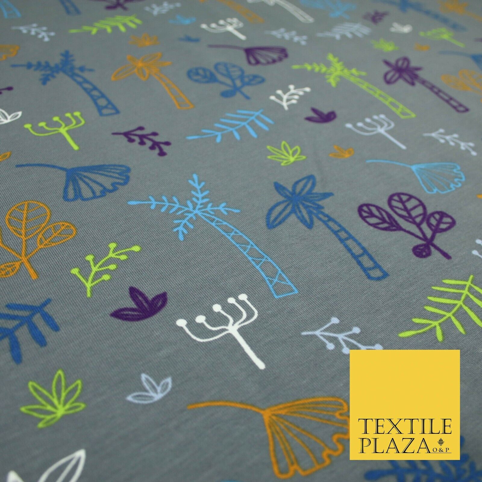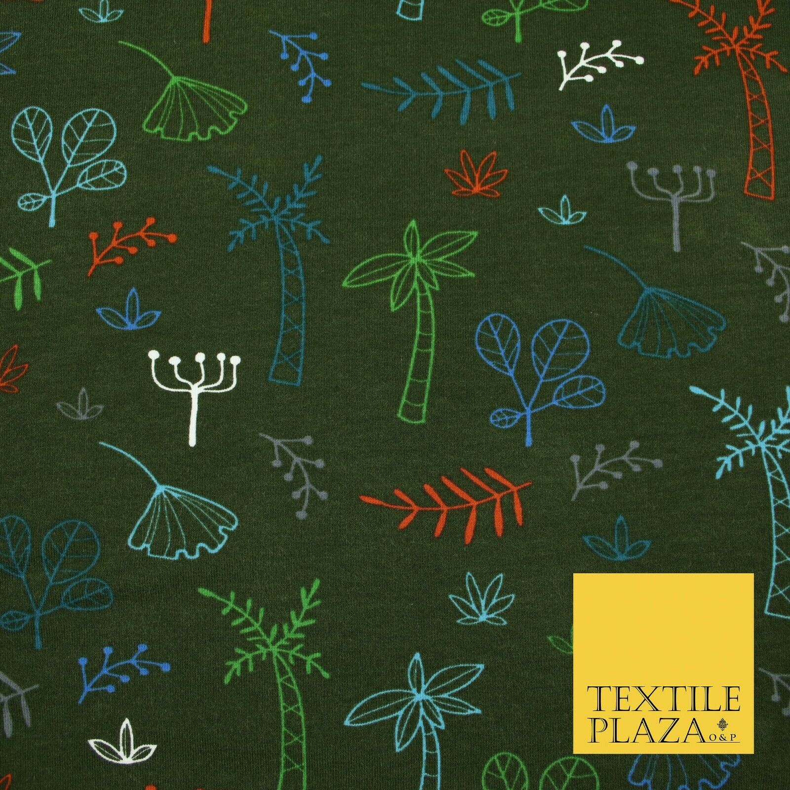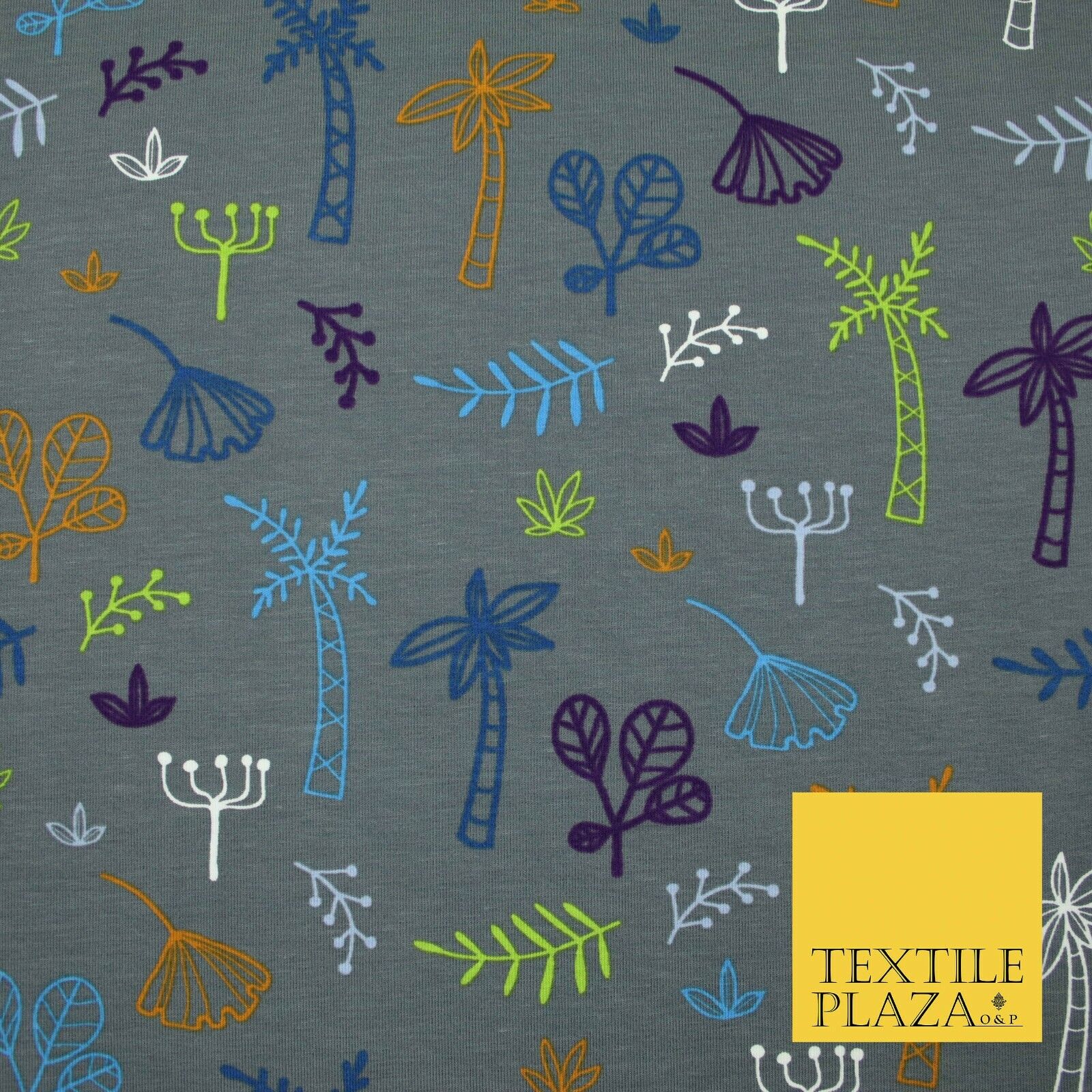 Colourful Palm Tree Forest Leaves Printed Soft Organic Cotton Jersey Fabric 59"