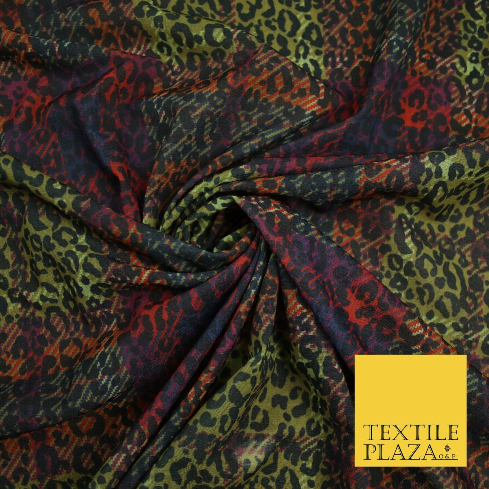 Colourful Plaid Tartan Leopard Animal Stretch Sheer Georgette Dress Fabric 6479