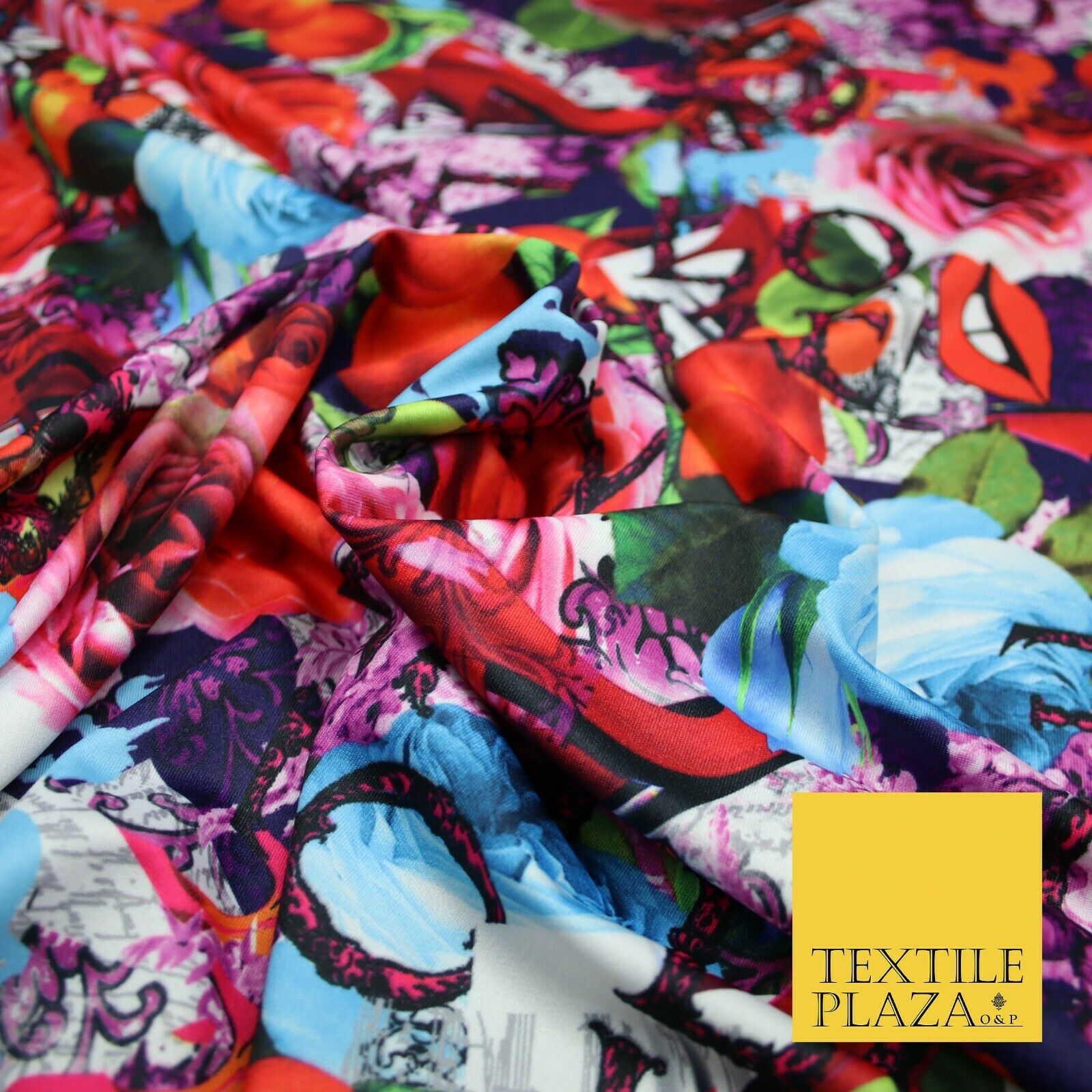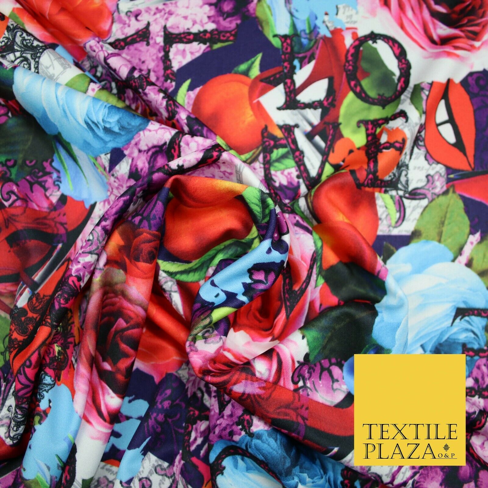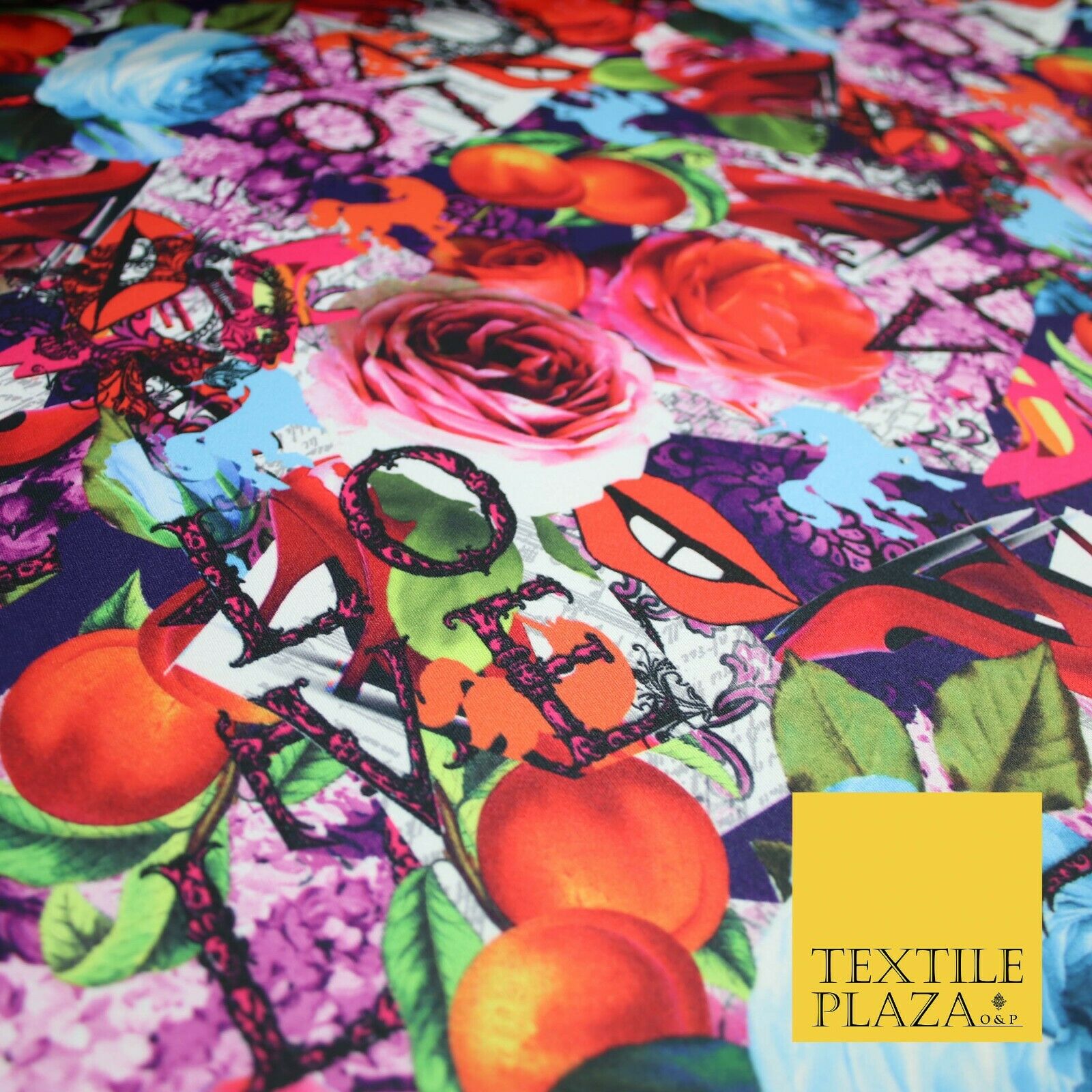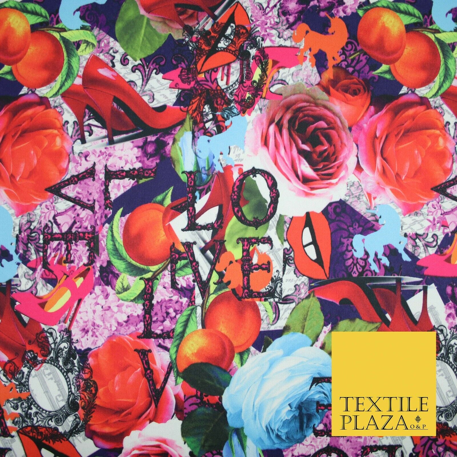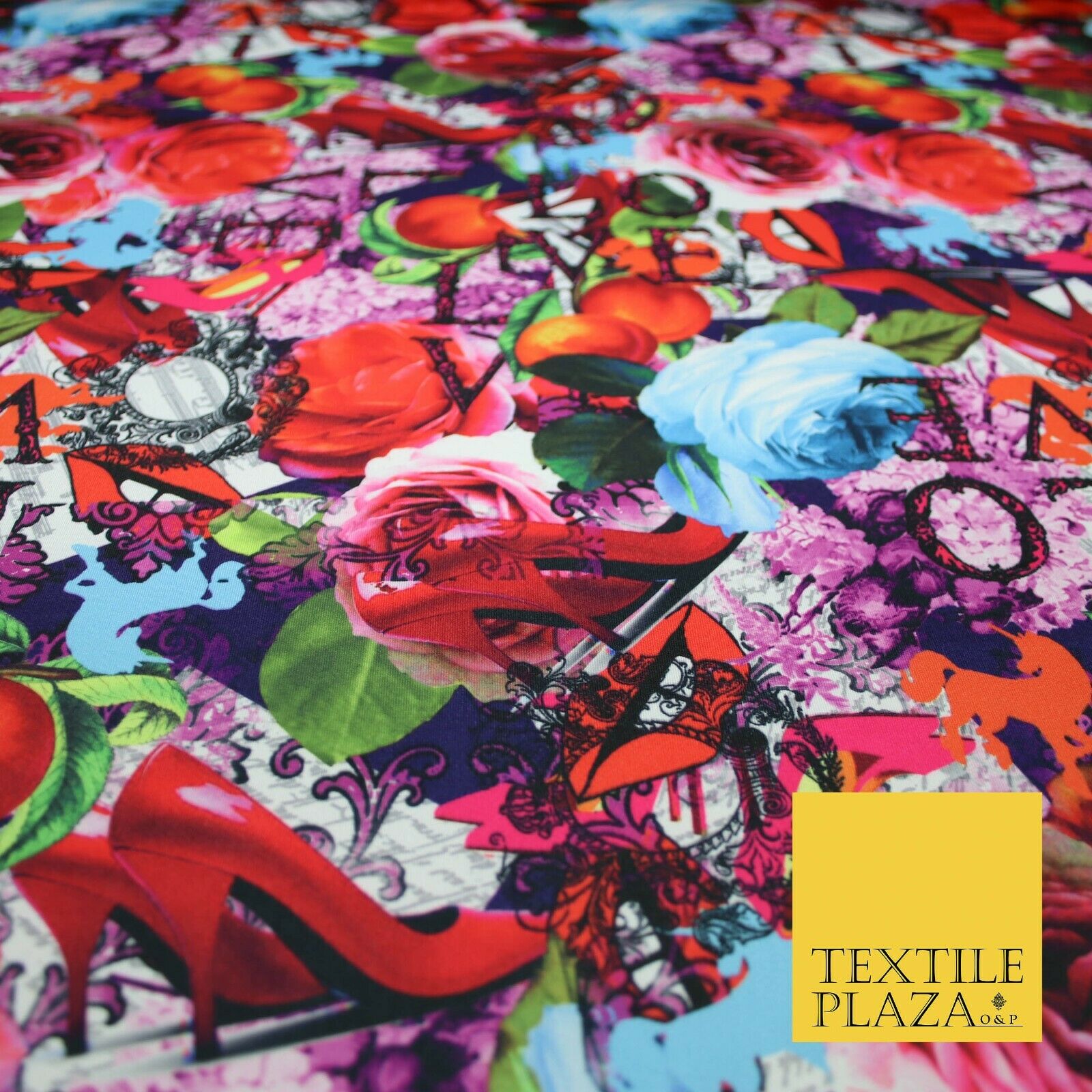 Colourful Wacky Artsy LOVE Girly Lips Heels Floral Smooth Jersey Fabric 56" 5004