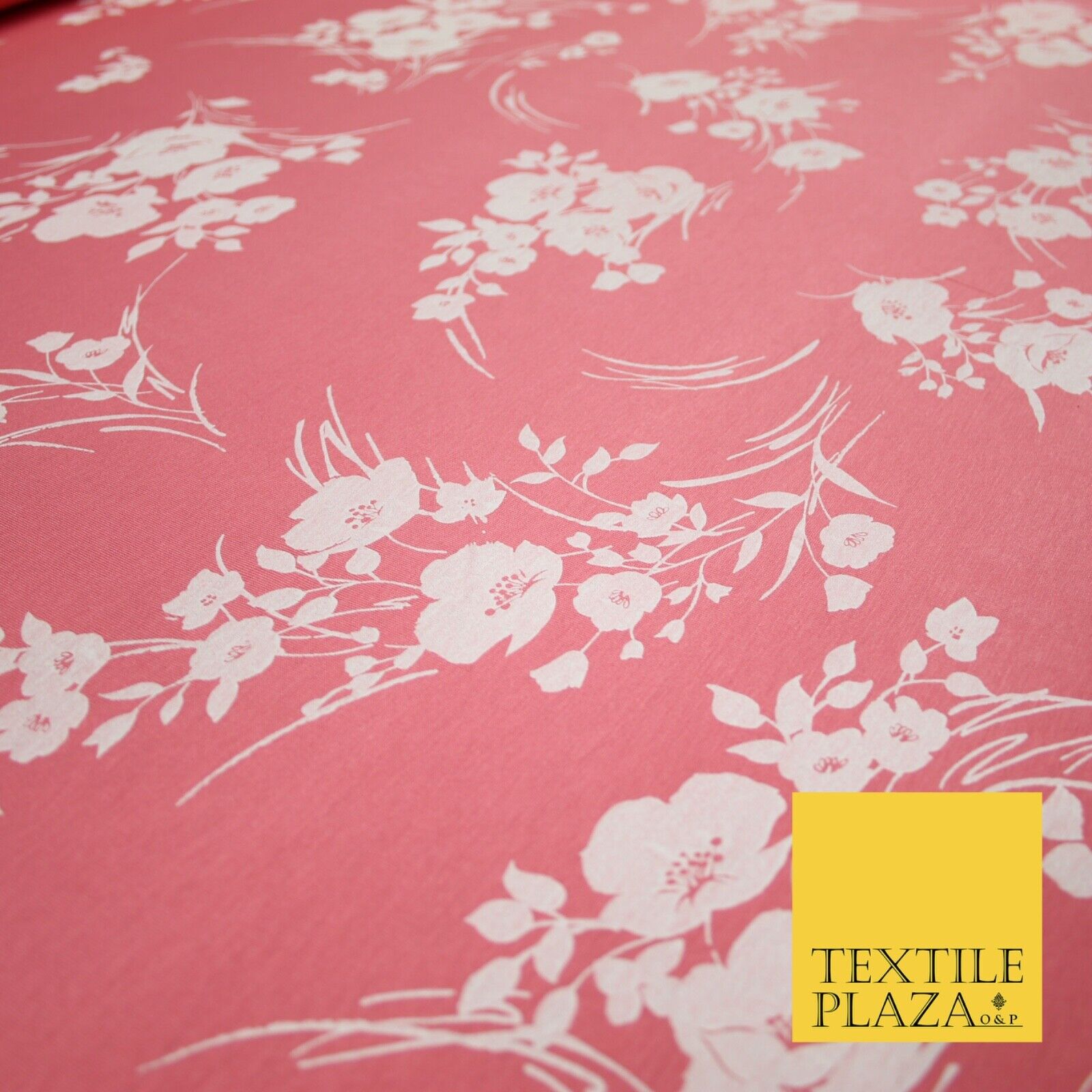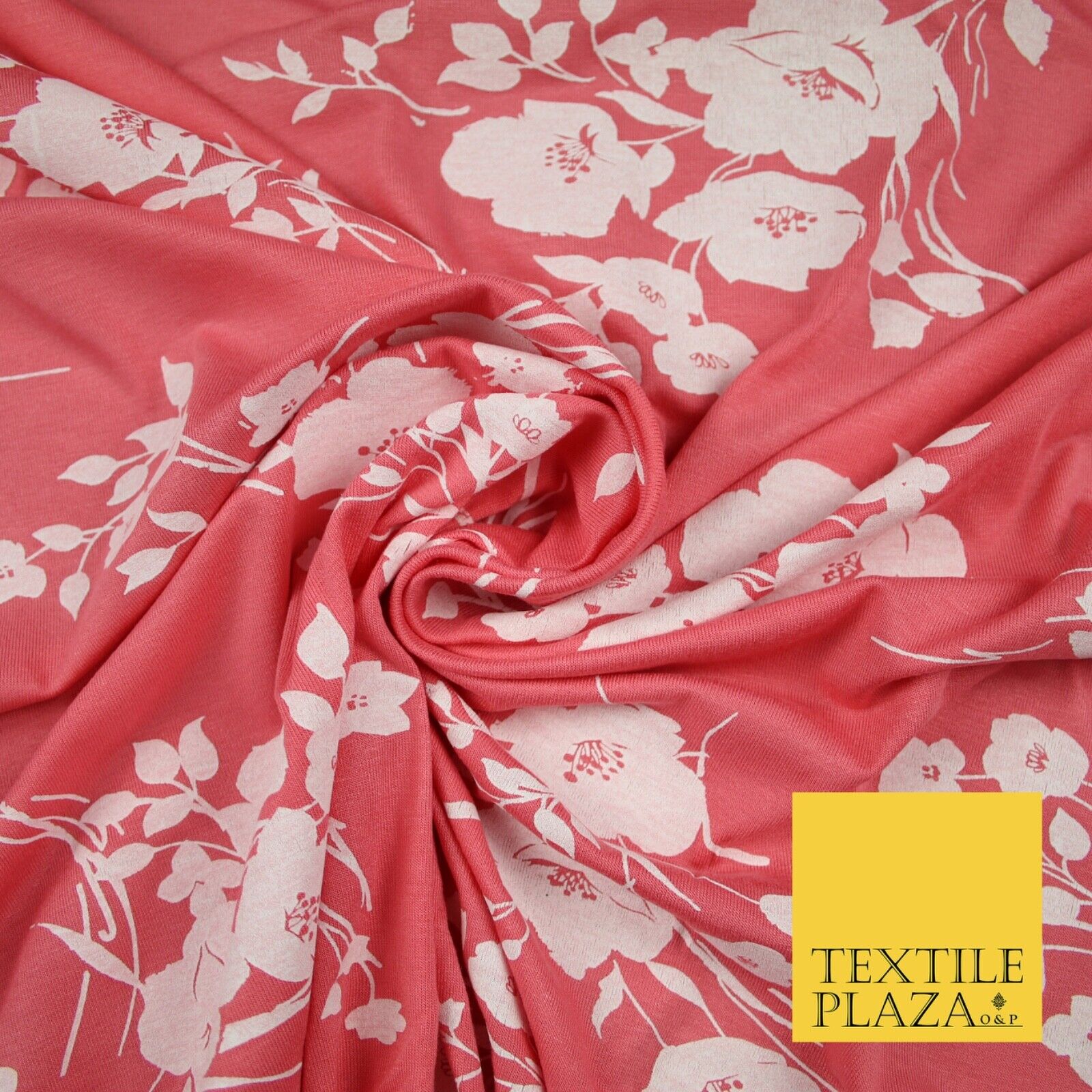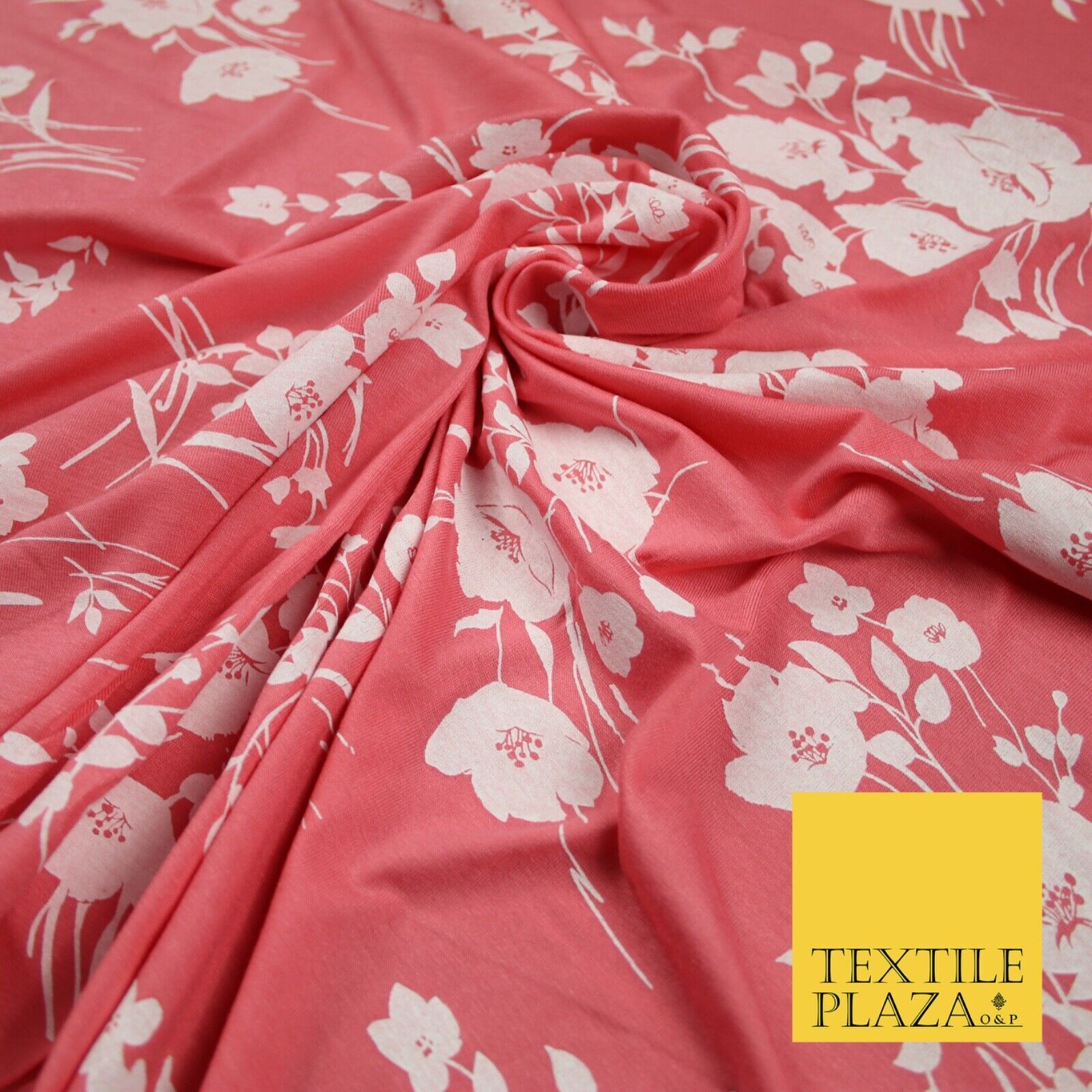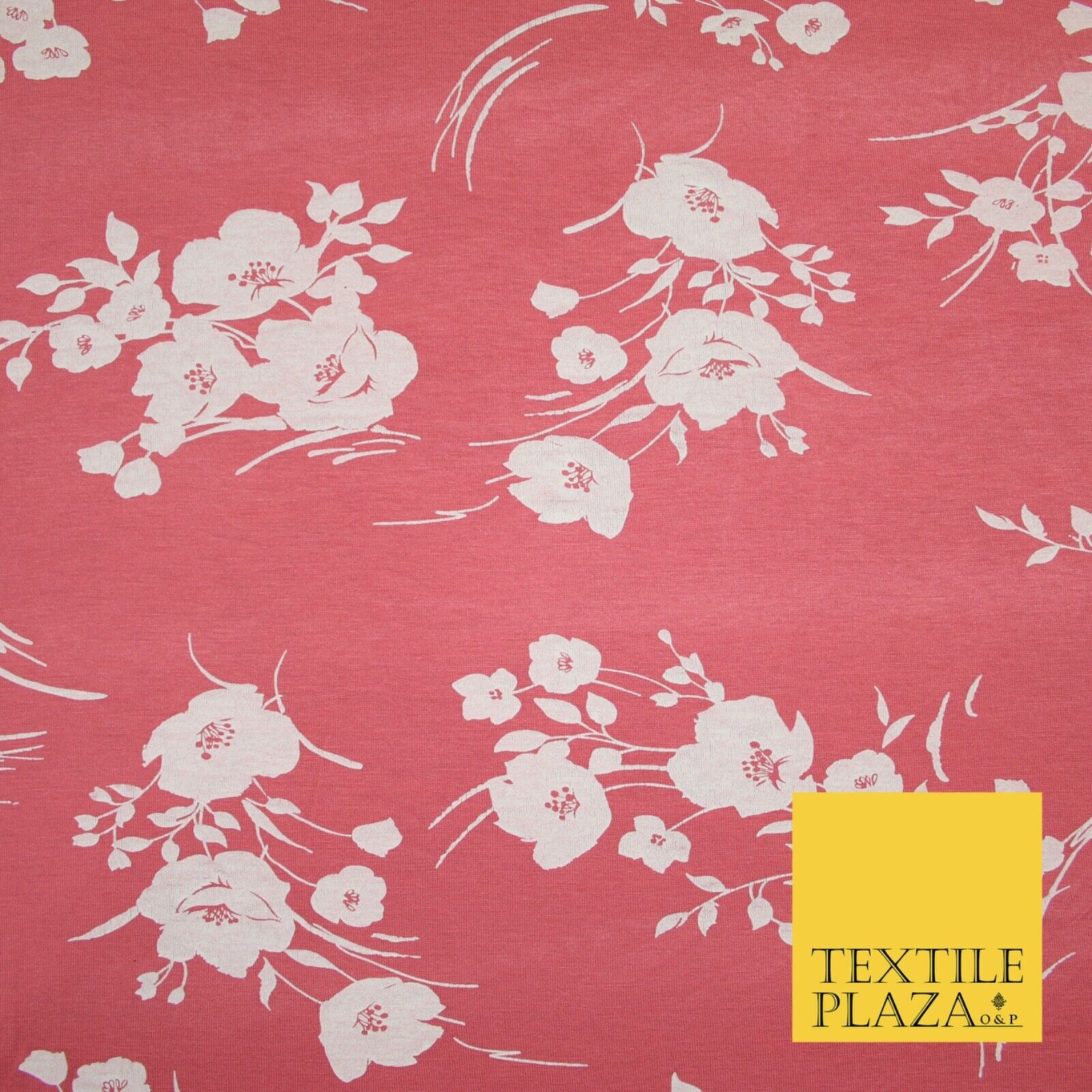 Coral and White Floral Bunches Printed Soft Touch Stretch Jersey Fabric 56" 6739