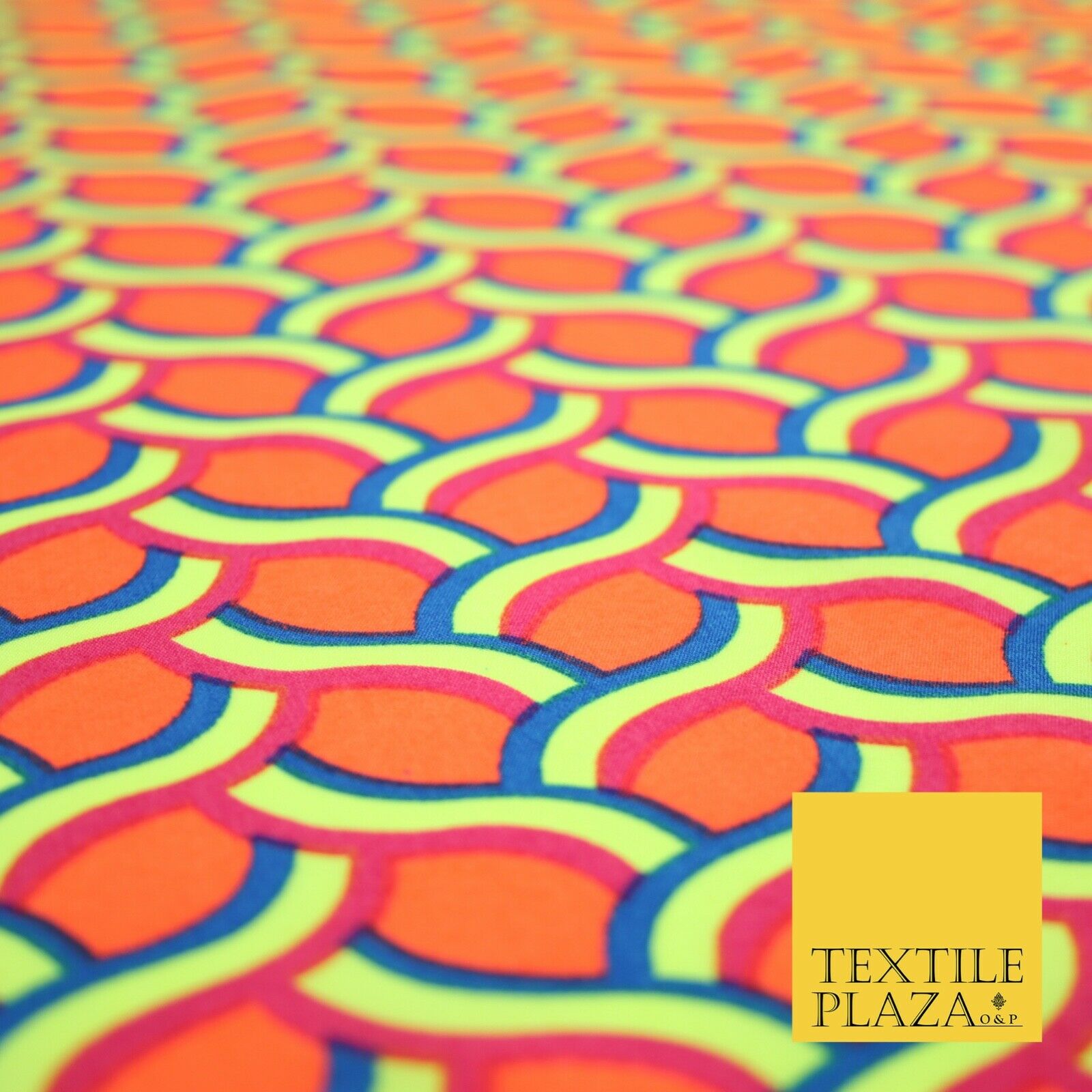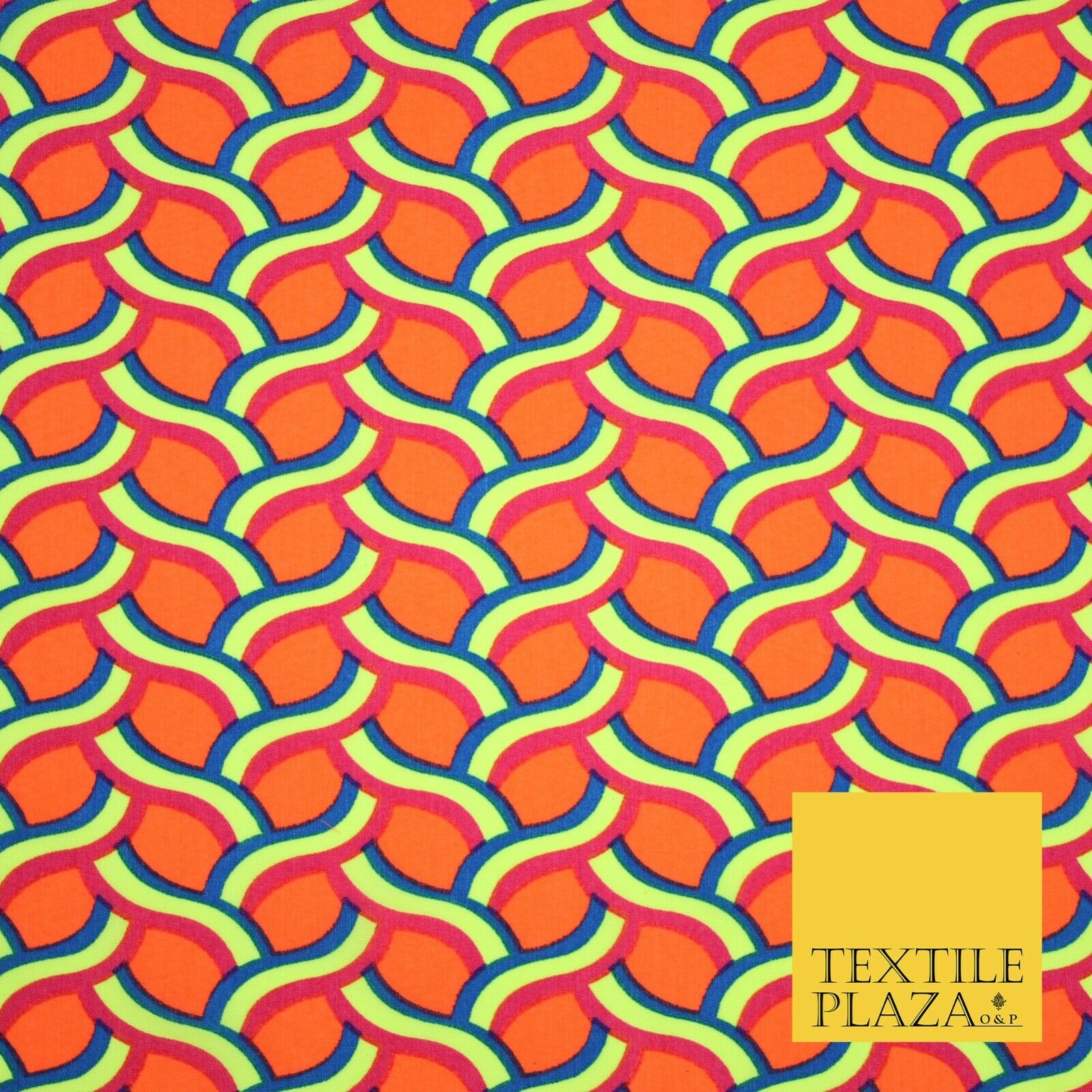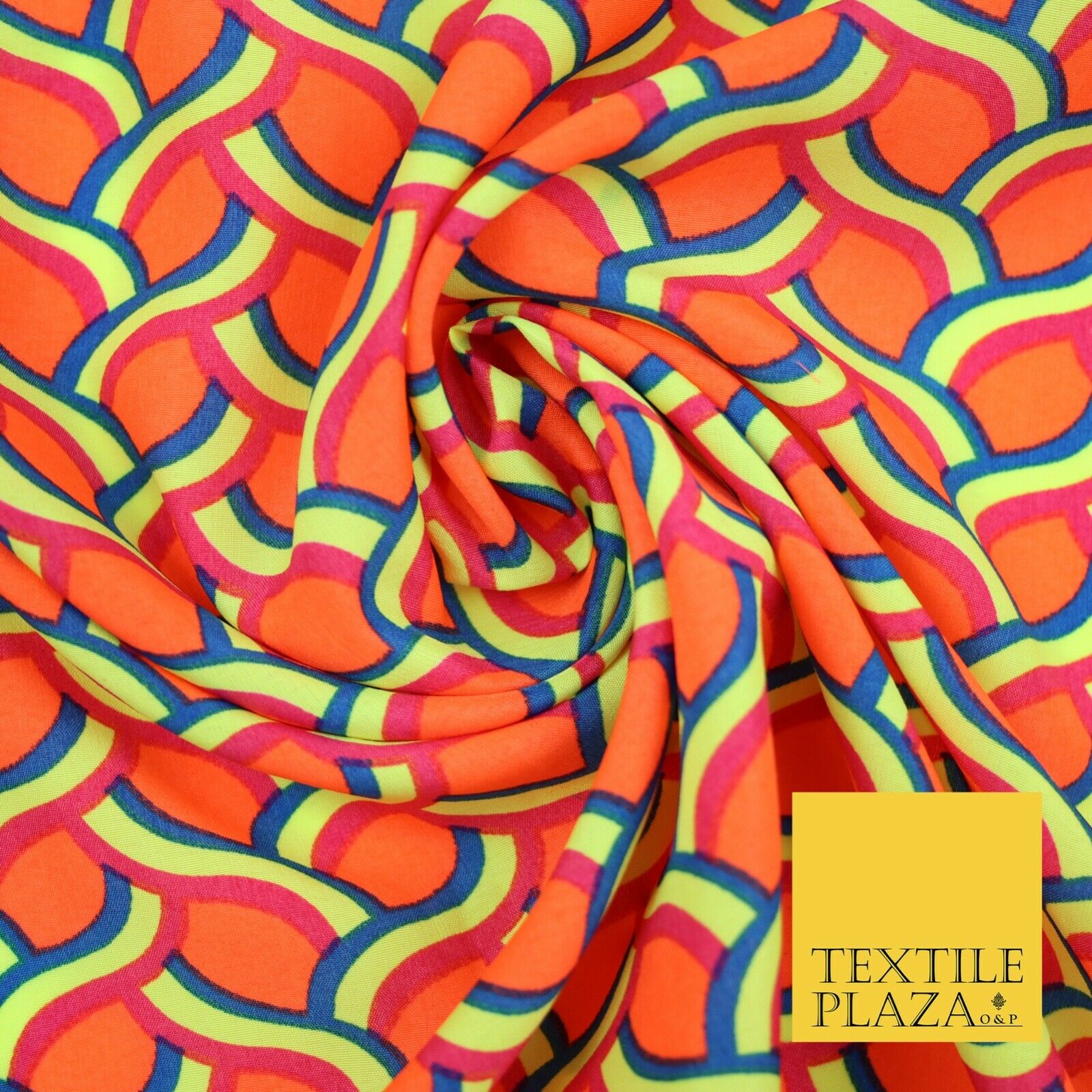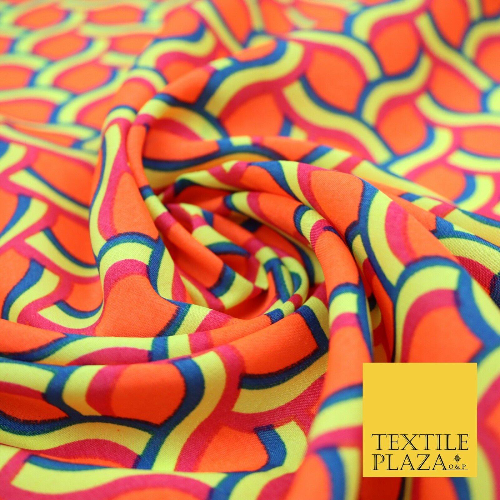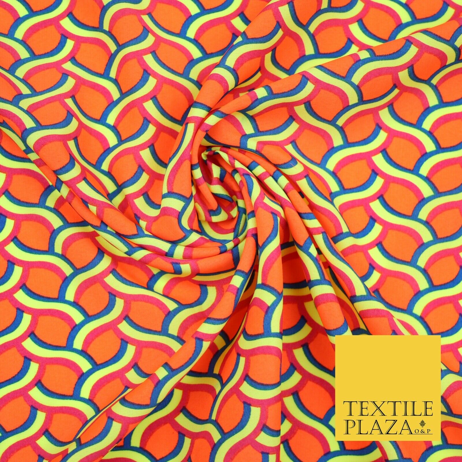 Coral Peach Rainbow Lattice Printed Crepe Polyester Dress Fabric Retro NHS 2729