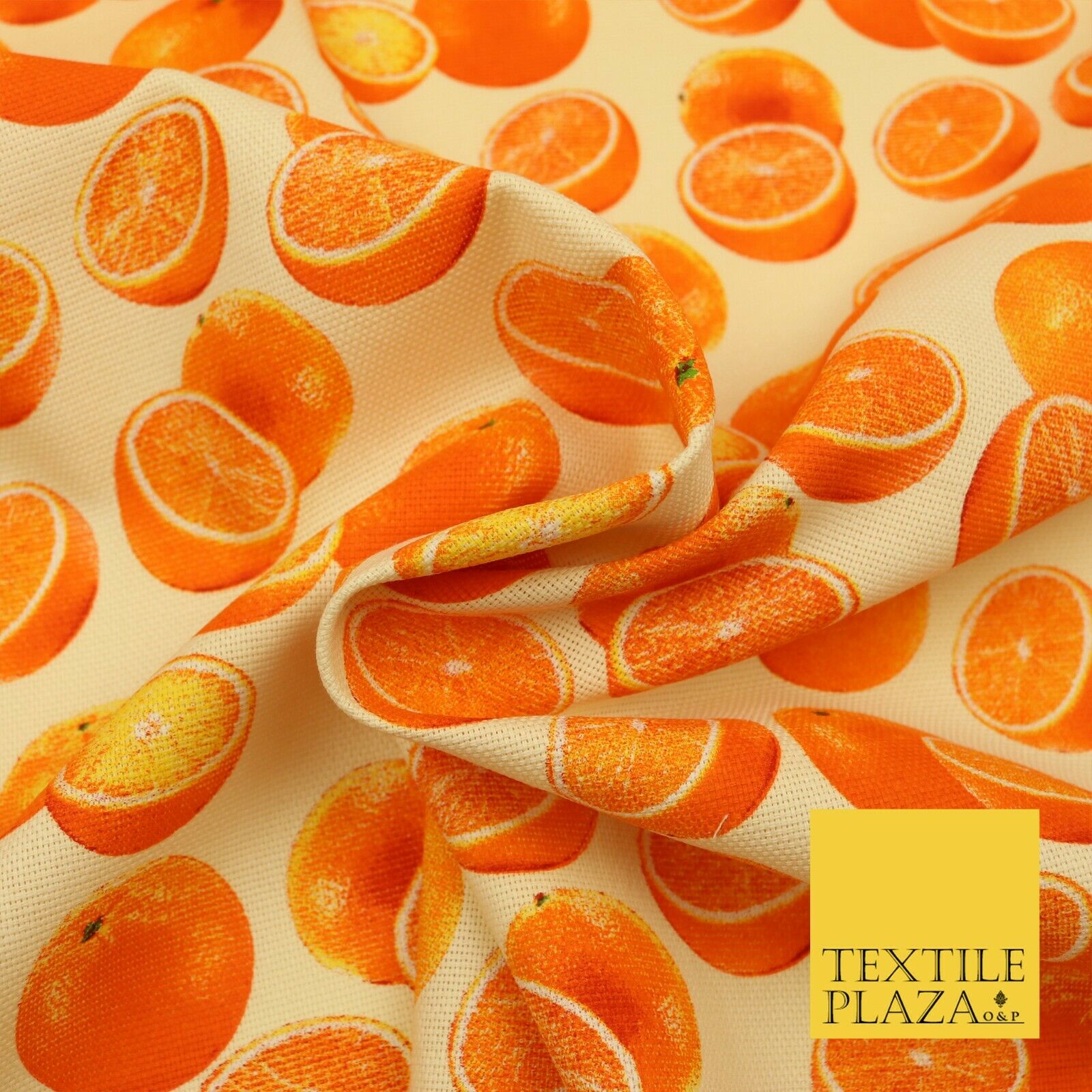 Cream Fruity ORANGES 100% COTTON CANVAS Soft Fabric Craft Dress Bags 1640