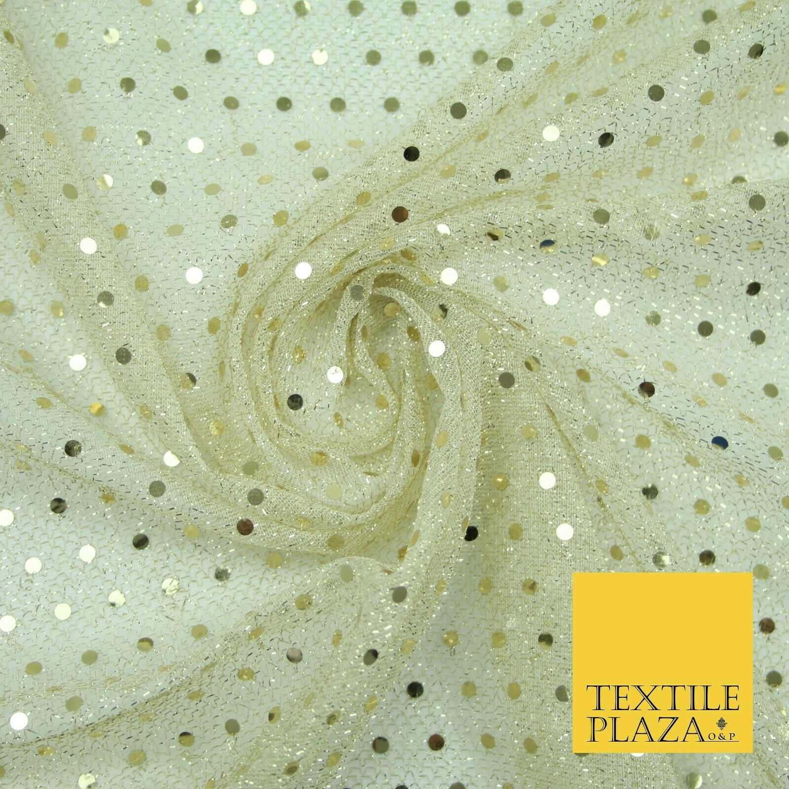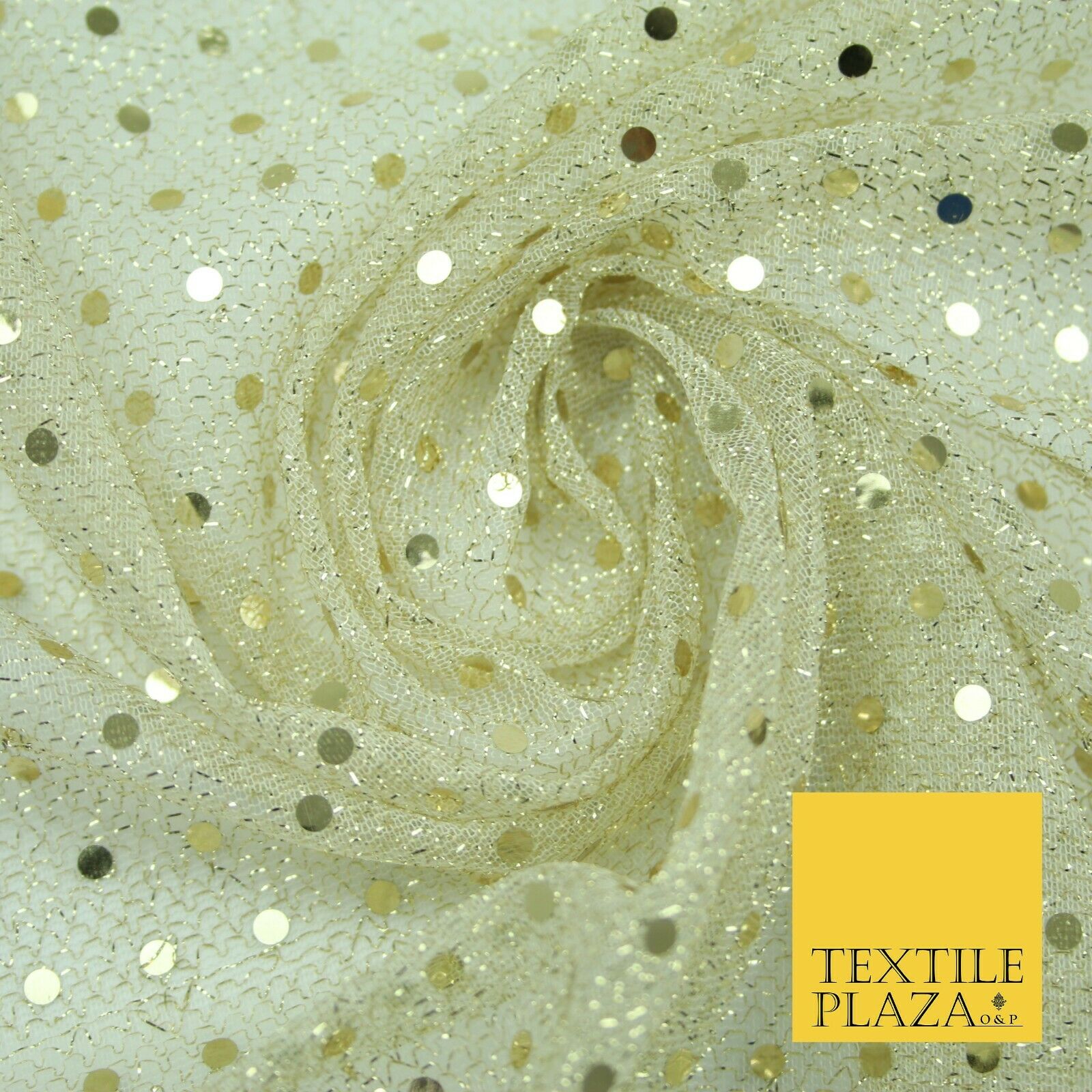 Cream Gold 4mm Sequin Hologram Stretch Fabric Sparkly Dress Dance Fancy 2253