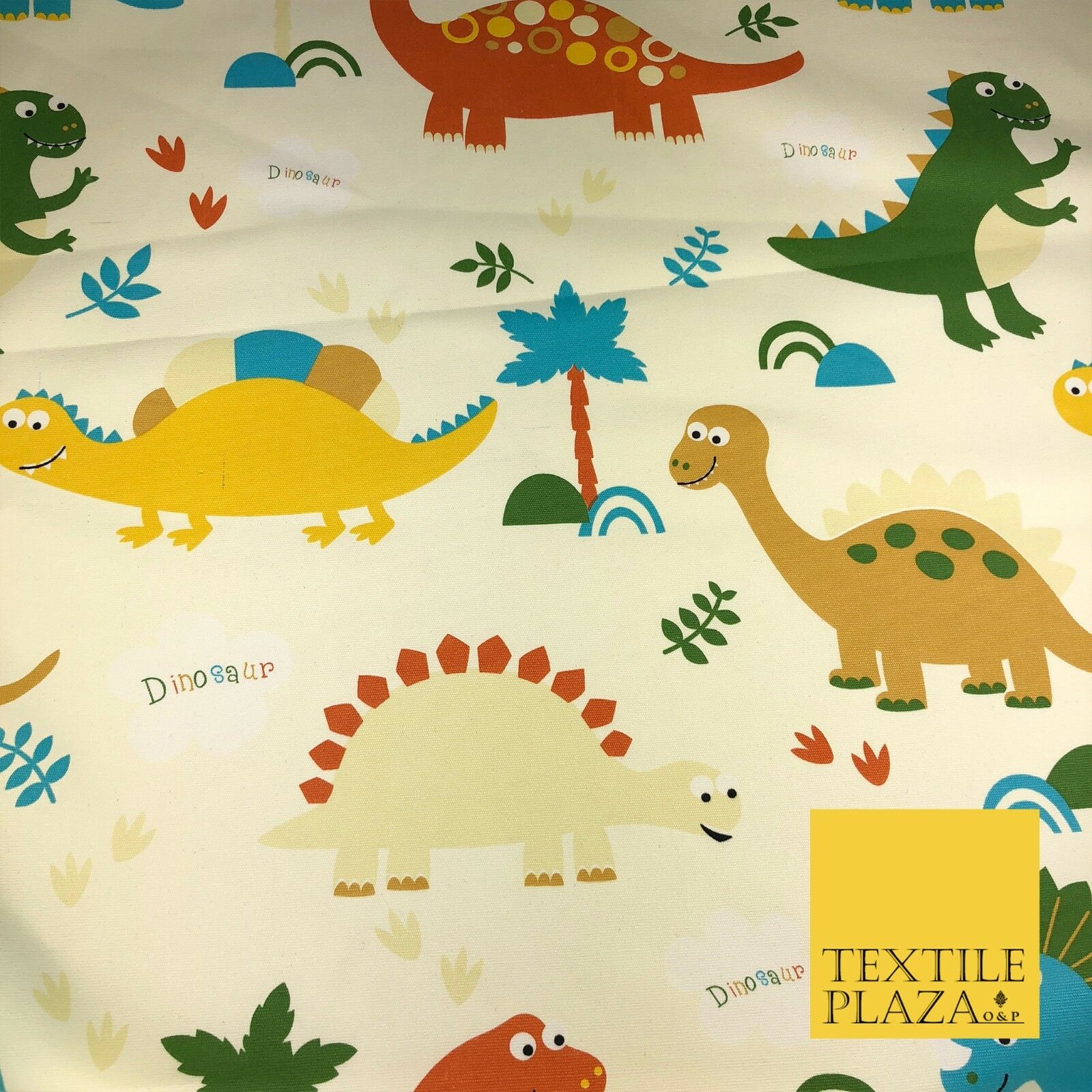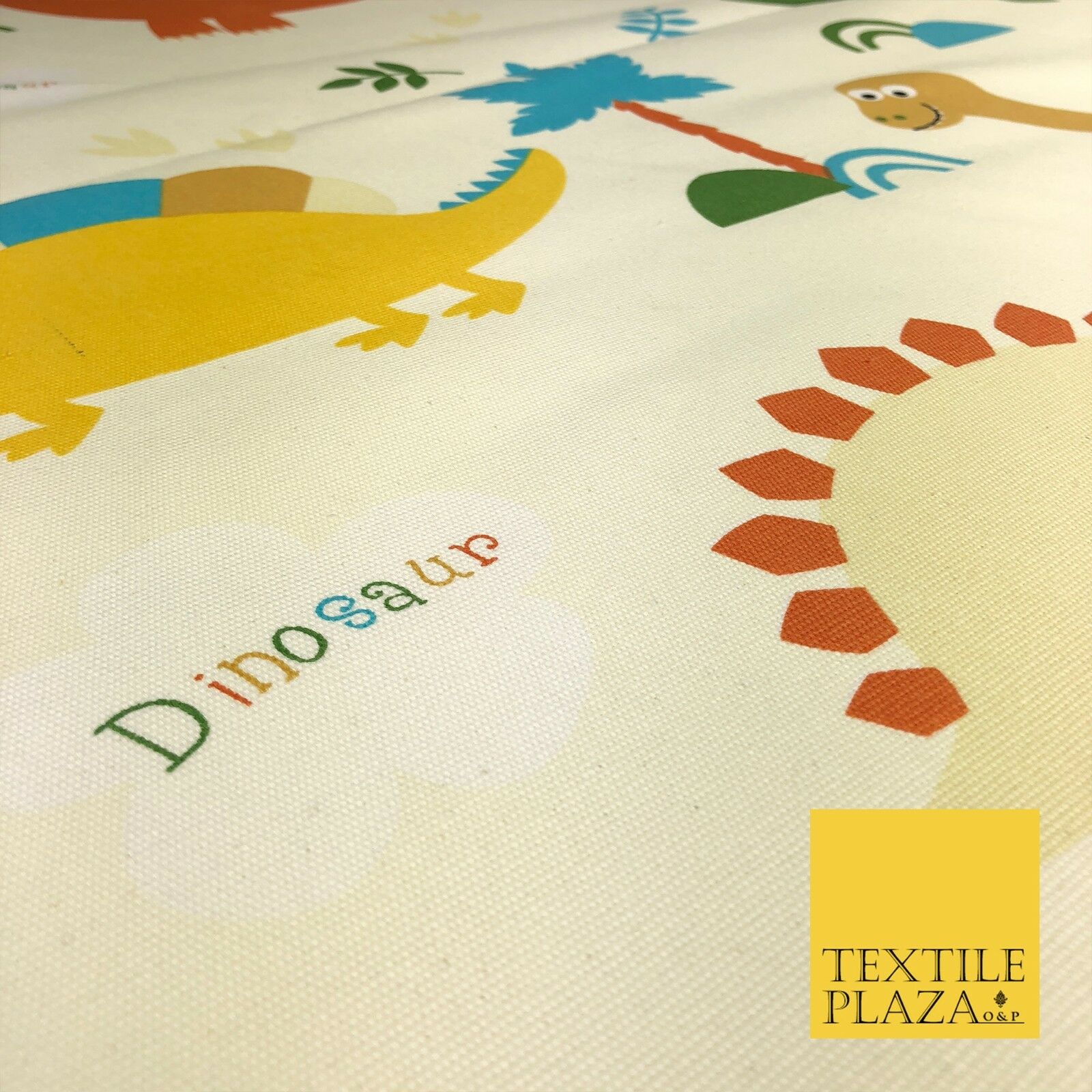 Cream Kids Dinosaur 100% COTTON CANVAS Print Fabric Fun Novelty Craft 58" RG908