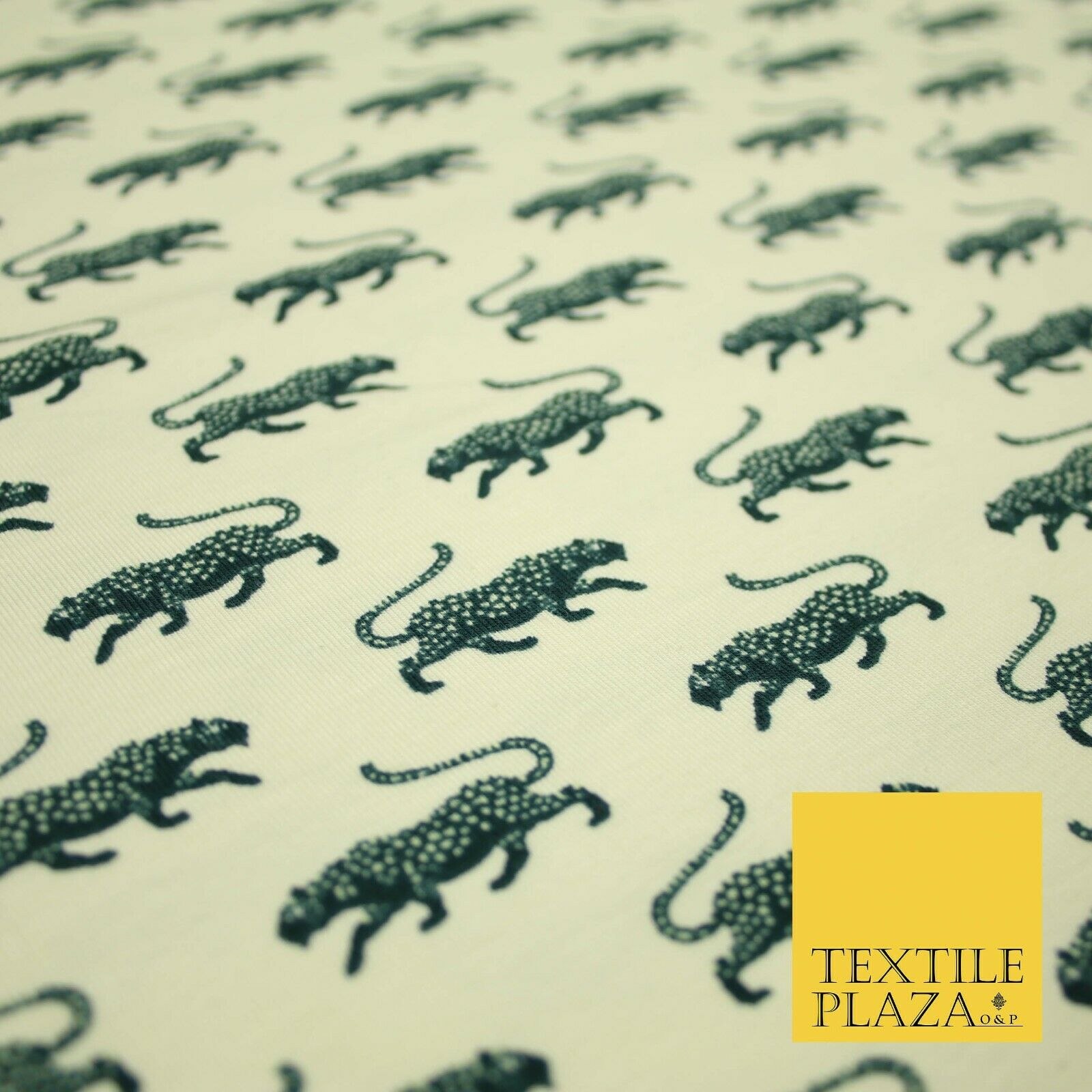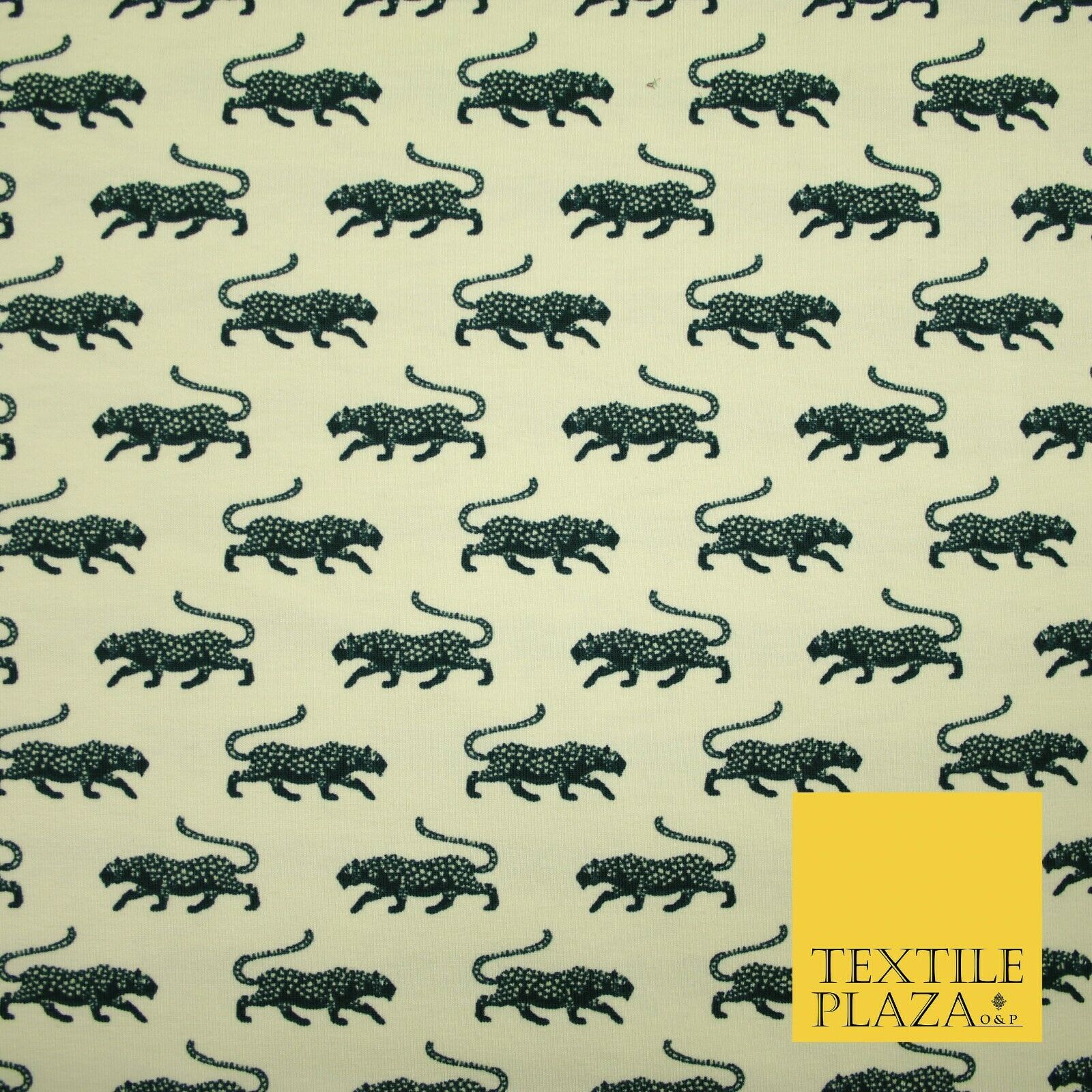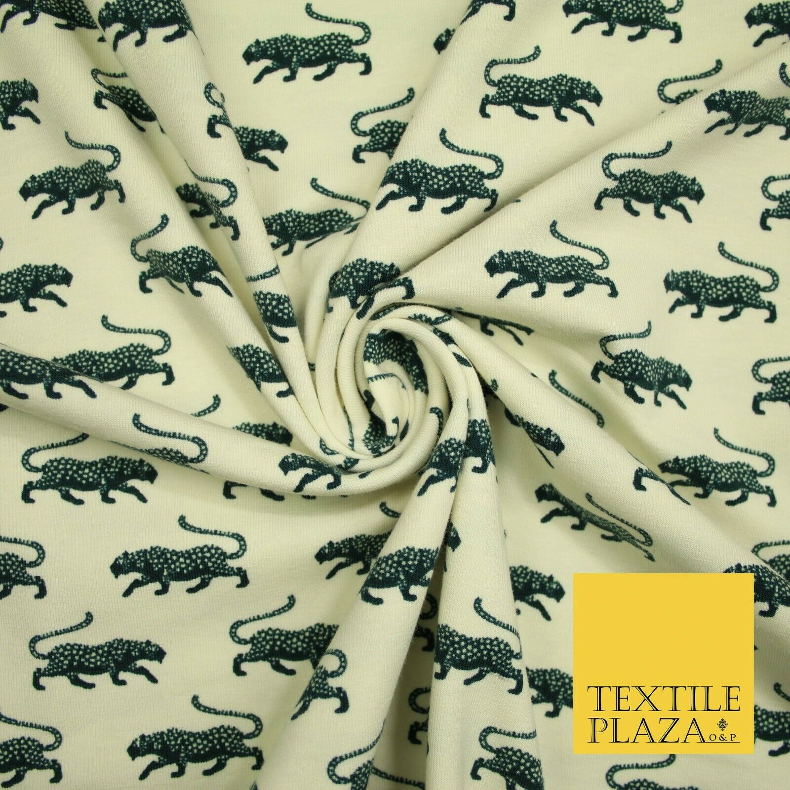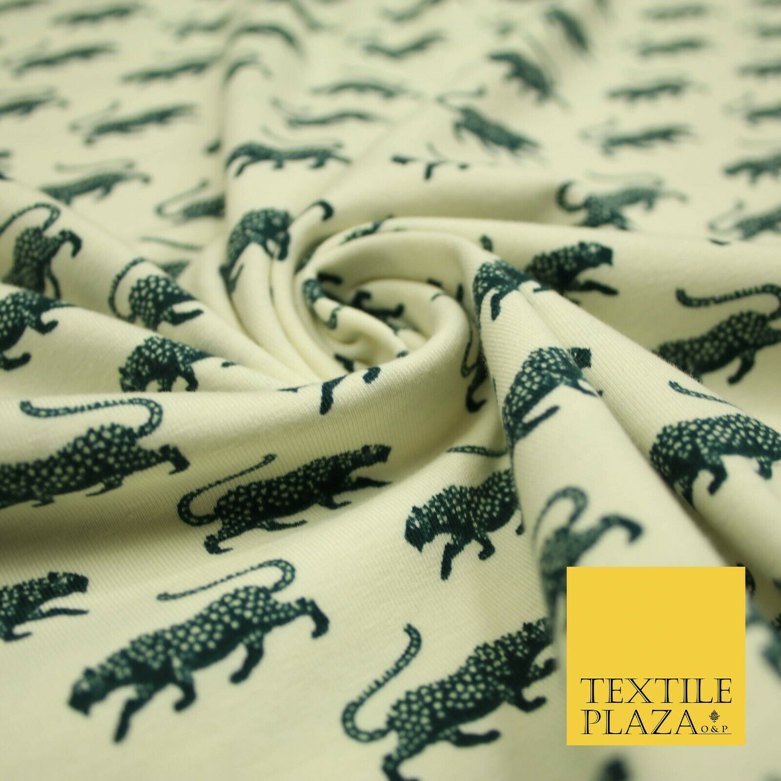CREAM Leopard Cheetah Big Cat Printed Soft Cotton Jersey Stretch Fabric 59" 4973