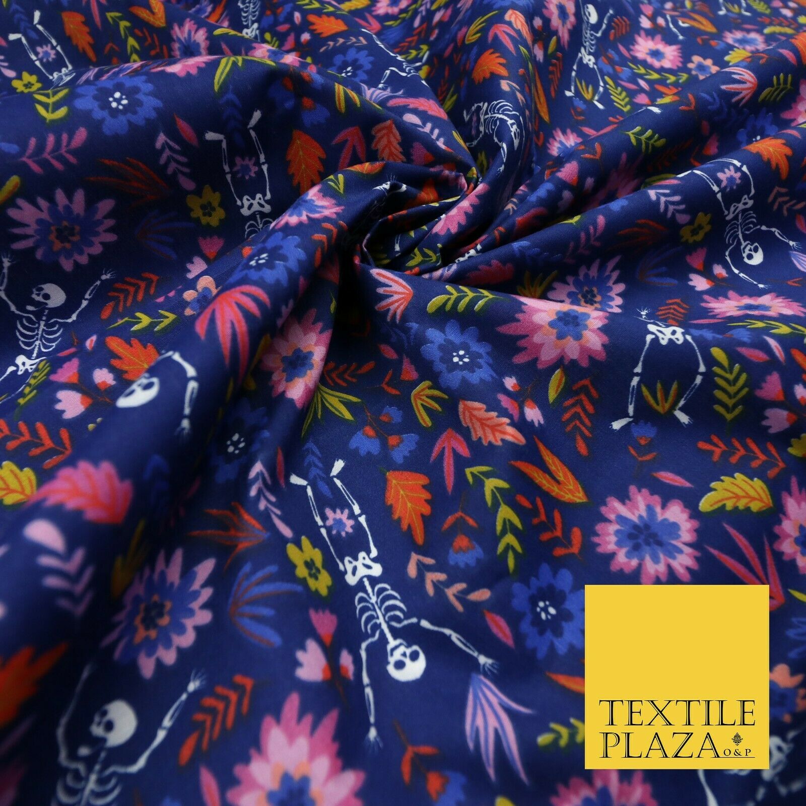Dancing Skeletons Day of the Dead HALLOWEEN Printed Polycotton Fabric 45" Wide