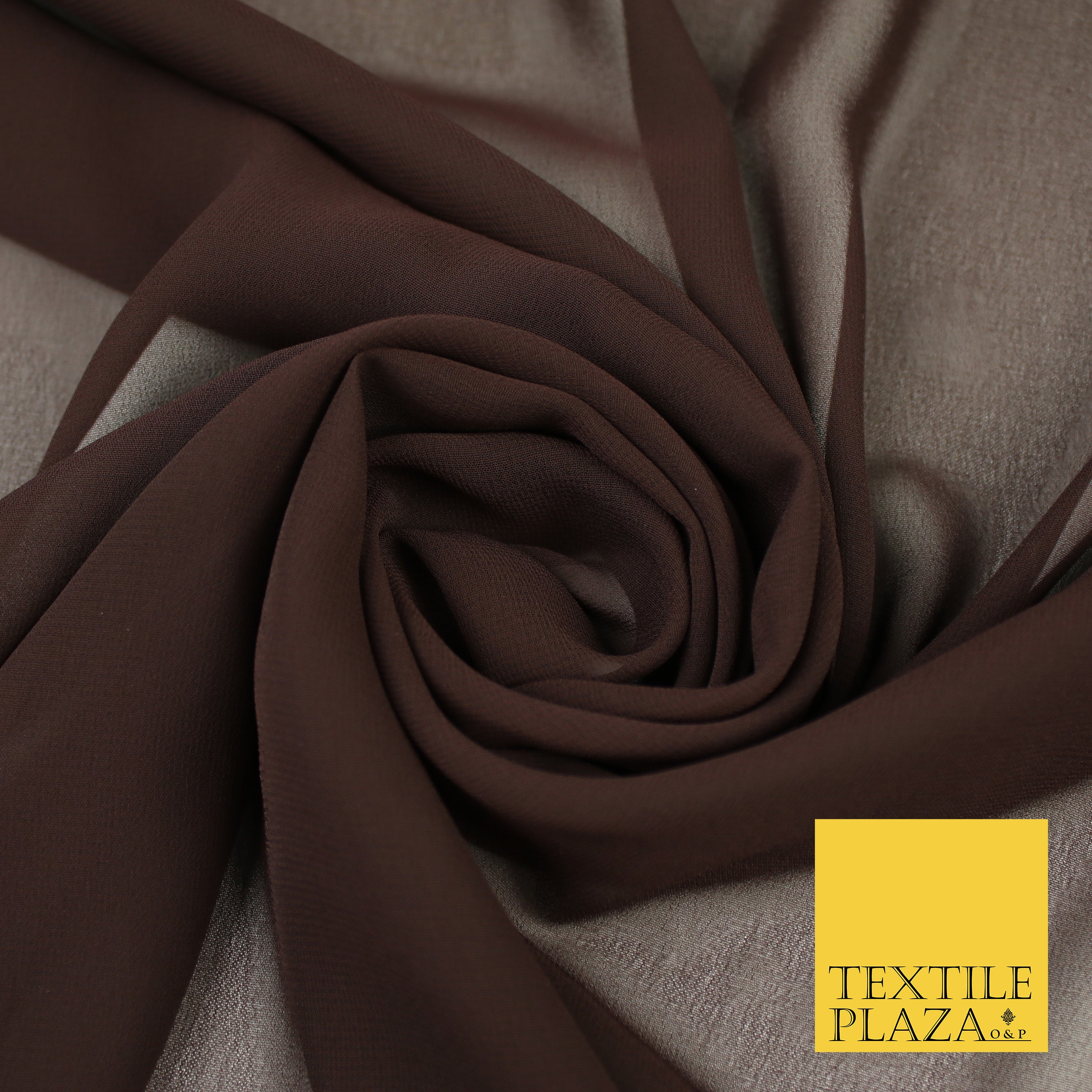 DARK BROWN Premium Plain Dyed Chiffon Fine Soft Georgette Sheer Dress Fabric 8339