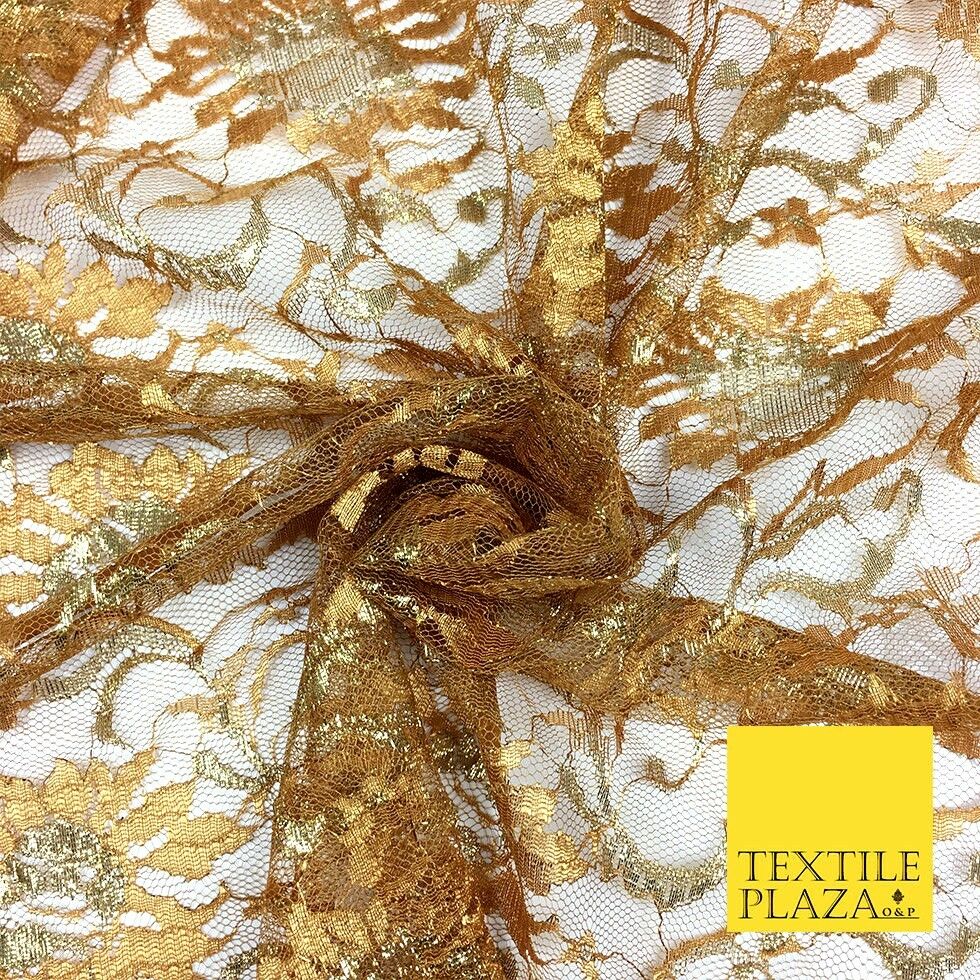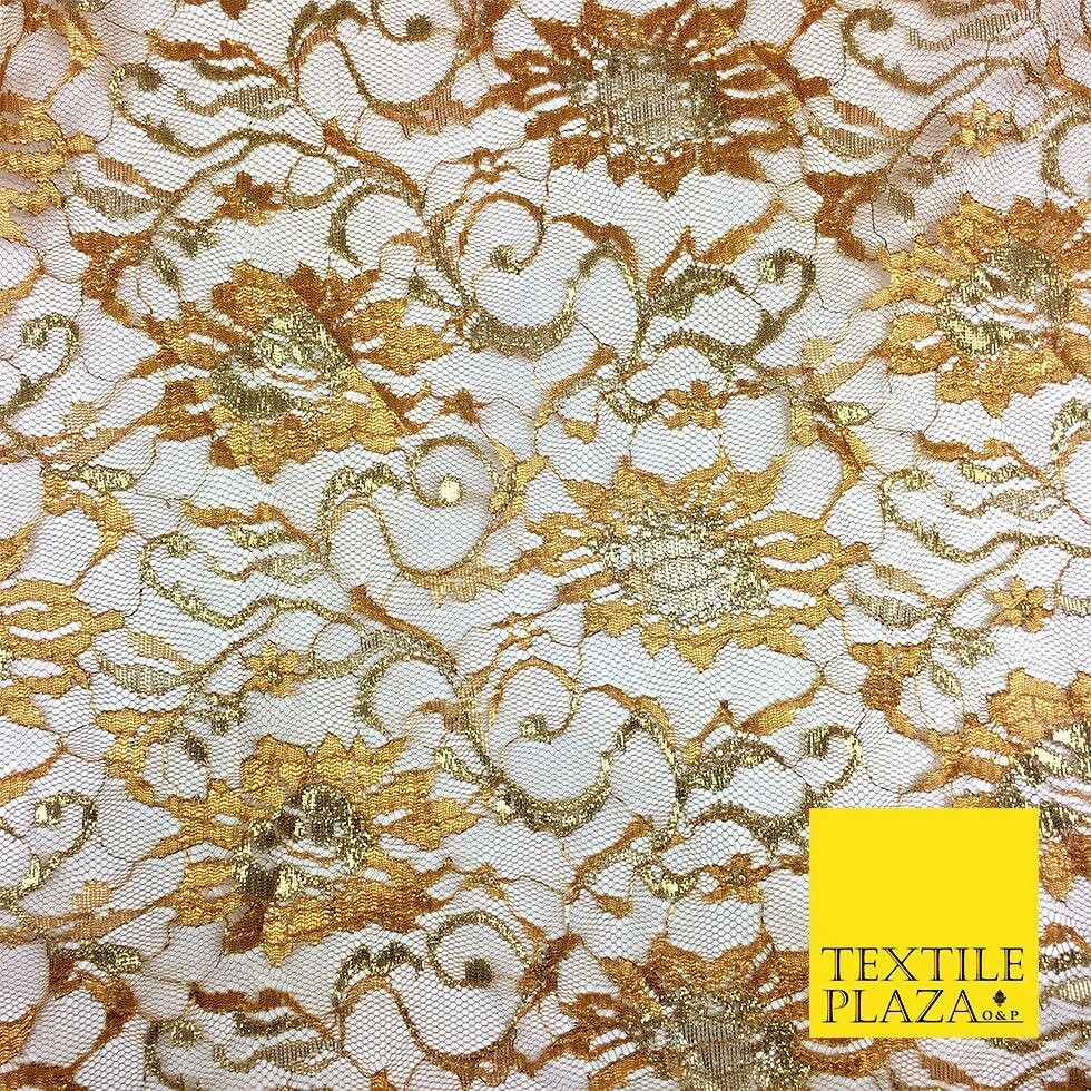 DARK GOLD MUSTARD Floral Metallic Shimmer Lurex Lace Fabric Dress - 58" - GF848