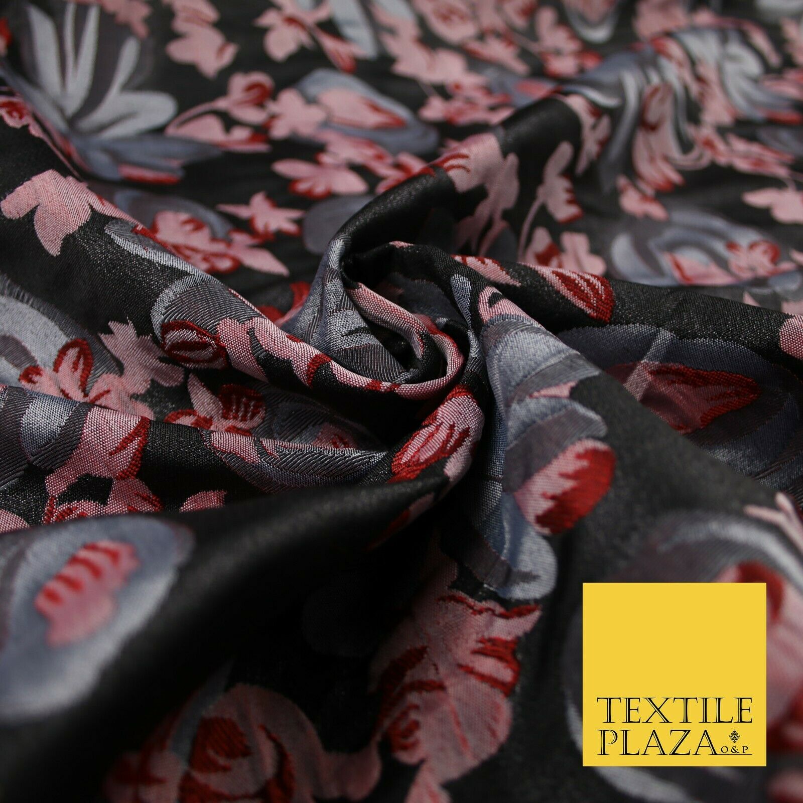 Dark Grey / Wine / Pink Artsy Floral Textured Brocade Jacquard Dress Fabric 6786
