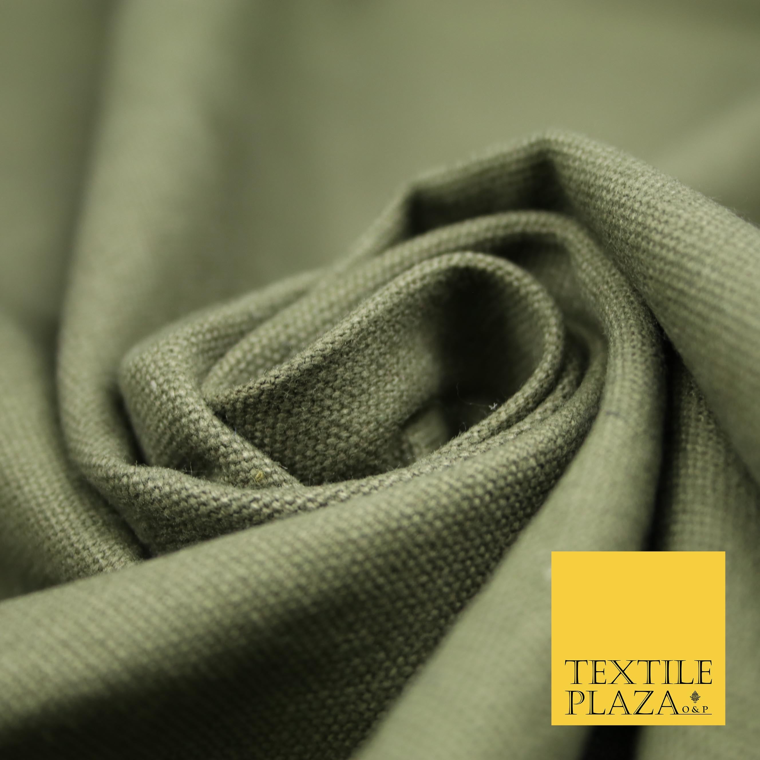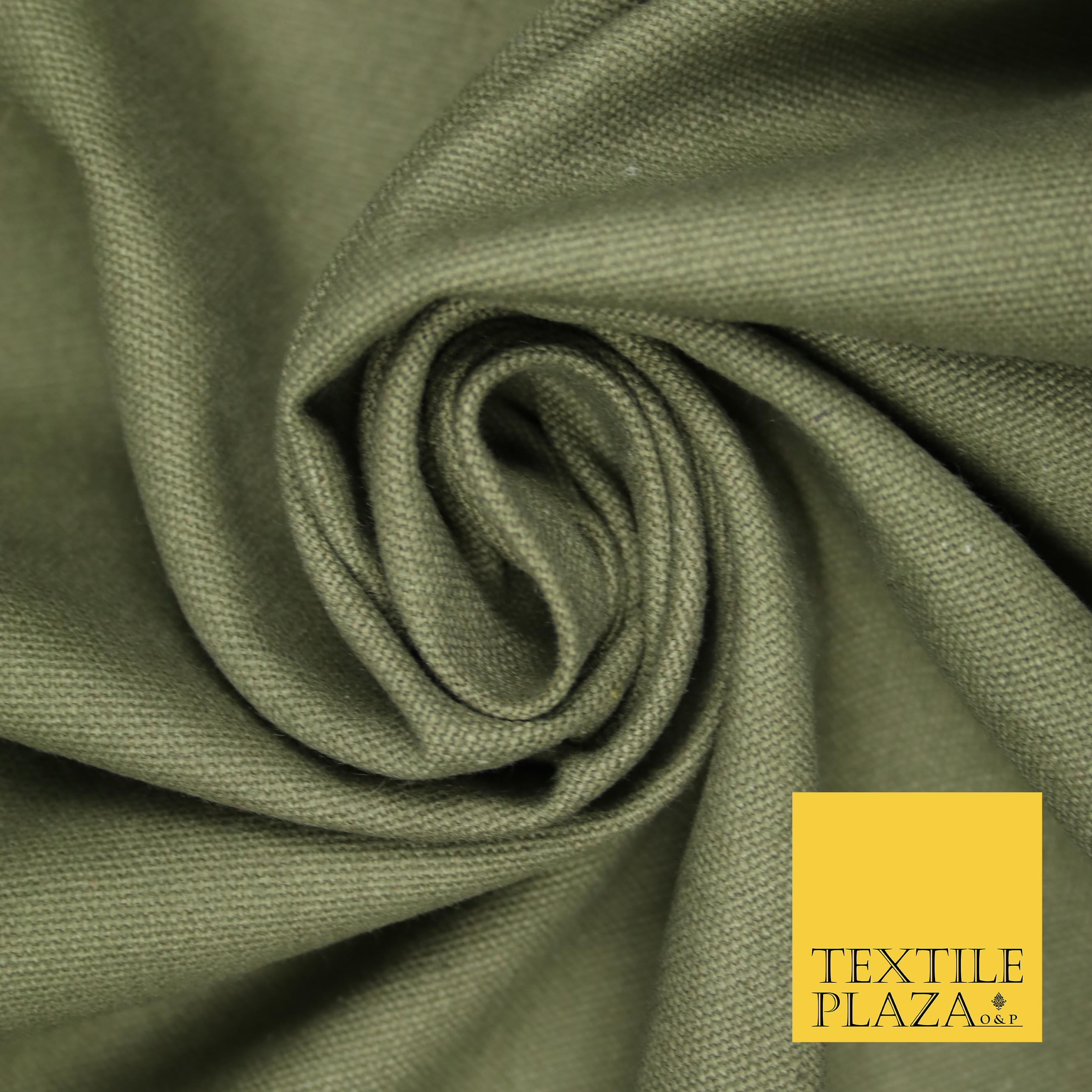 DARK KHAKI GREEN Premium Plain 100% Cotton Canvas Fabric Upholstery Dress Bags Craft Material 57" 4019