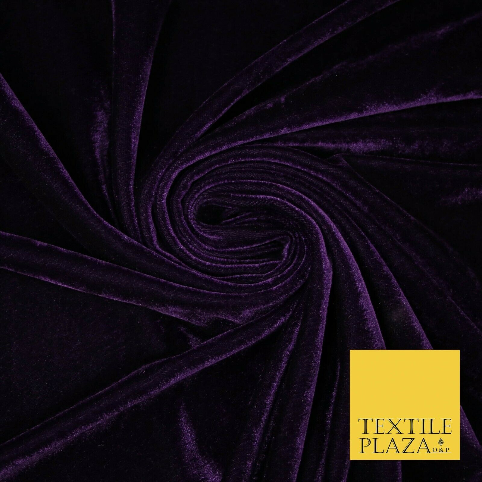 Dark Purple Soft Plain Stretch Velvet Fabric Dress Material Craft- 58" 1900