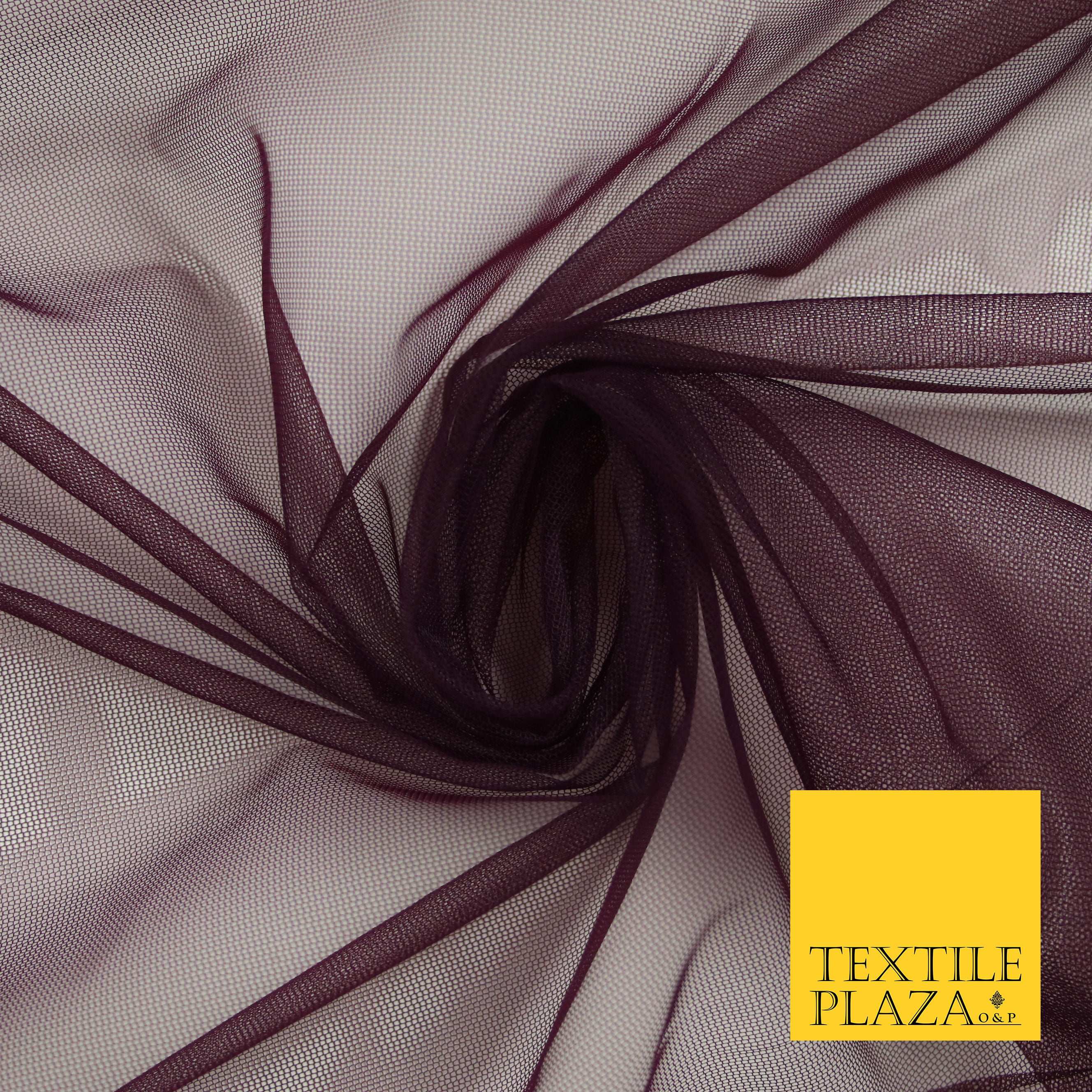 DEEP AUBERGINE PLUM Premium Soft Plain Sheer Tulle Net Fabric Tutu Fairy Veil Bridal 45" Wide 6914