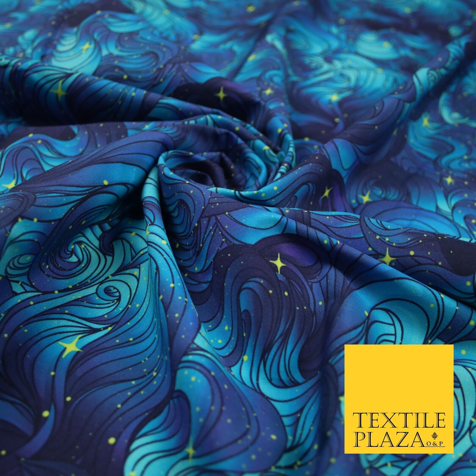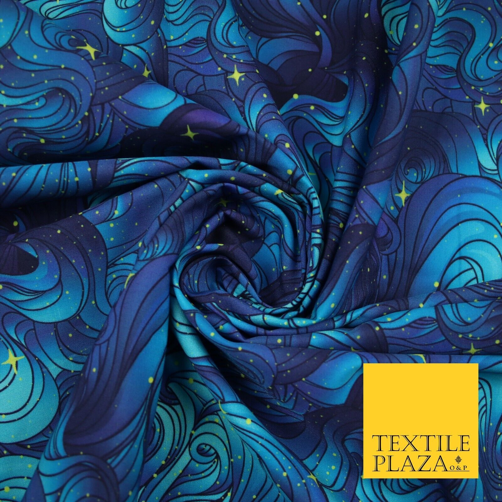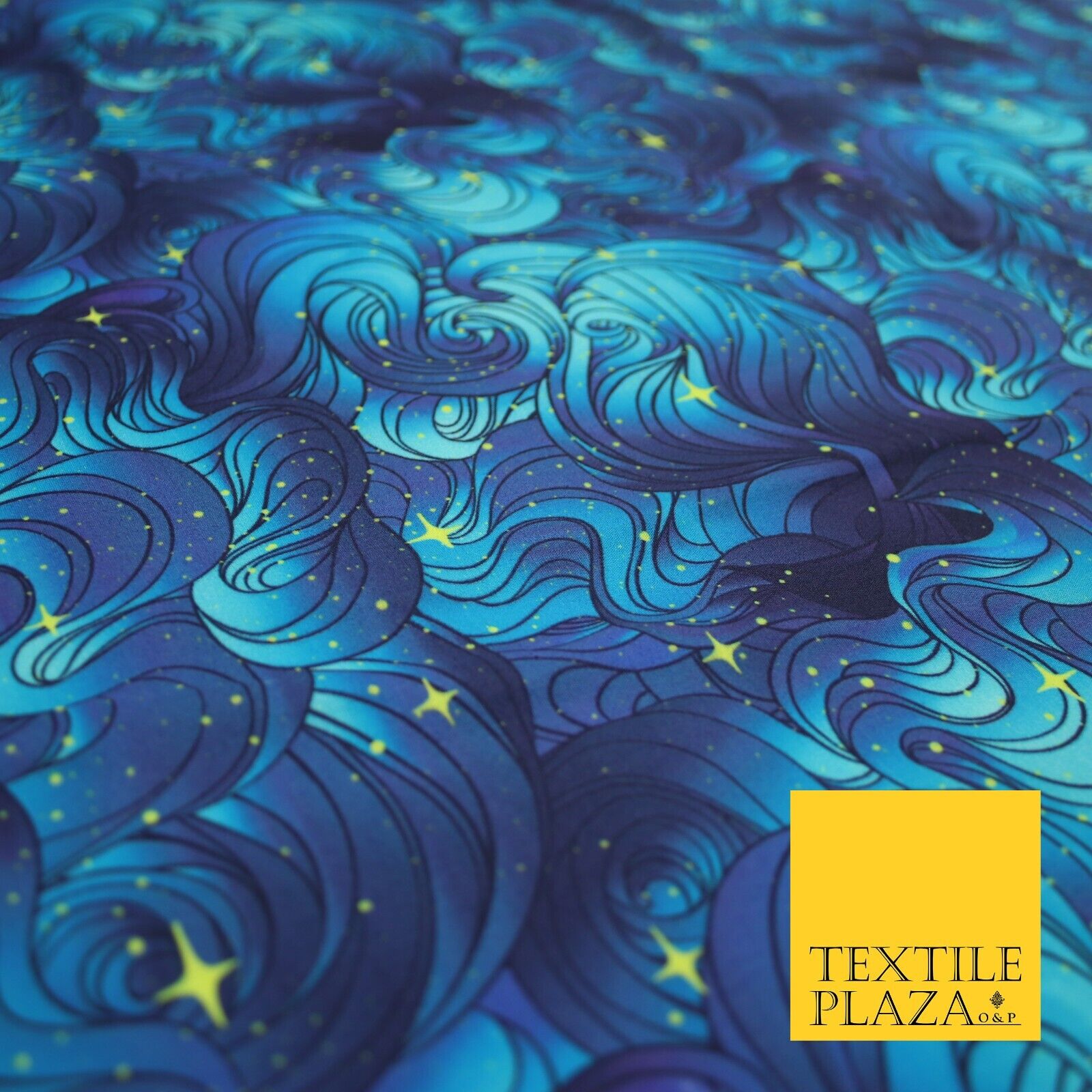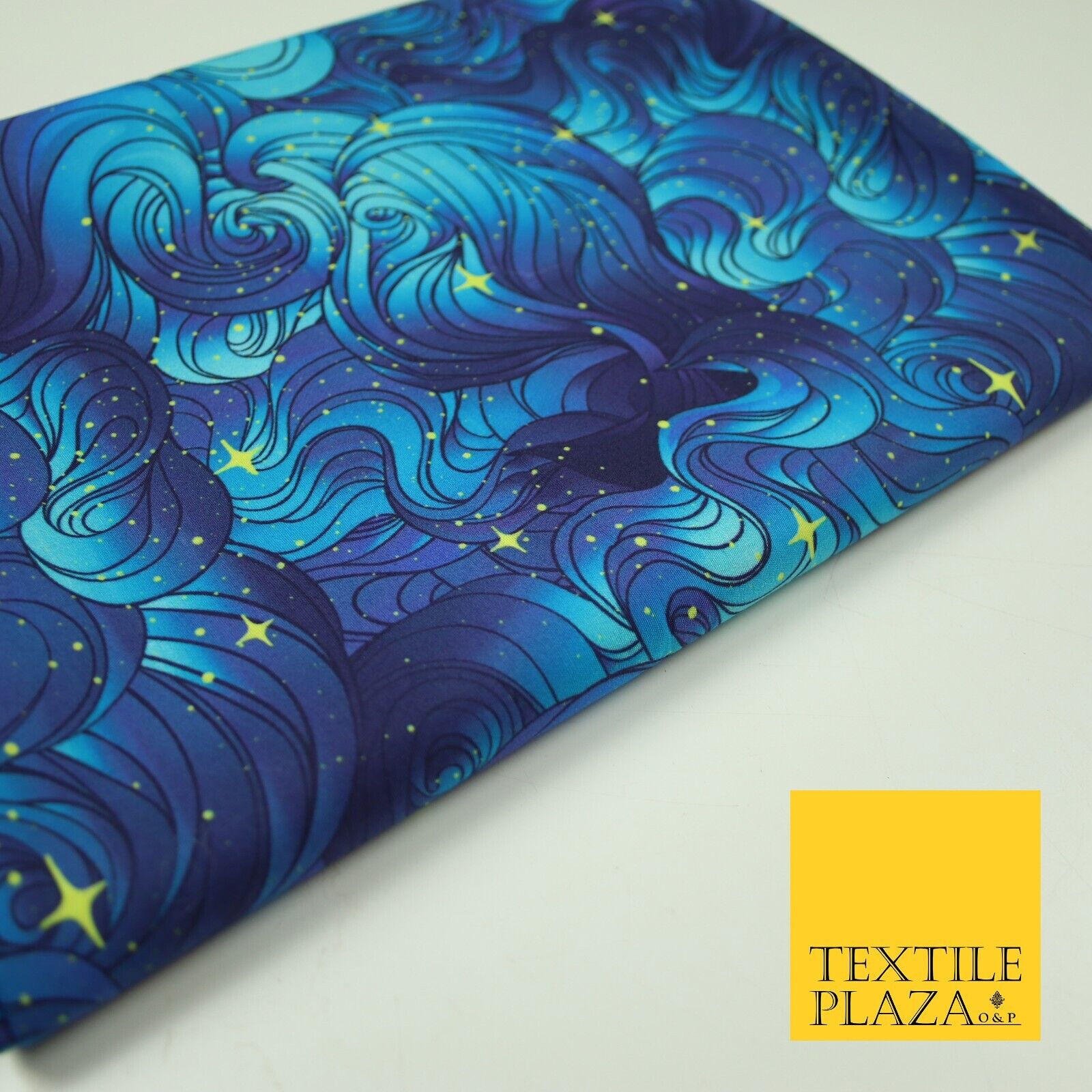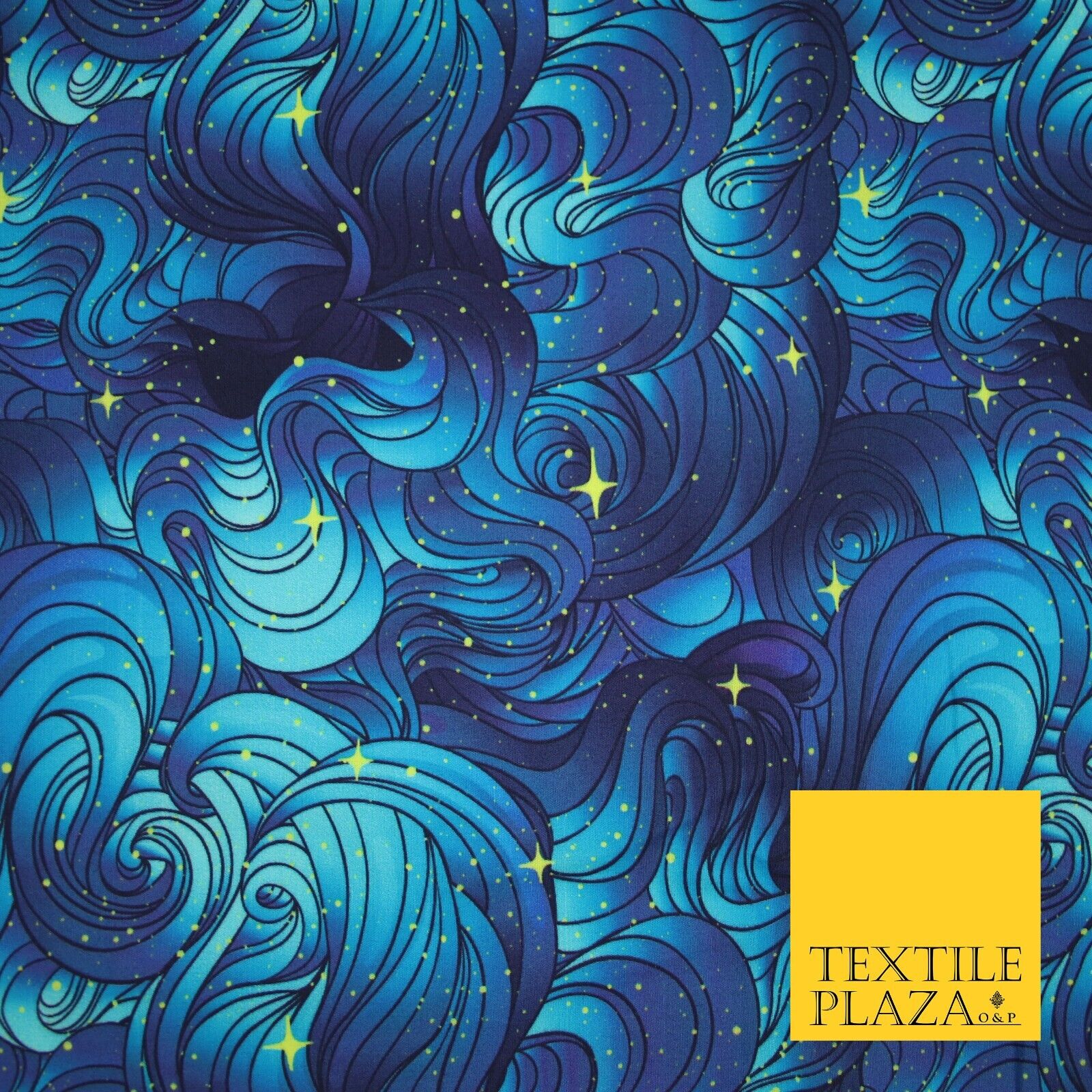 Deep Blue Swirl Starry Night Sky Abstract Printed 100% Cotton Fabric 7343