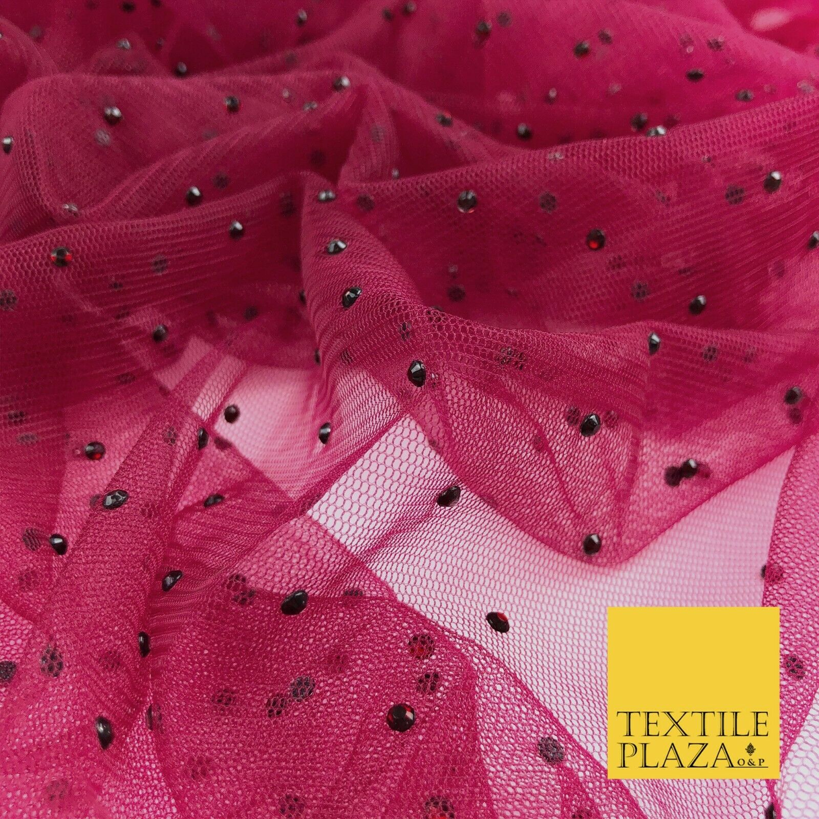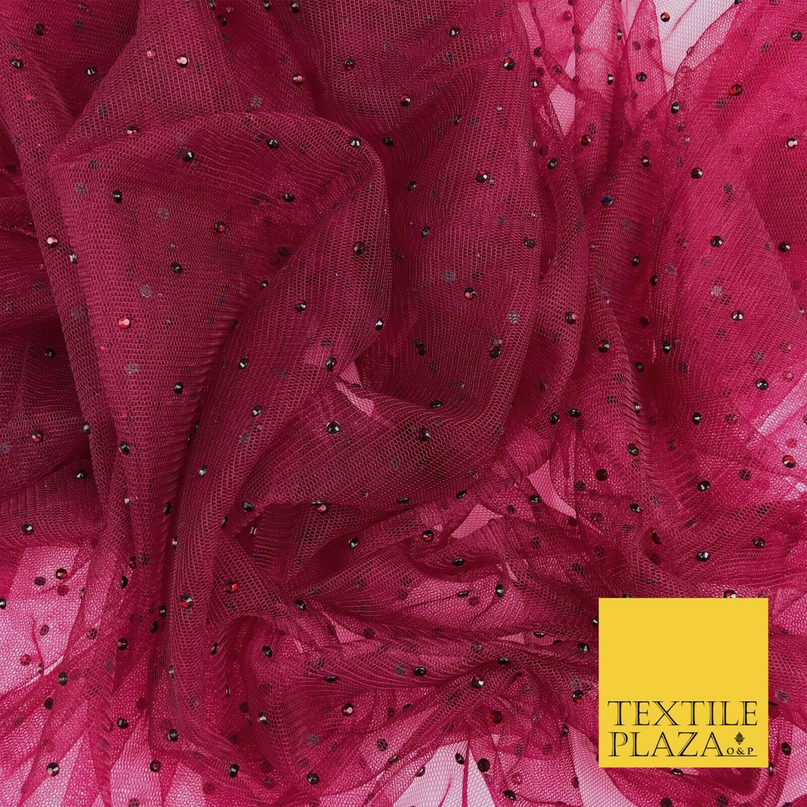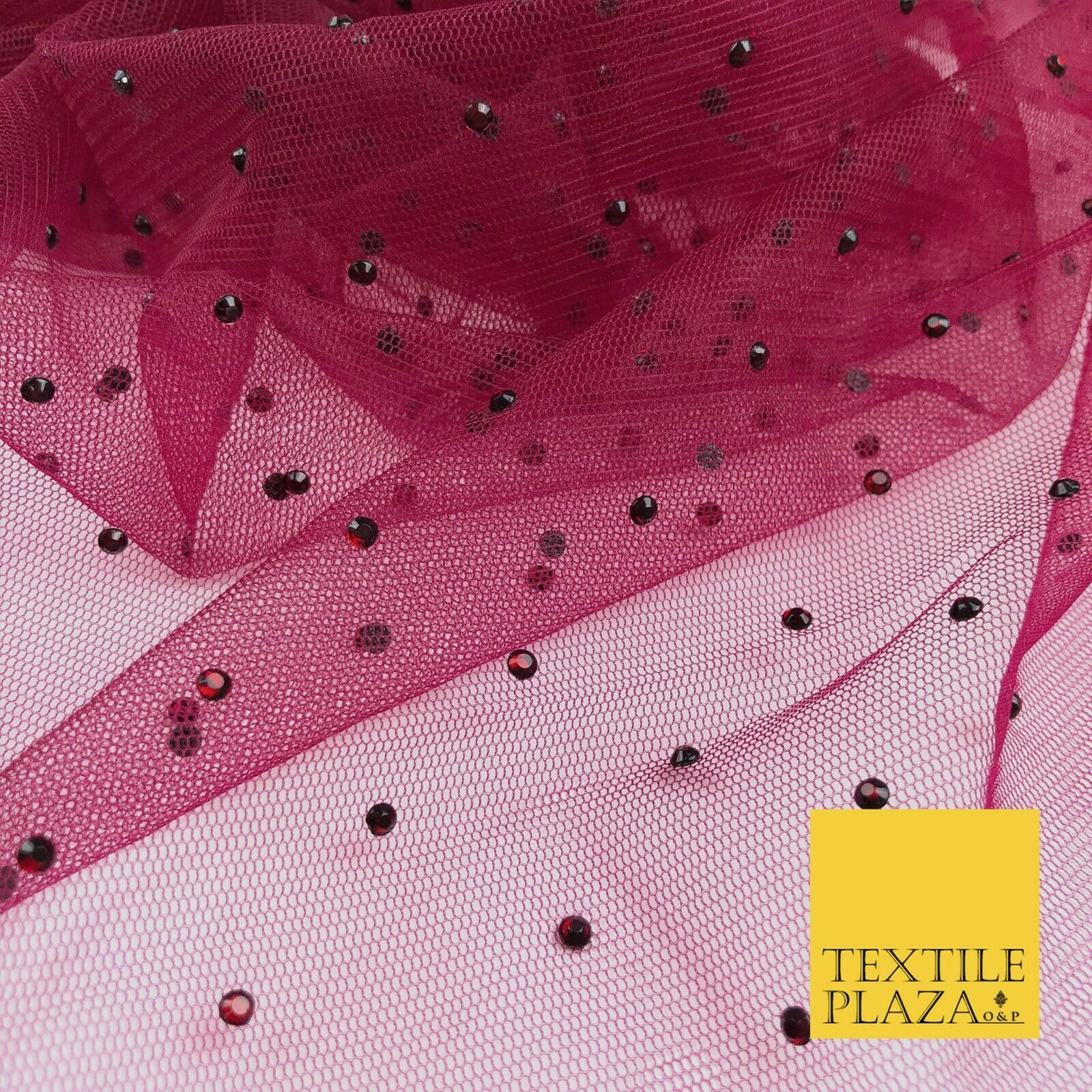 DEEP CHERRY Diamonte Multi Stone Mesh Net Fabric Bridal Sheer Craft Dress 1439