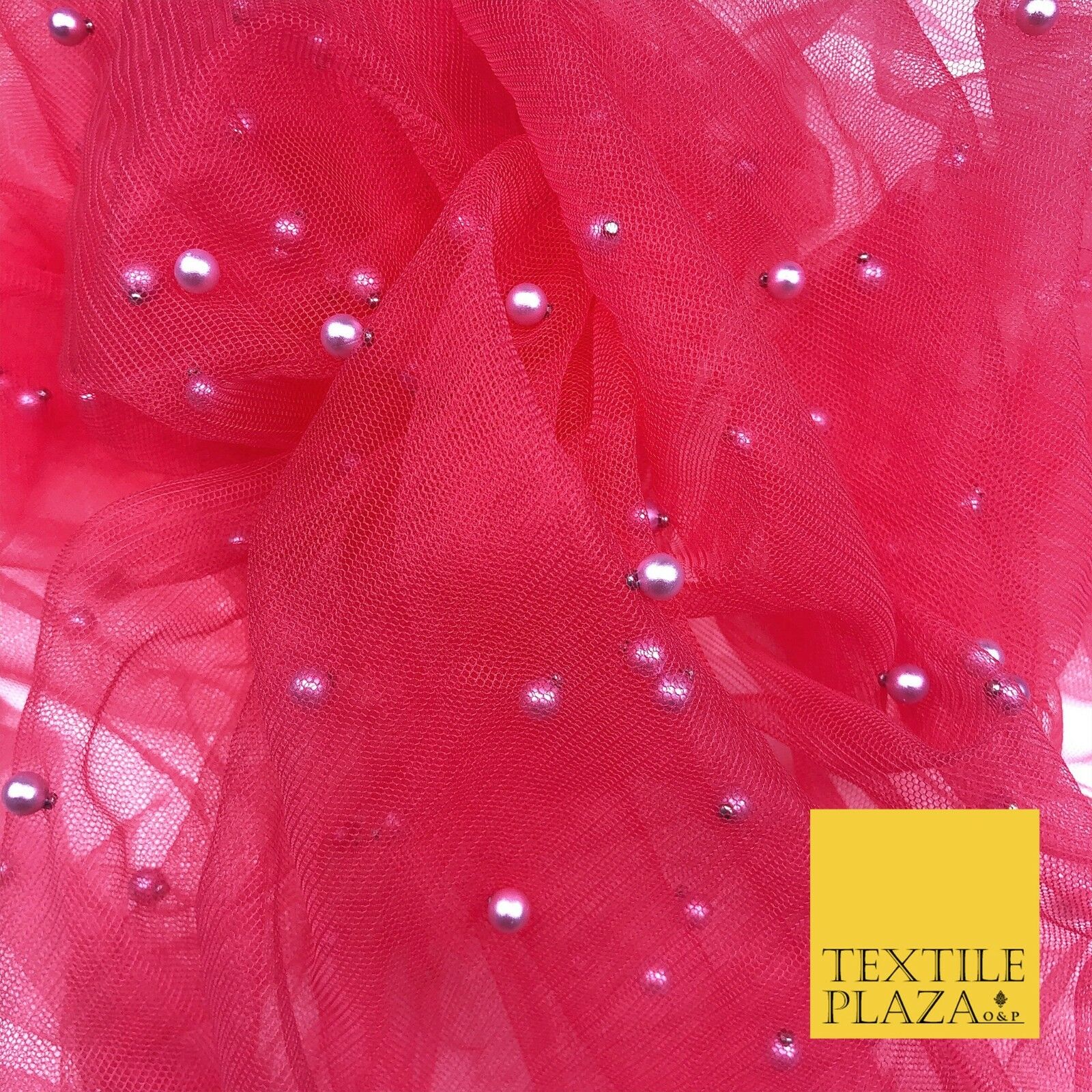 DEEP PINK Studded Pearl Mesh Net Fabric Bridal Sheer Craft Dress N1100