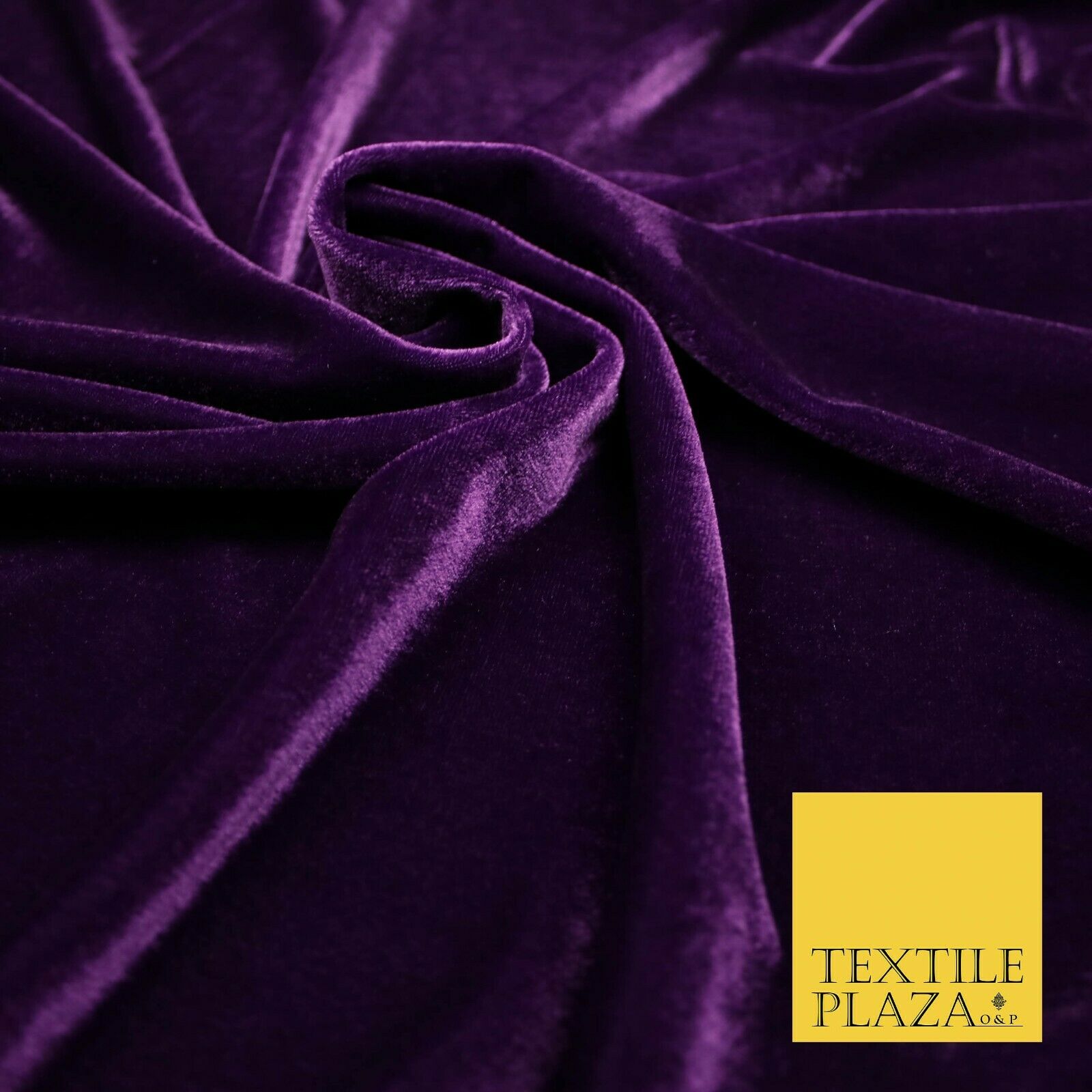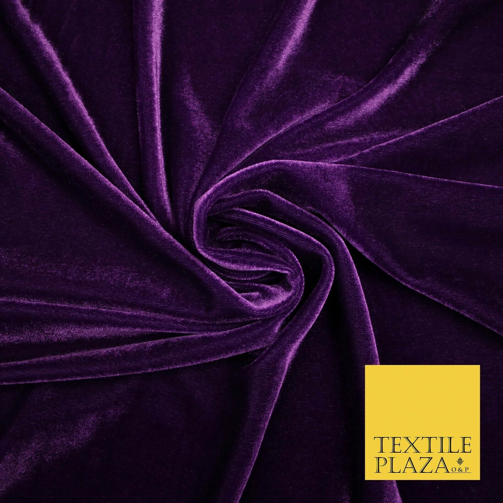 DEEP PURPLE Soft Plain Stretch Velvet Fabric Material 58" More Colours 5179