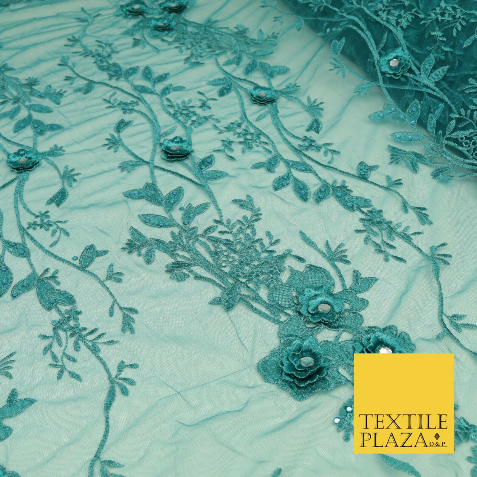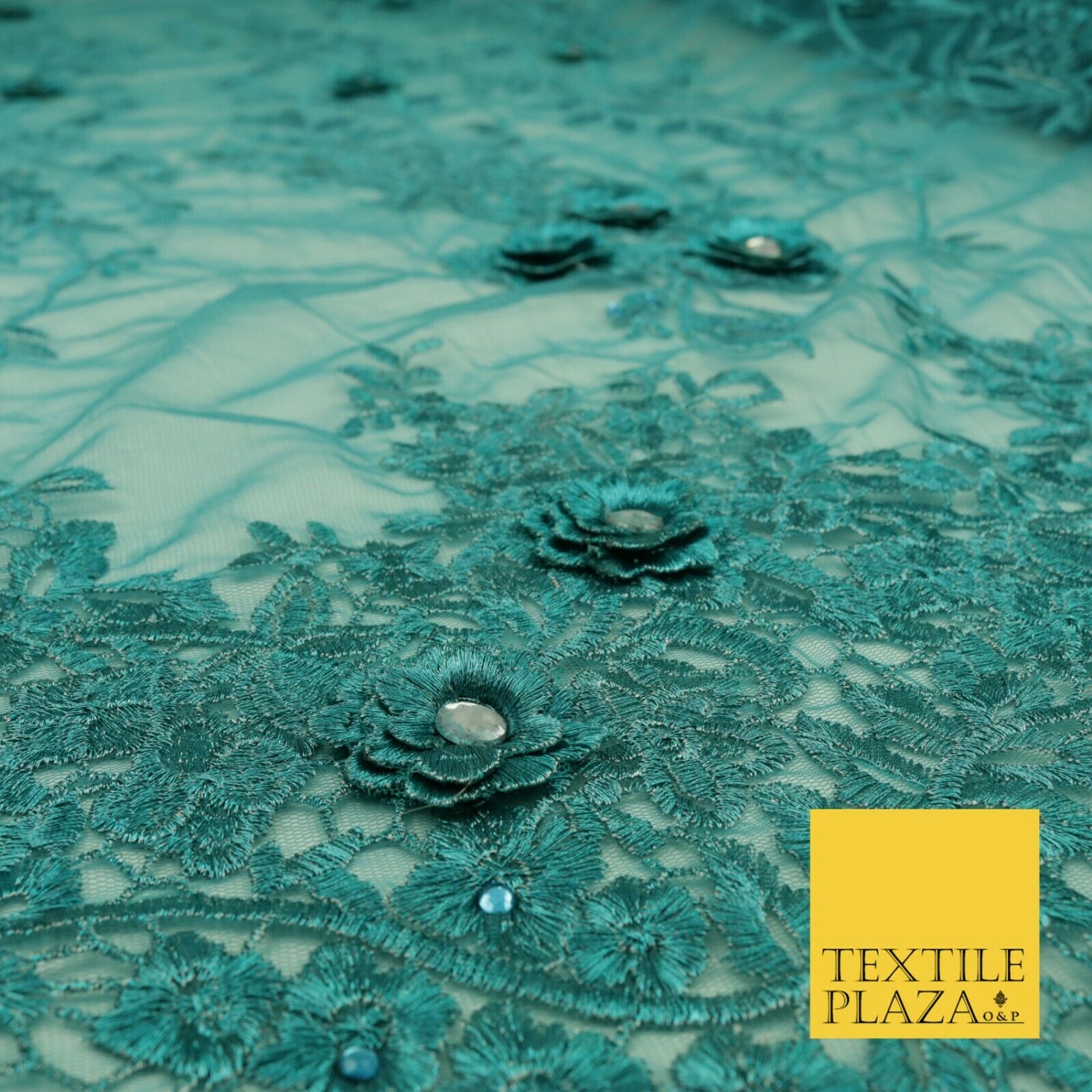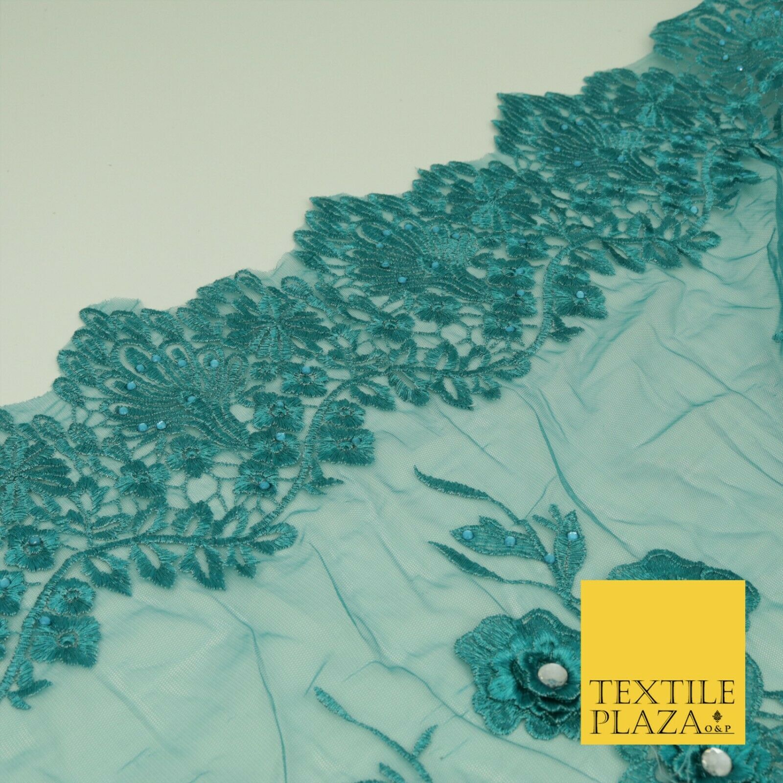 DEEP TEAL 3D Flower Trio Scalloped Embroidered Net Lace Dress Fancy Bridal 1584