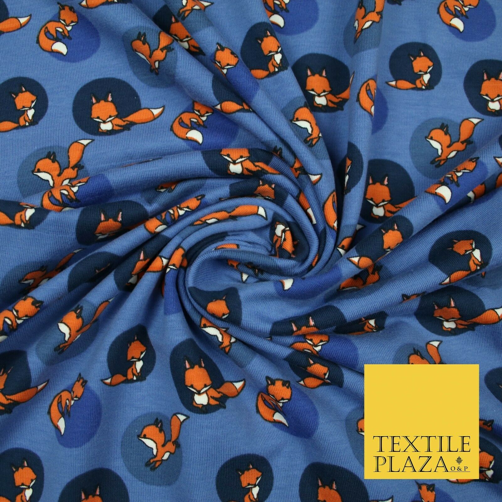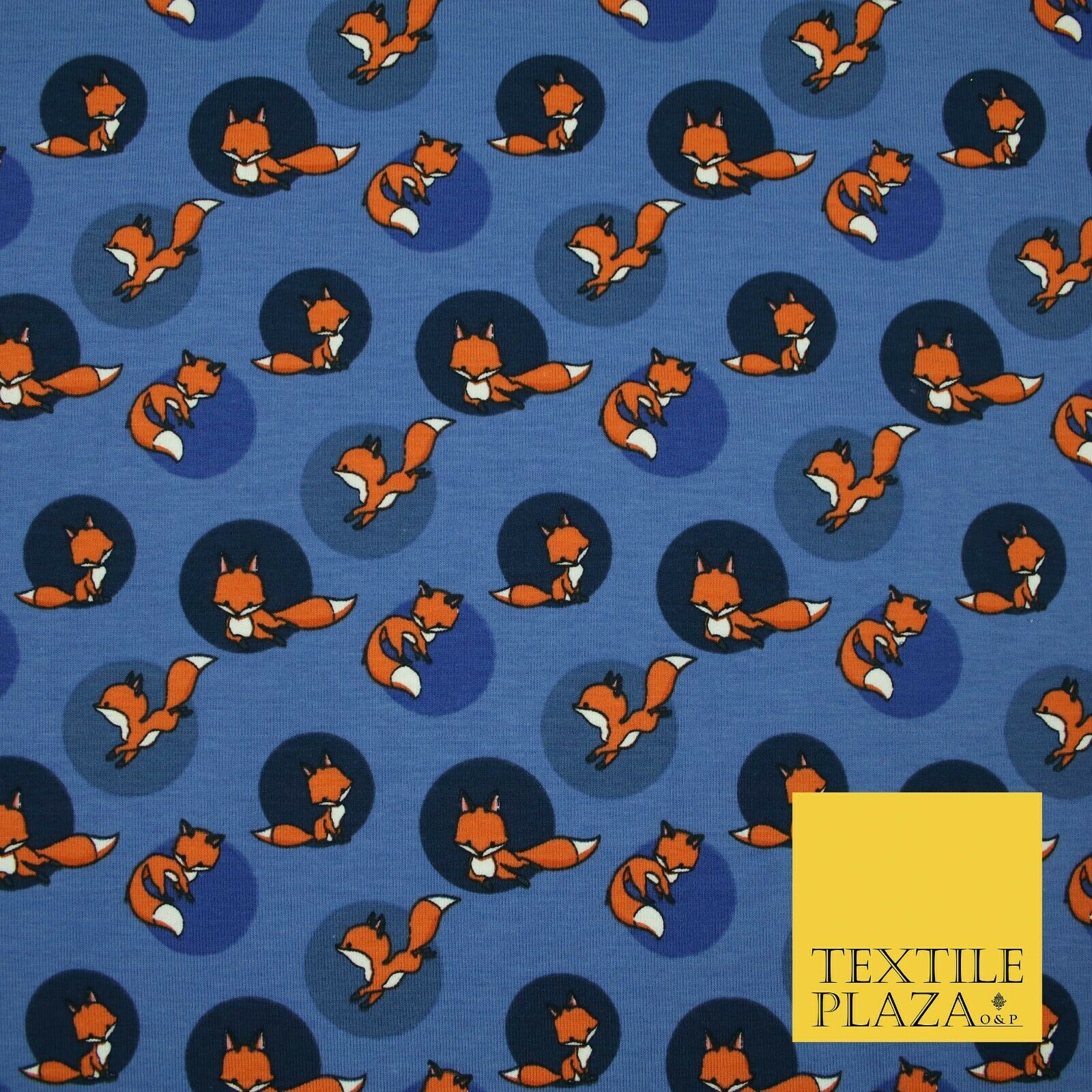 Denim Blue Spotlight Foxes Printed Soft Organic Cotton Jersey Fabric 59" 5474