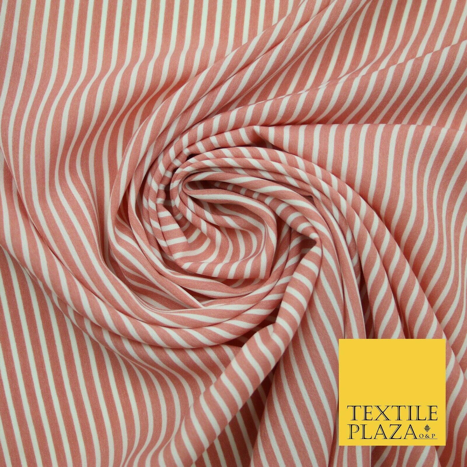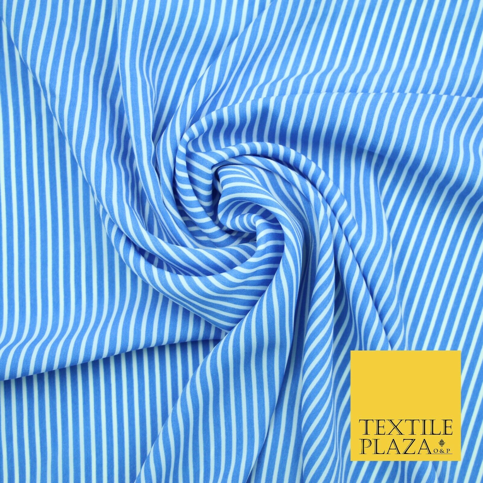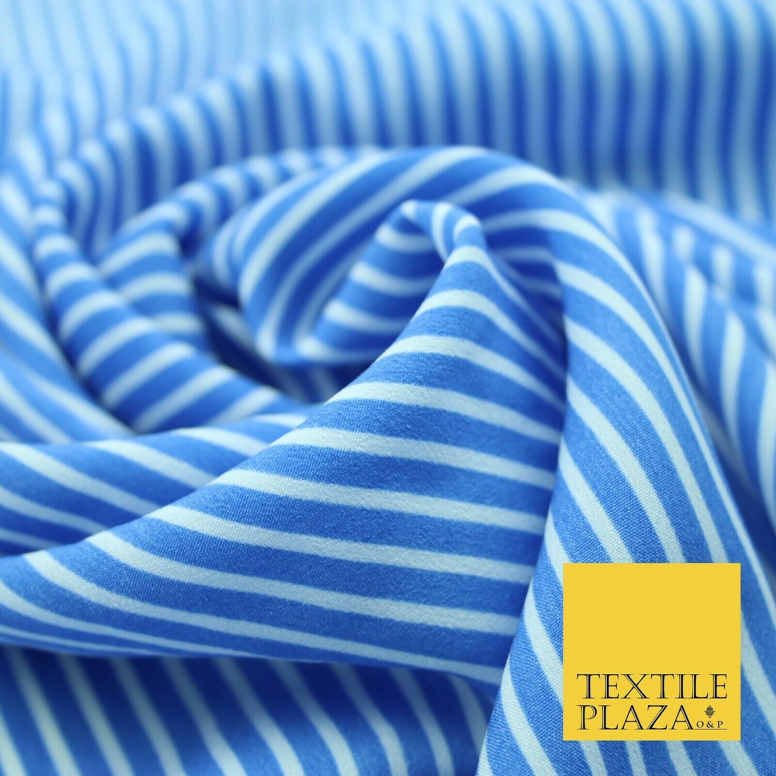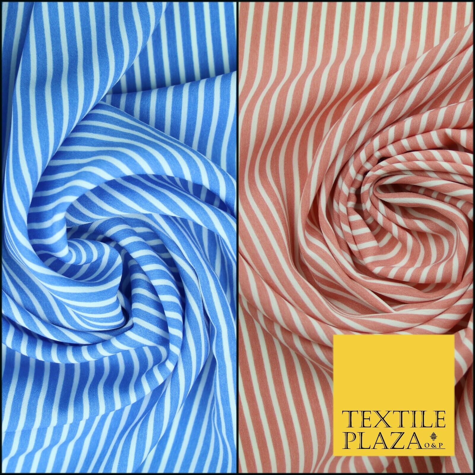 Denim Blue White Dusty Pink Striped Pinstripe Lines Polyester Crepe Dress Fabric
