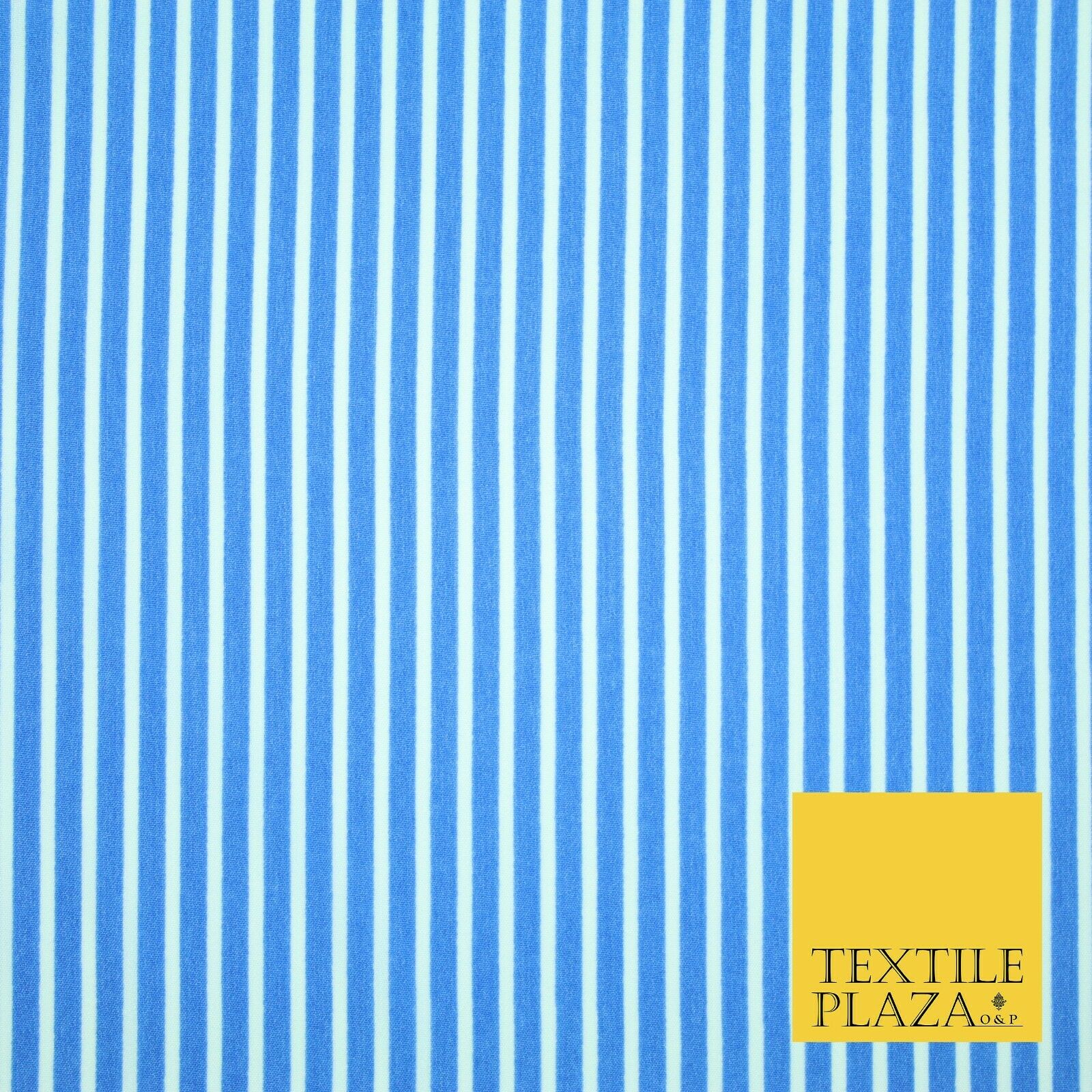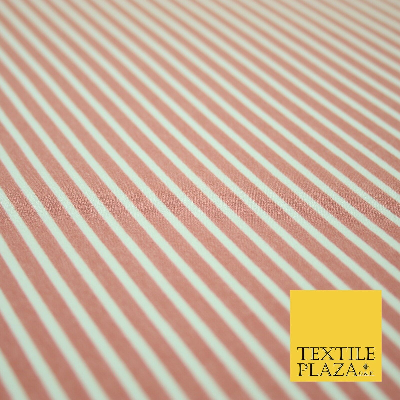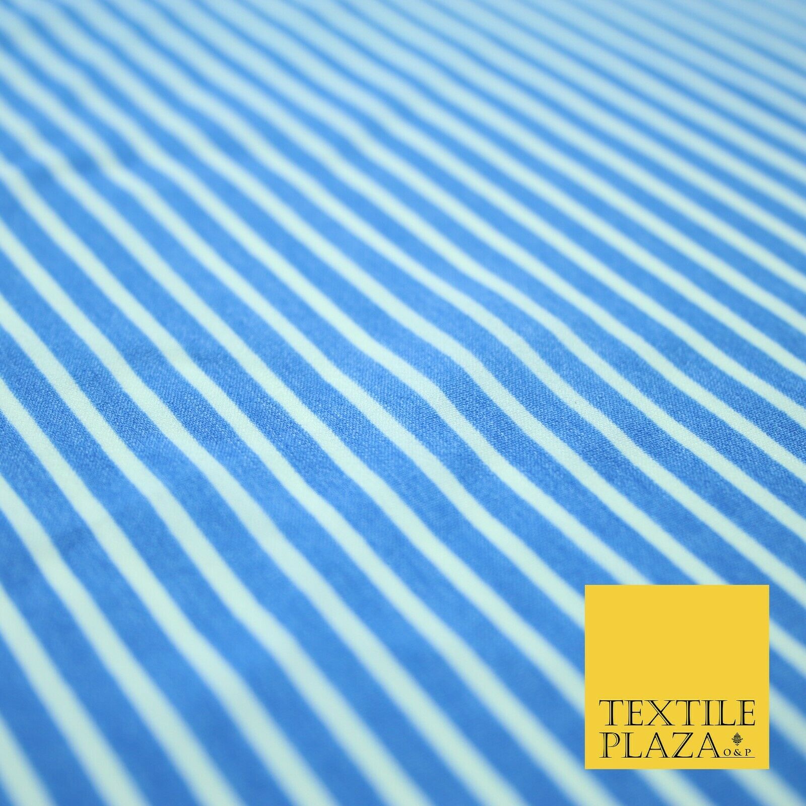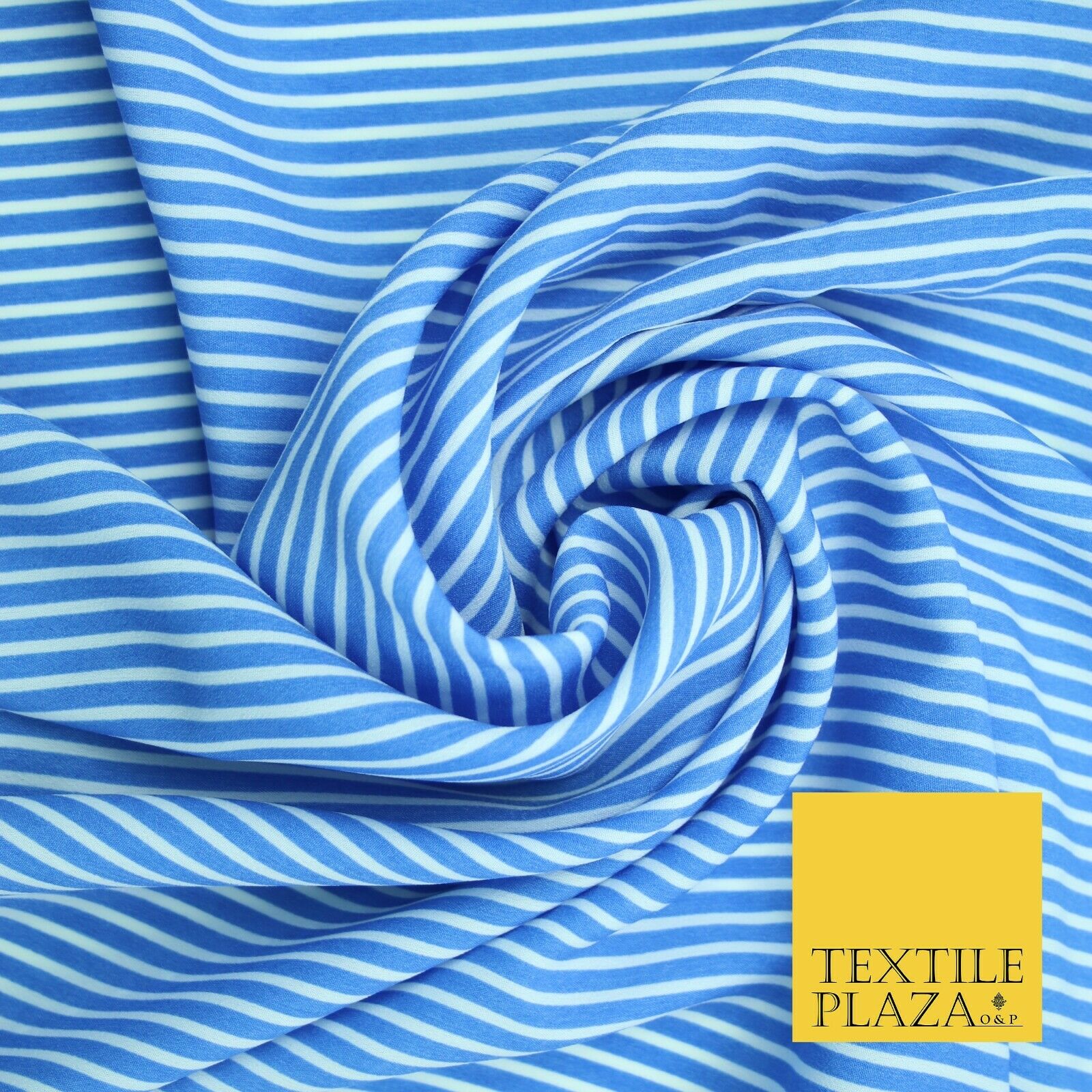 Denim Blue White Dusty Pink Striped Pinstripe Lines Polyester Crepe Dress Fabric