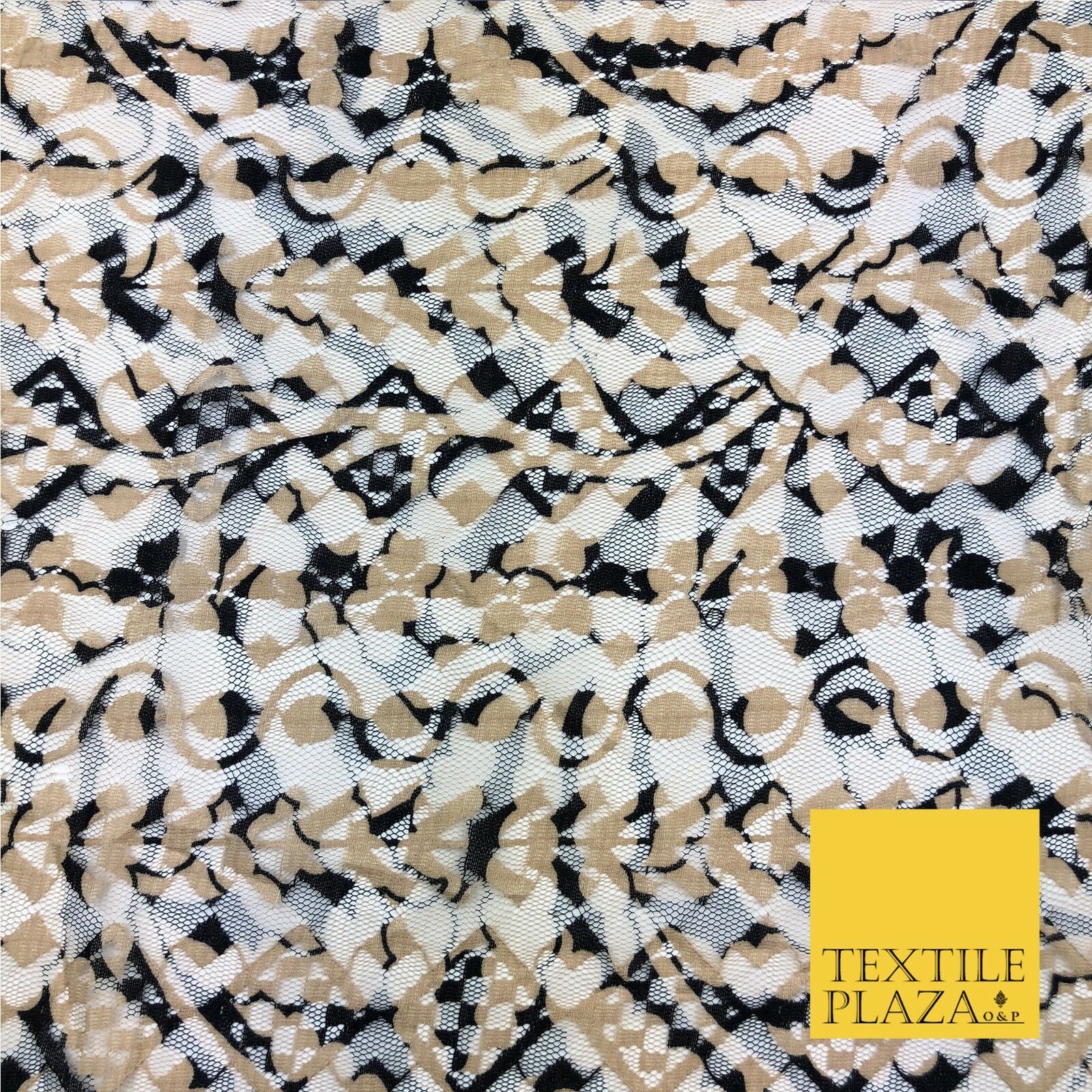Diamond Check Mixed Black & Gold Net Lace Fabric Trendy Dress Fashion 45" GE830