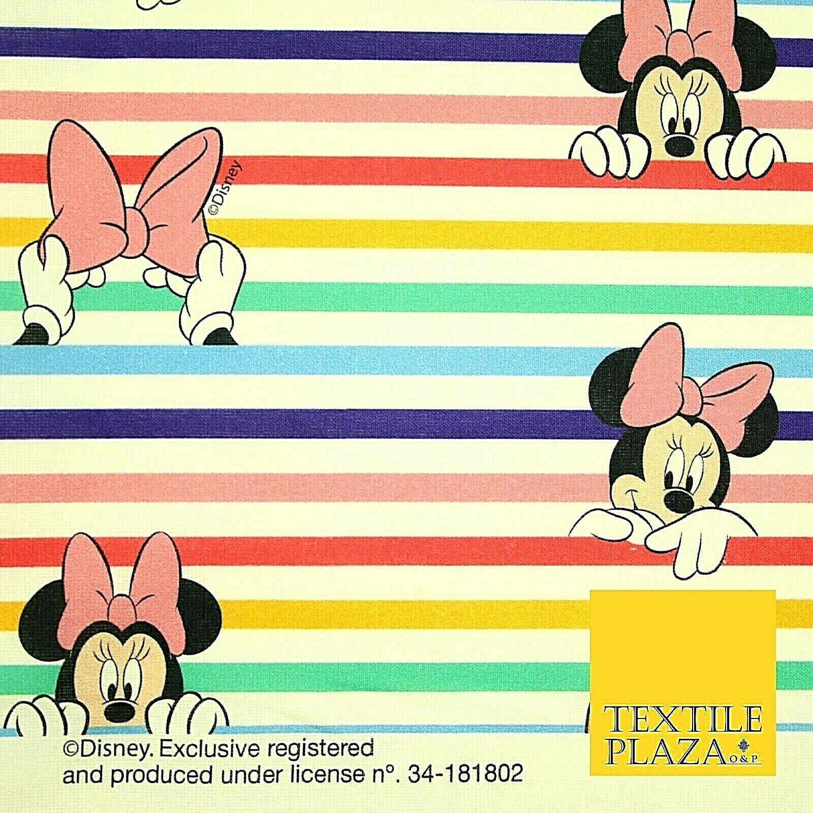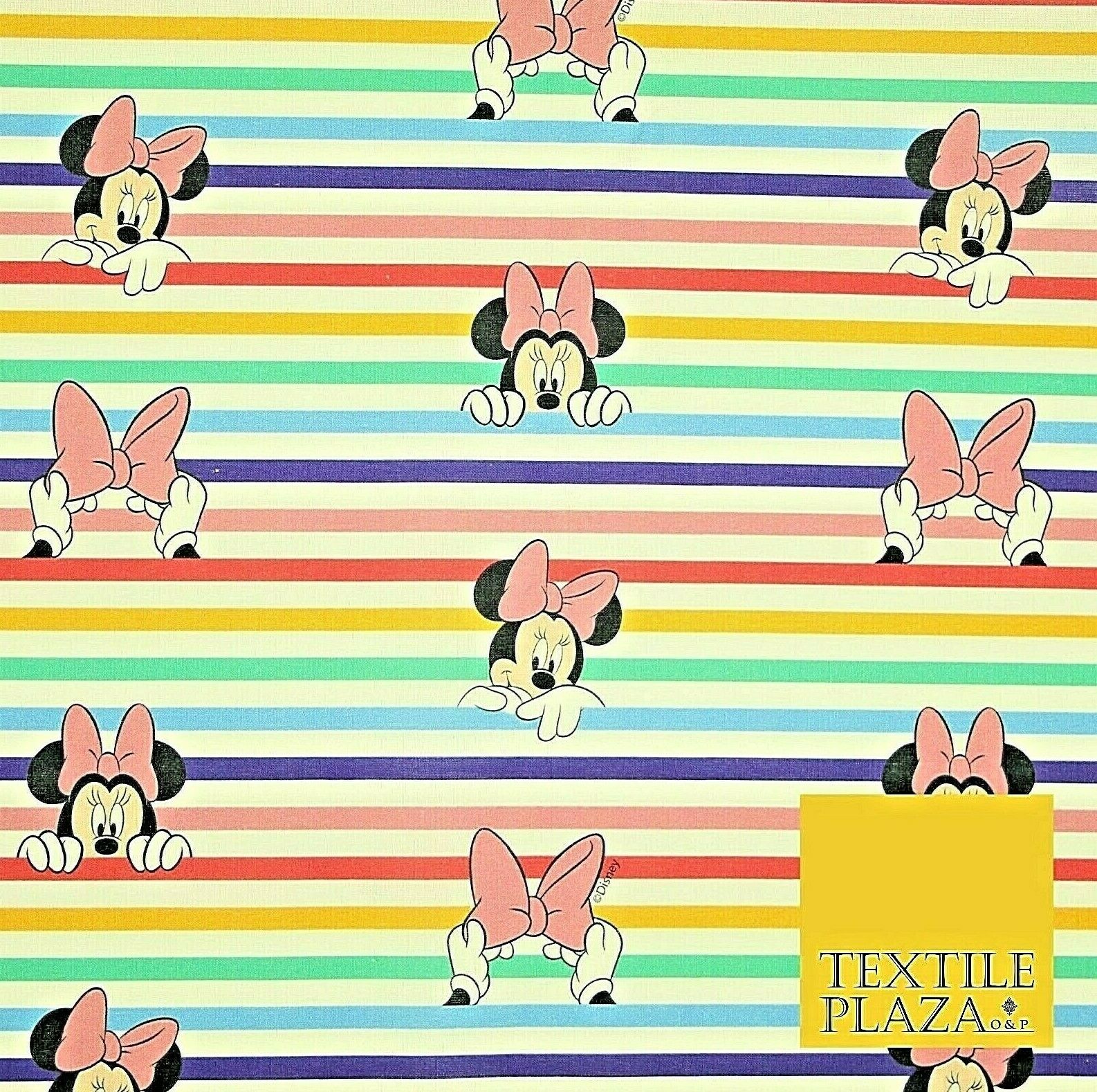 Disney Minnie Mouse Licensed Rainbow Stripe Printed 100% Cotton Fabric 150cm 59"