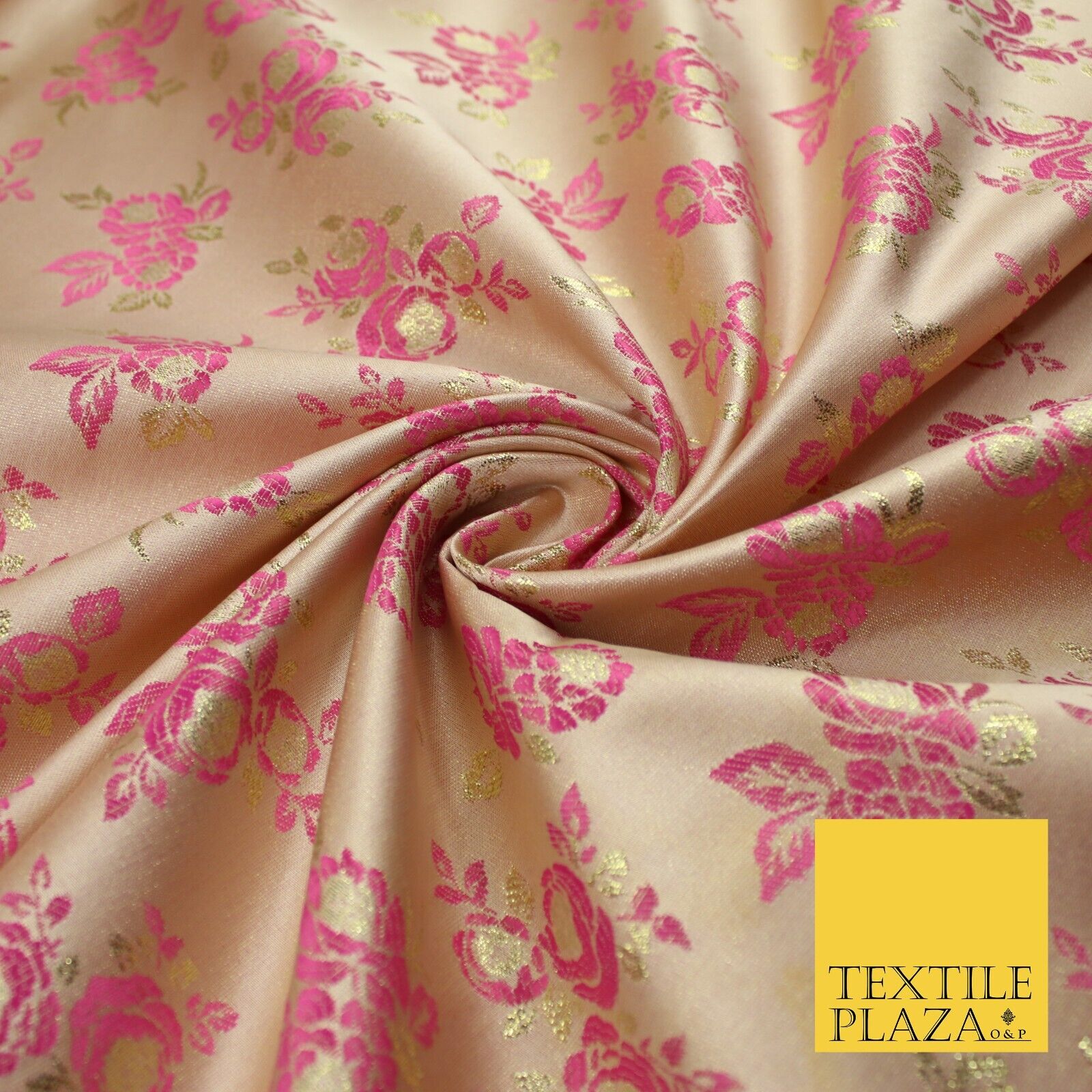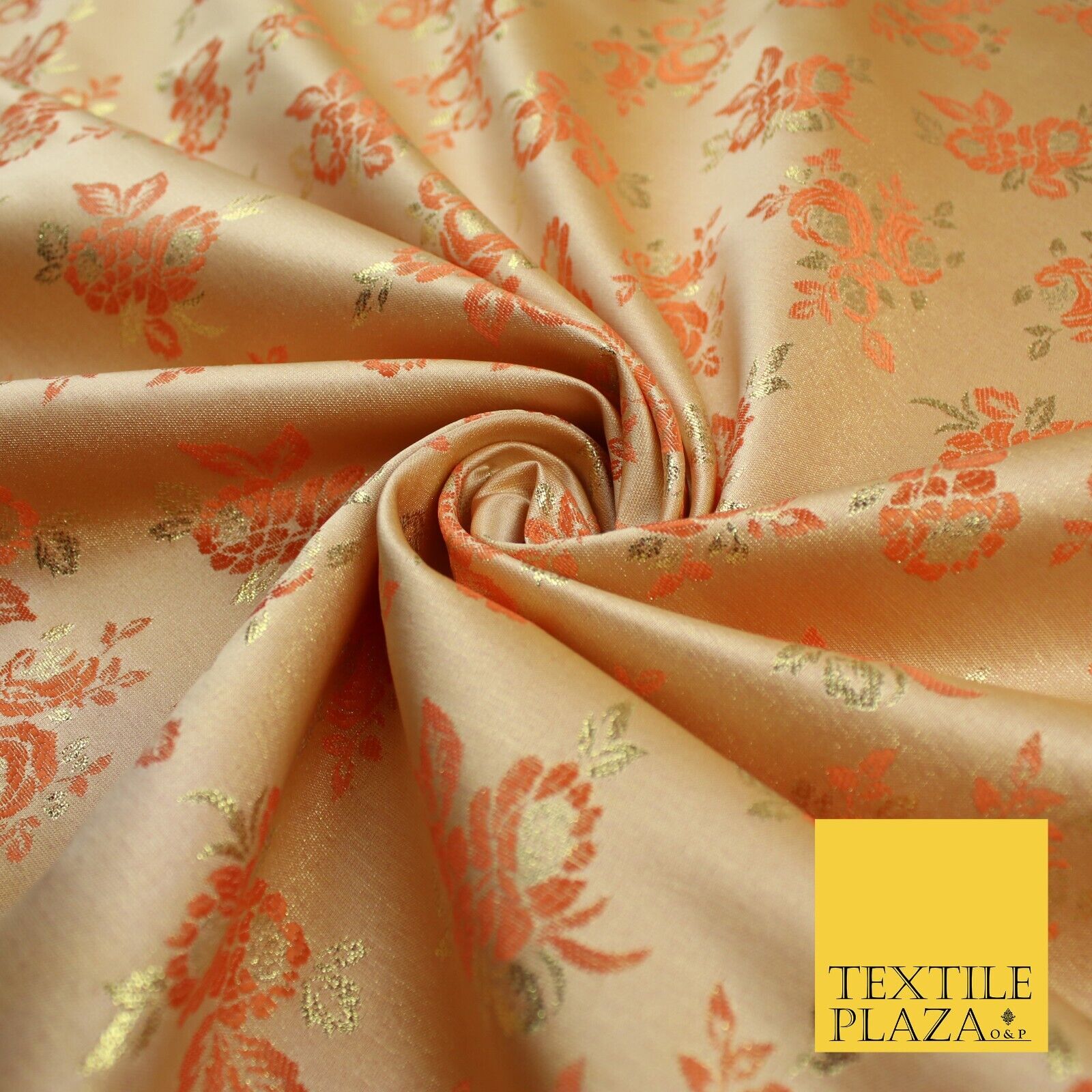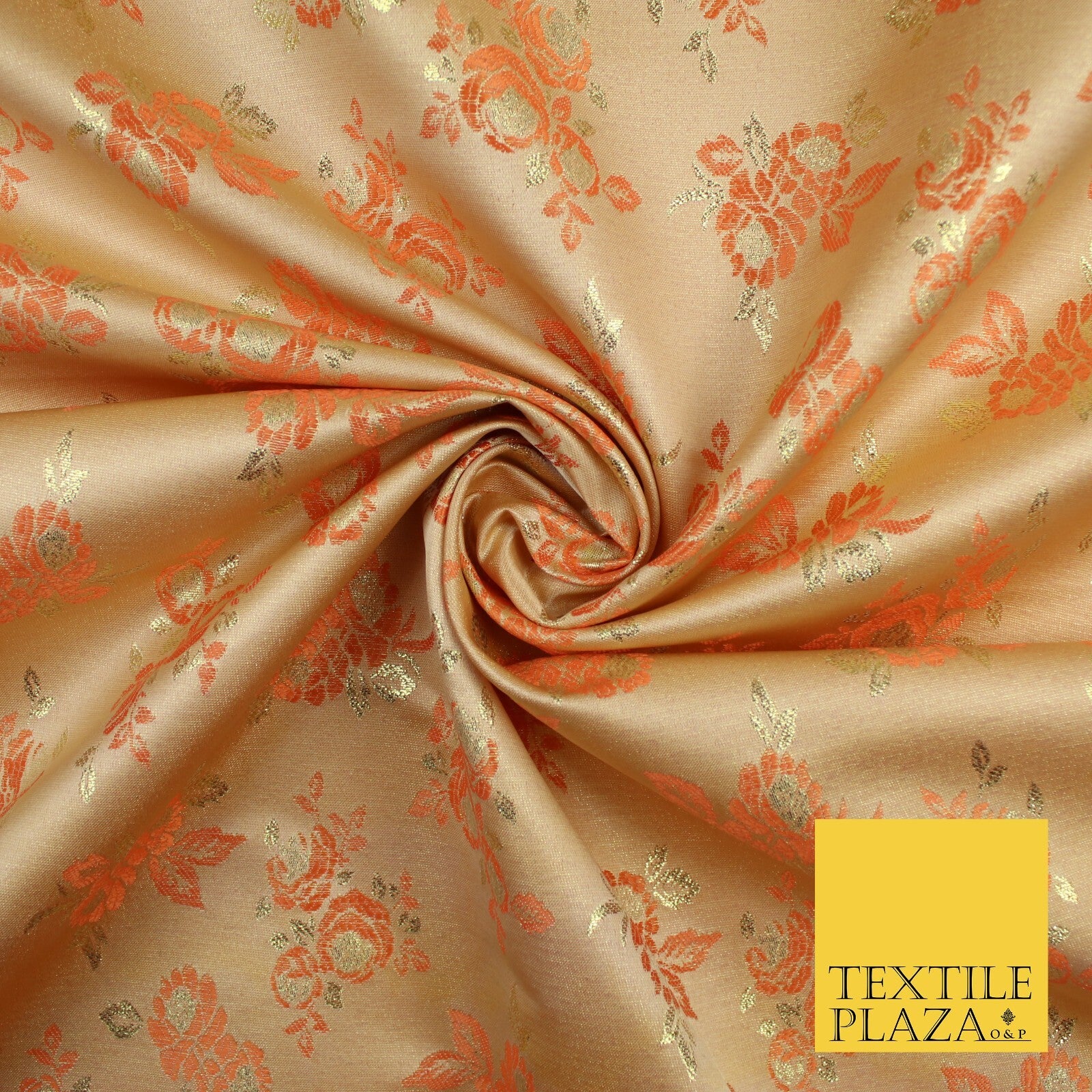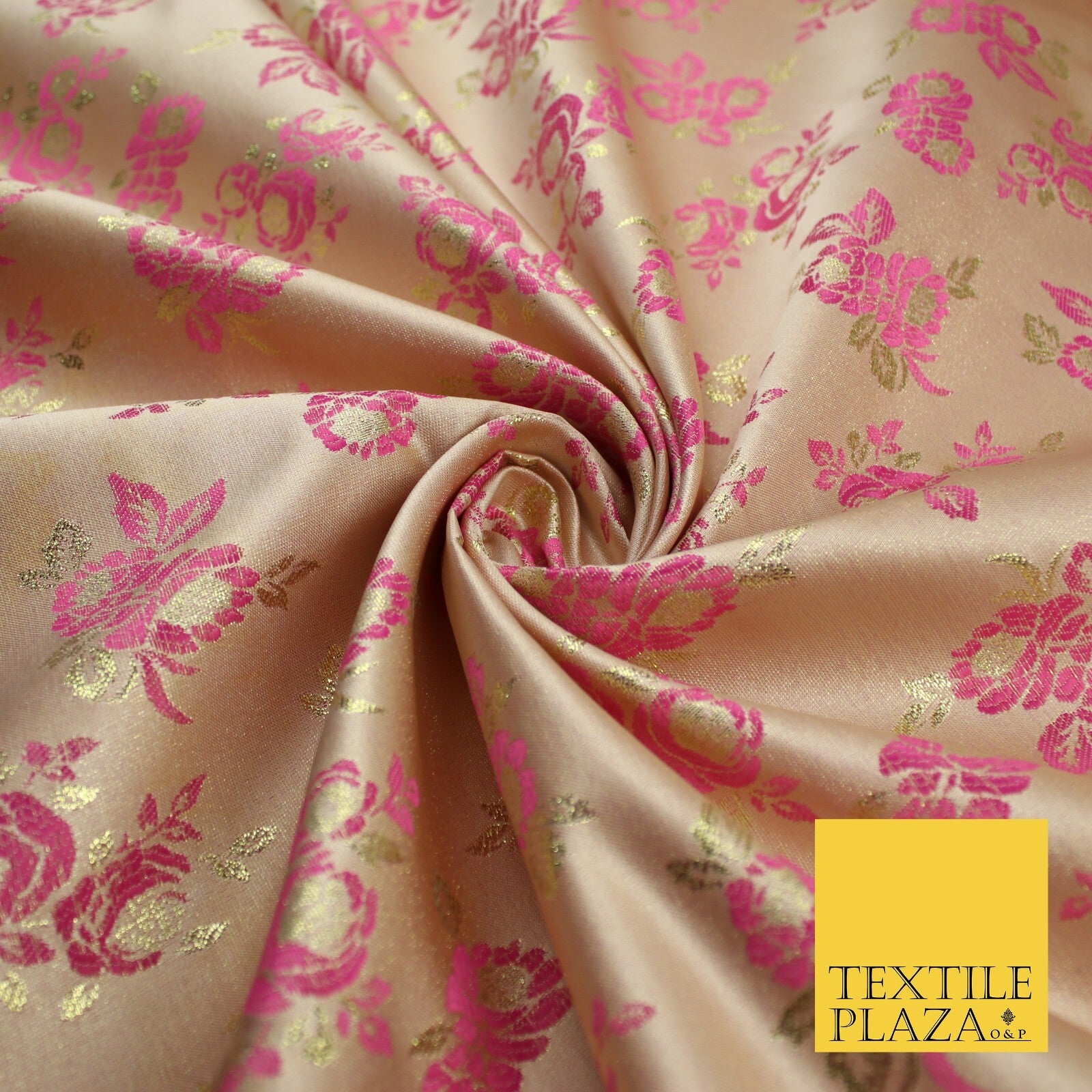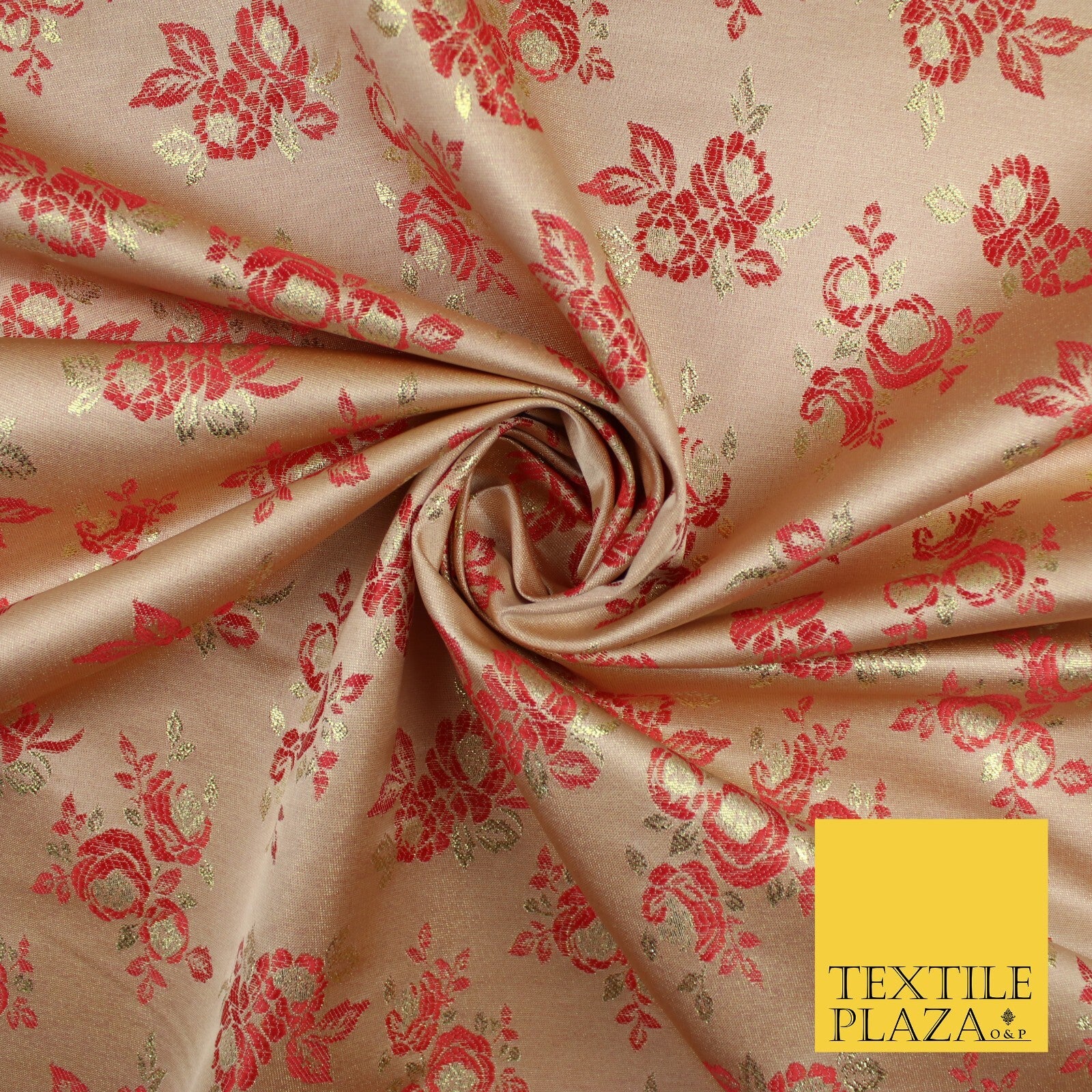 Double Flower Bouquet Design Chinese Brocade Satin Embroidered Dress Fabric 44"