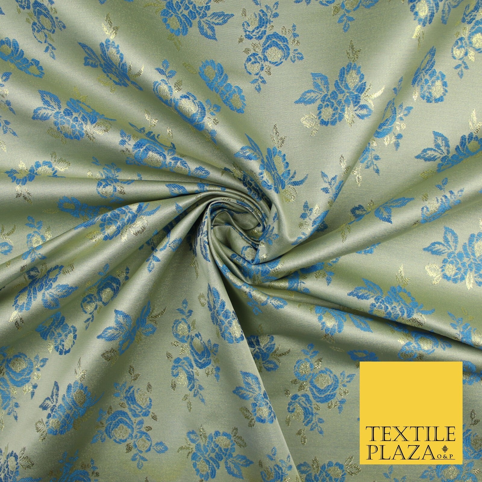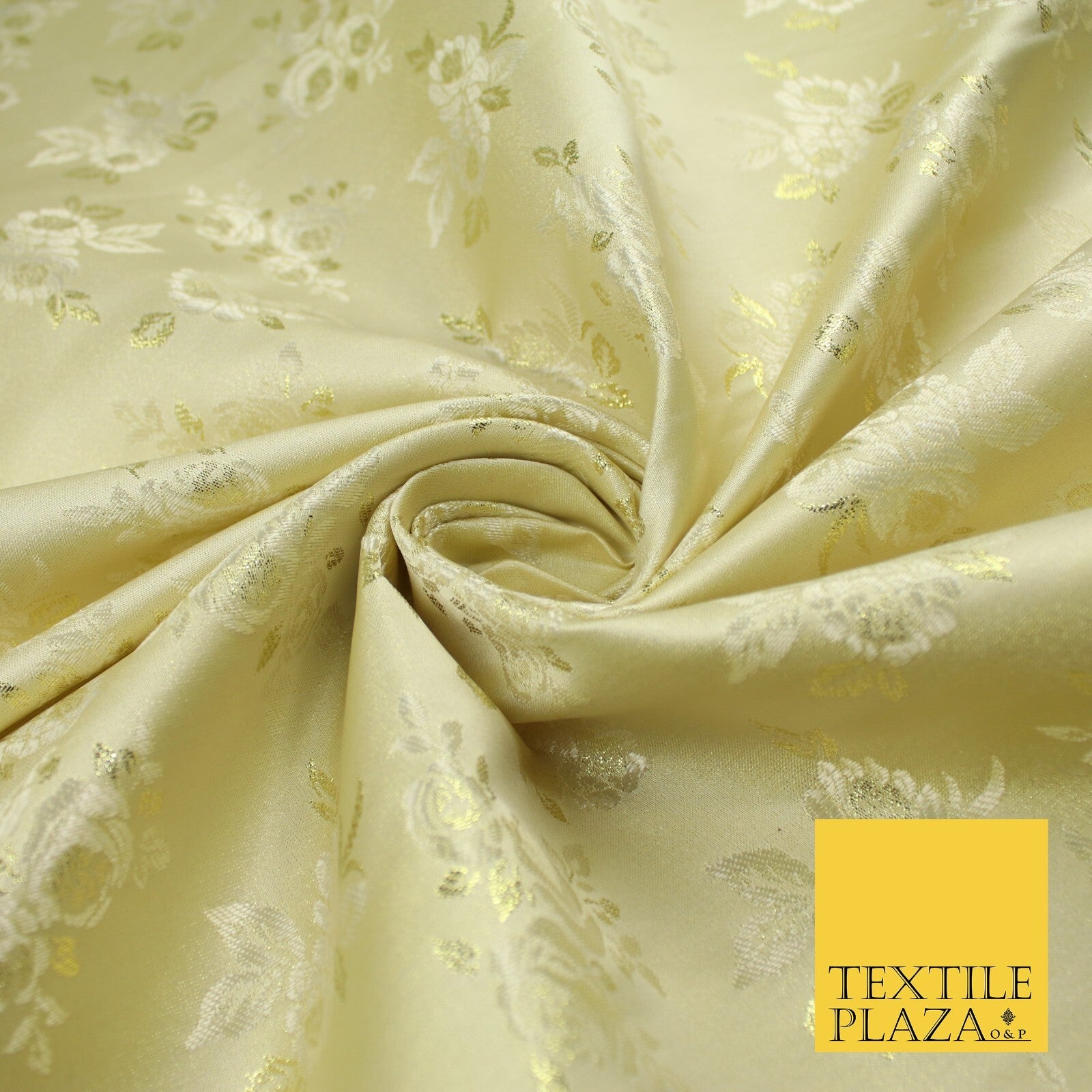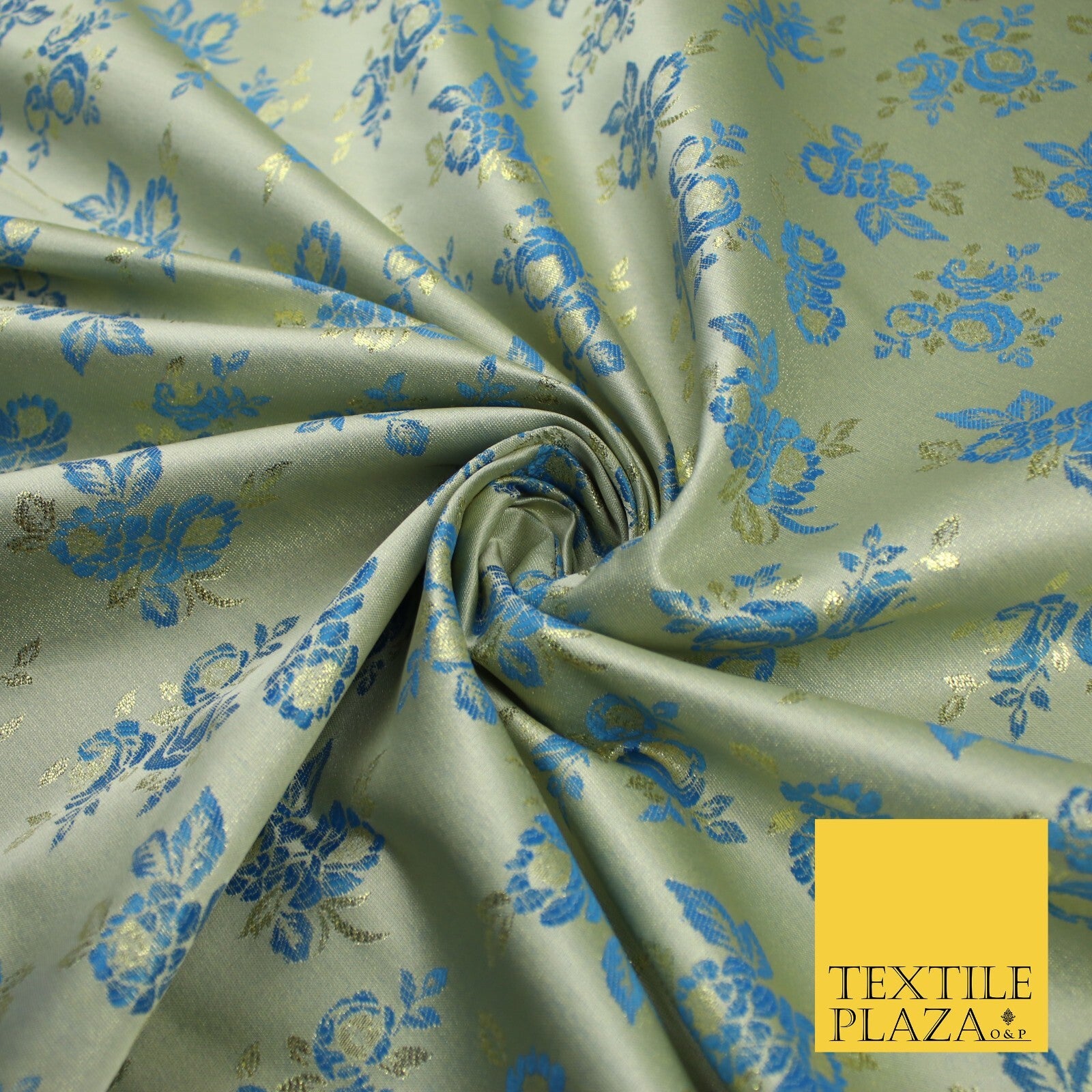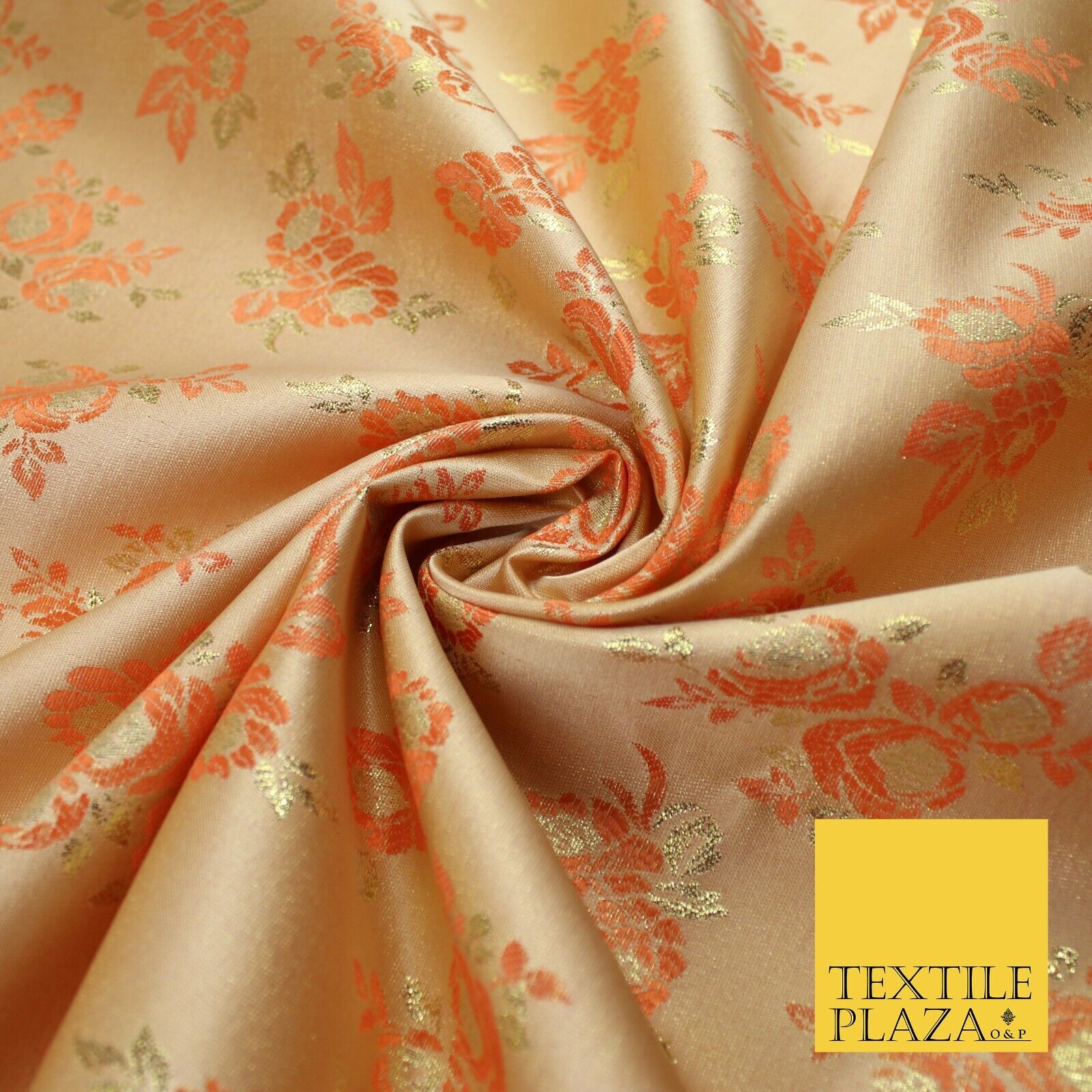Double Flower Bouquet Design Chinese Brocade Satin Embroidered Dress Fabric 44"