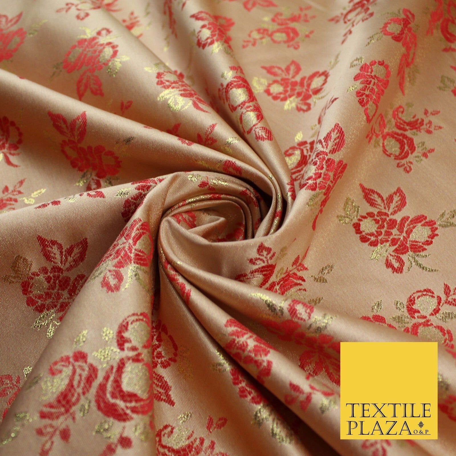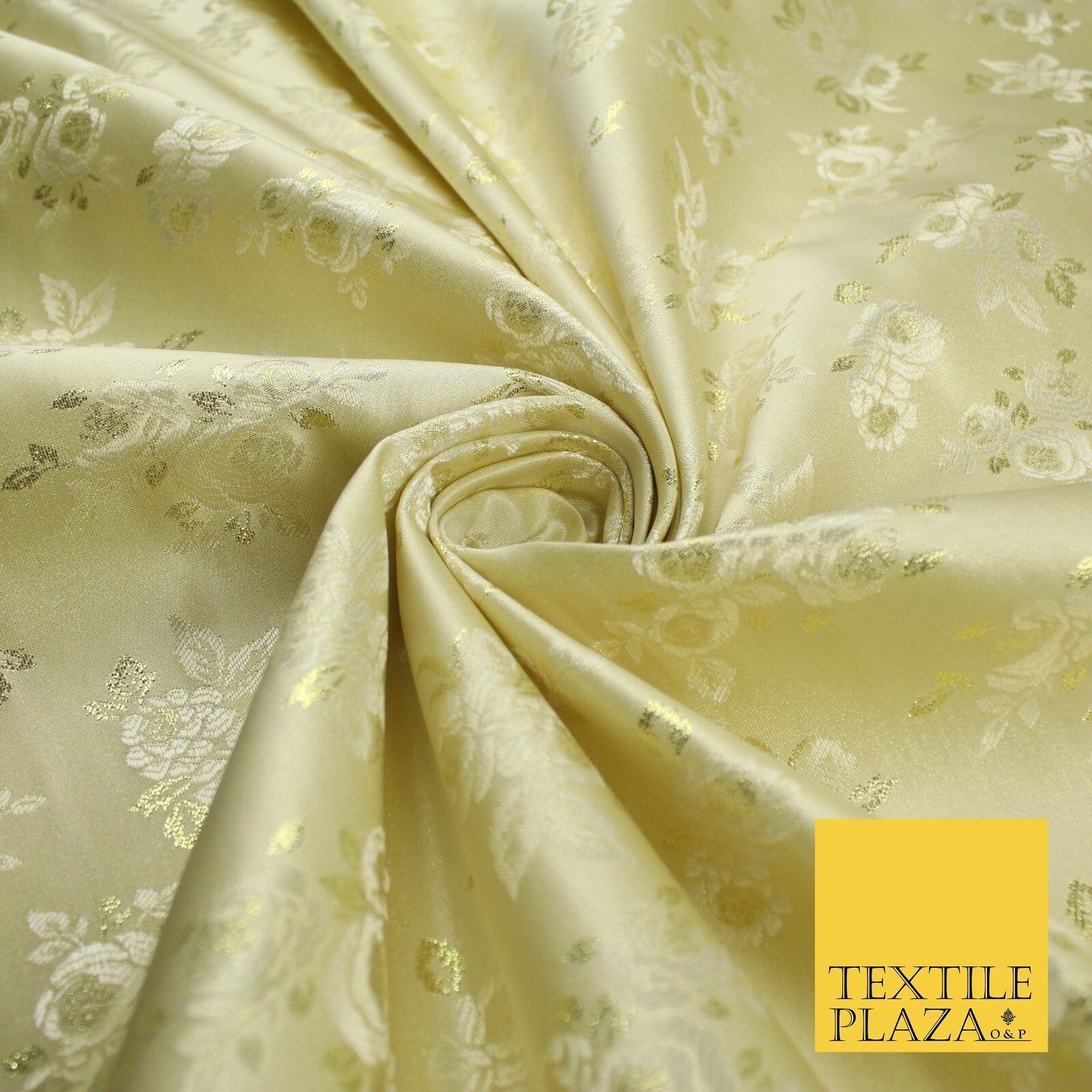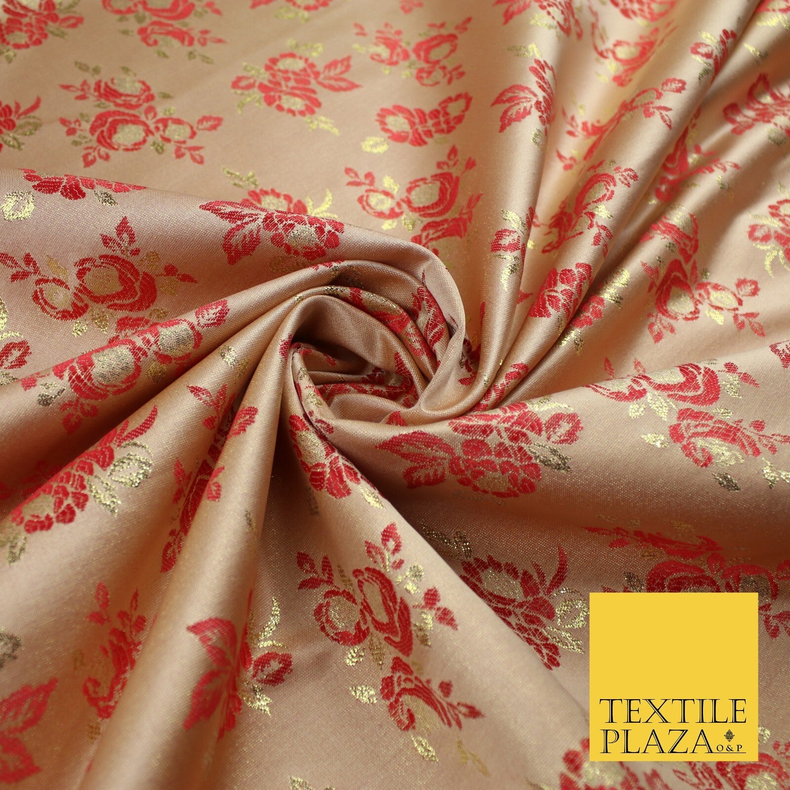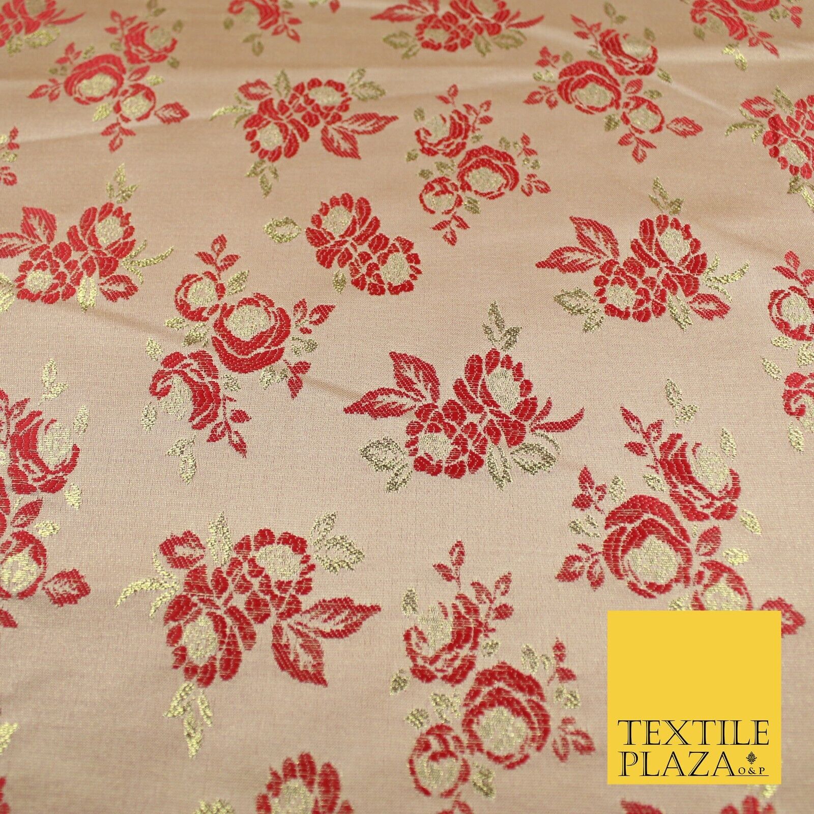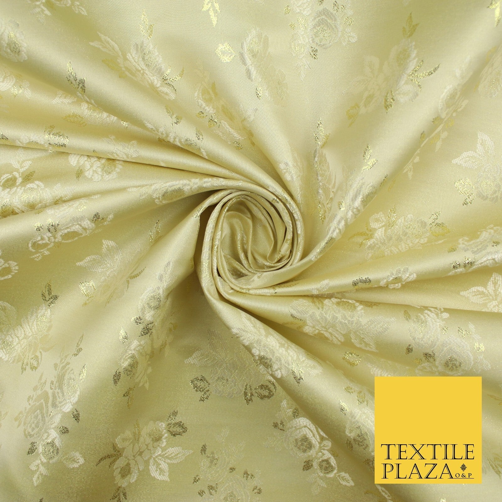 Double Flower Bouquet Design Chinese Brocade Satin Embroidered Dress Fabric 44"