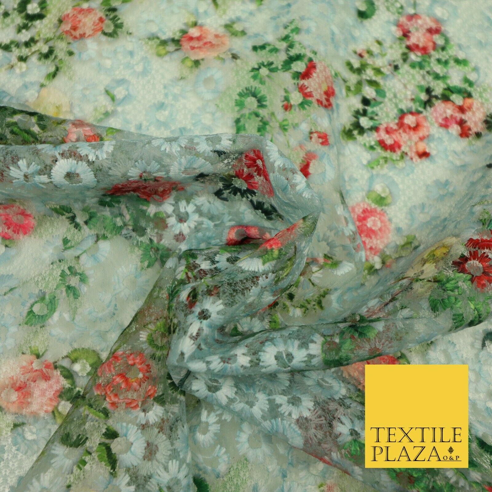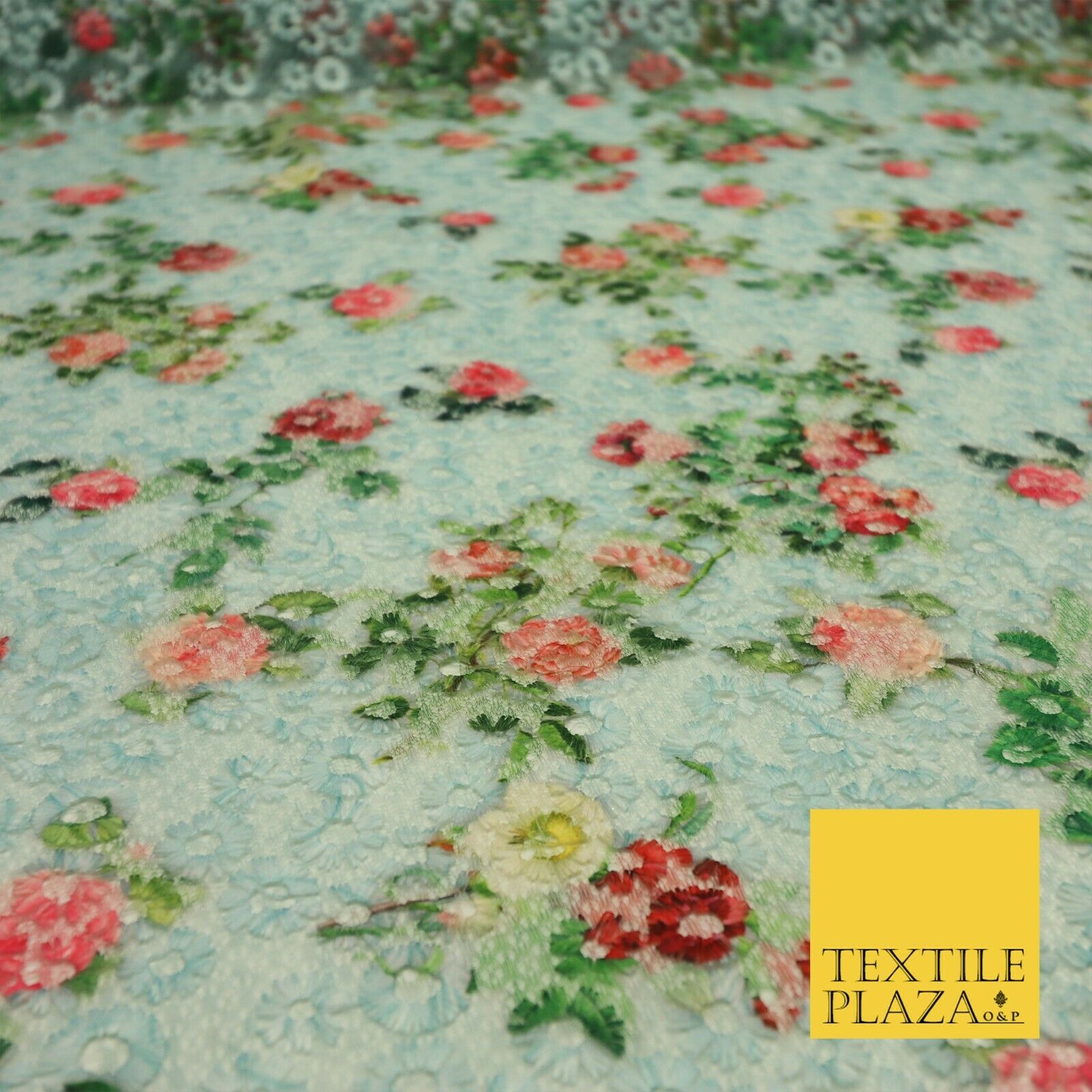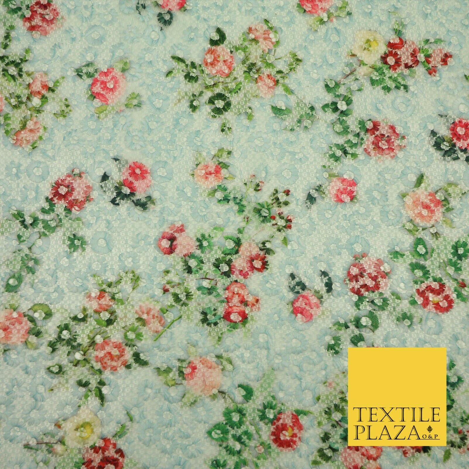 Dusty Blue Floral Digital Printed Embroidered Net Lace Dress Fabric Fashion 1764