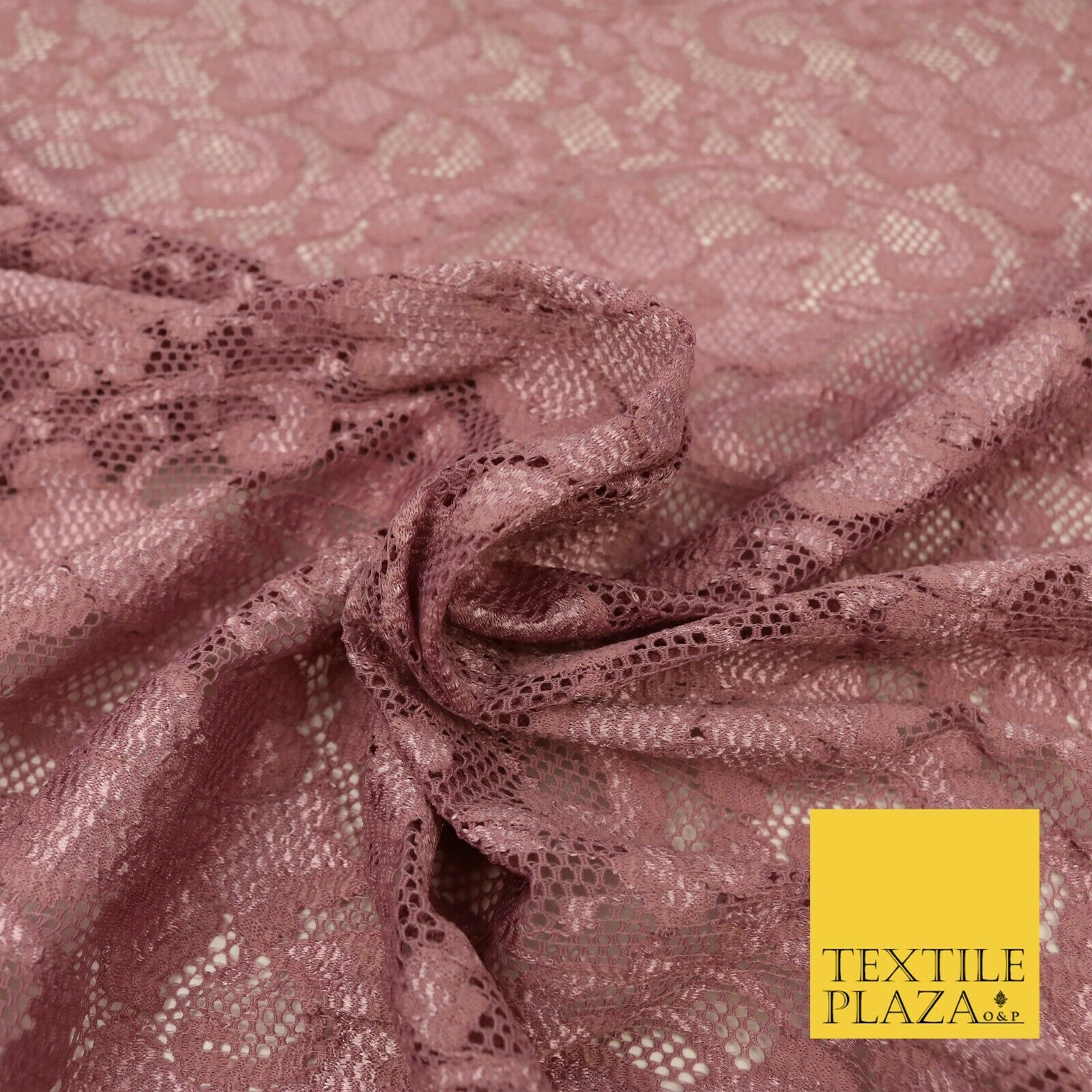 Dusty Pink Mauve Flower Satin Weave Lace Fabric Trendy Dress Fashion 1725