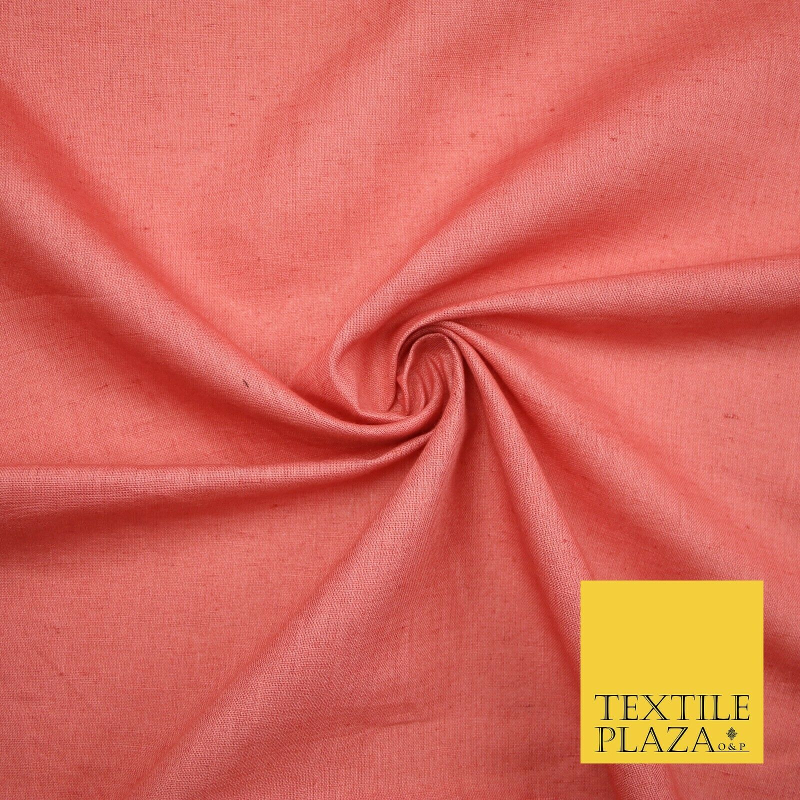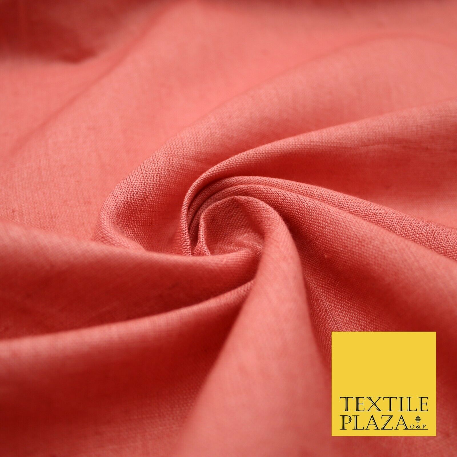 Dusty Salmon Pink Luxury Plain Cotton Linen Fabric 10 Colours Dress Craft 571