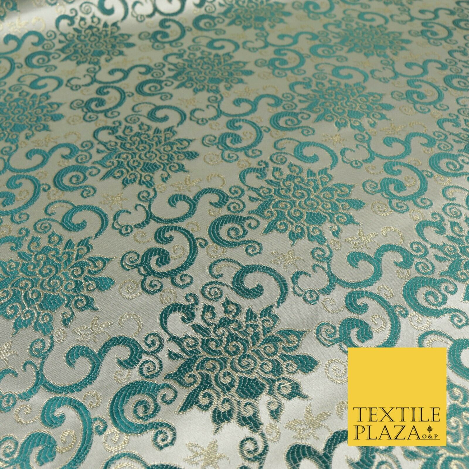EMERALD GREEN Ornamental Swirls Brocade Dress Fabric Metallic Woven Fancy 1556