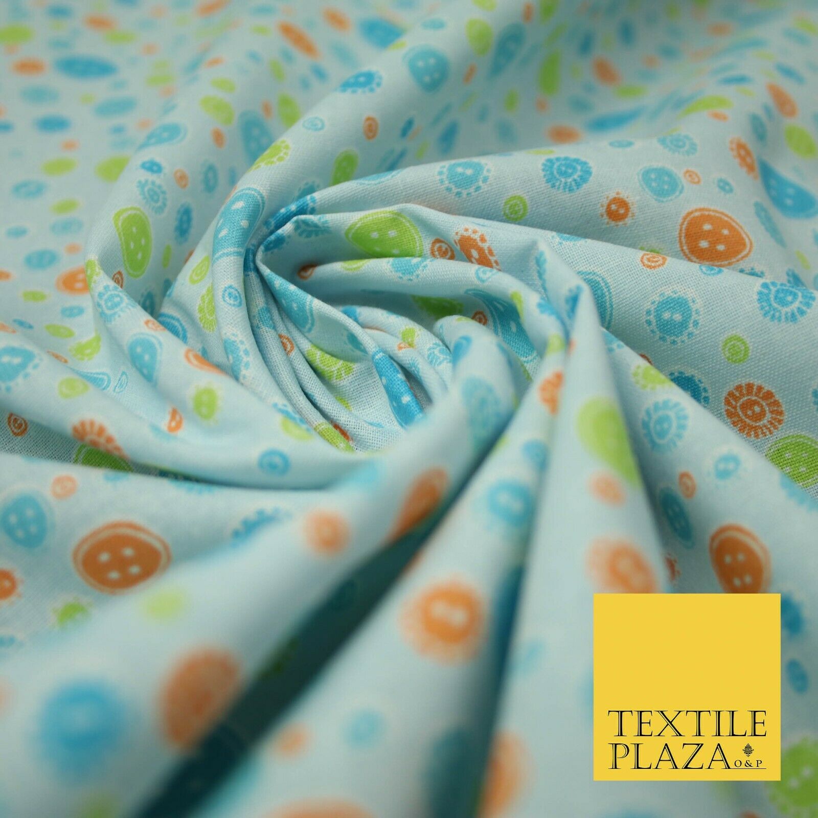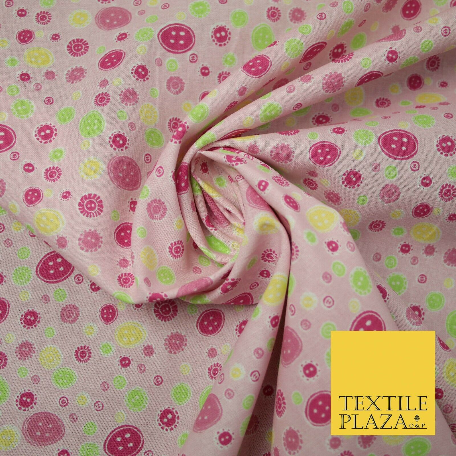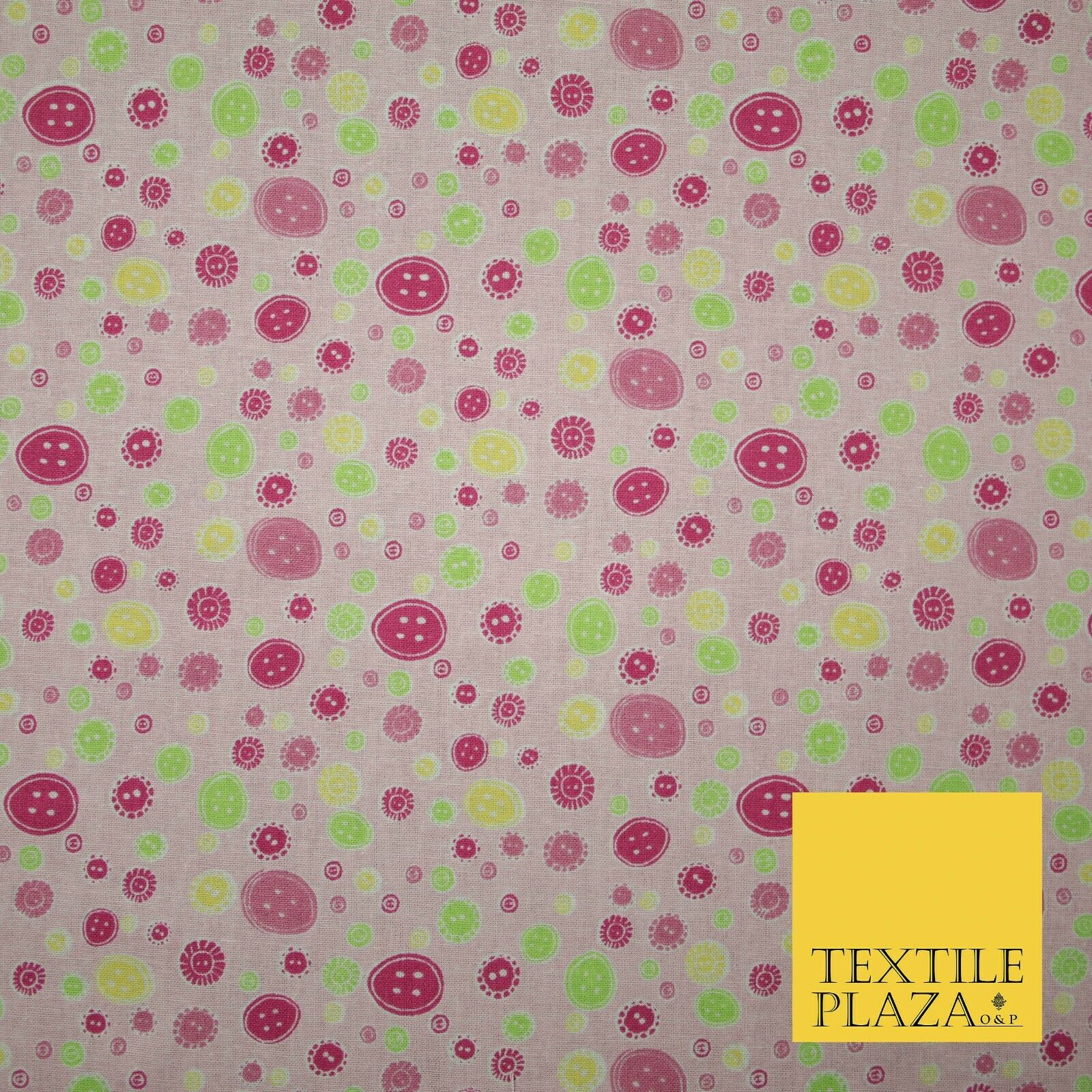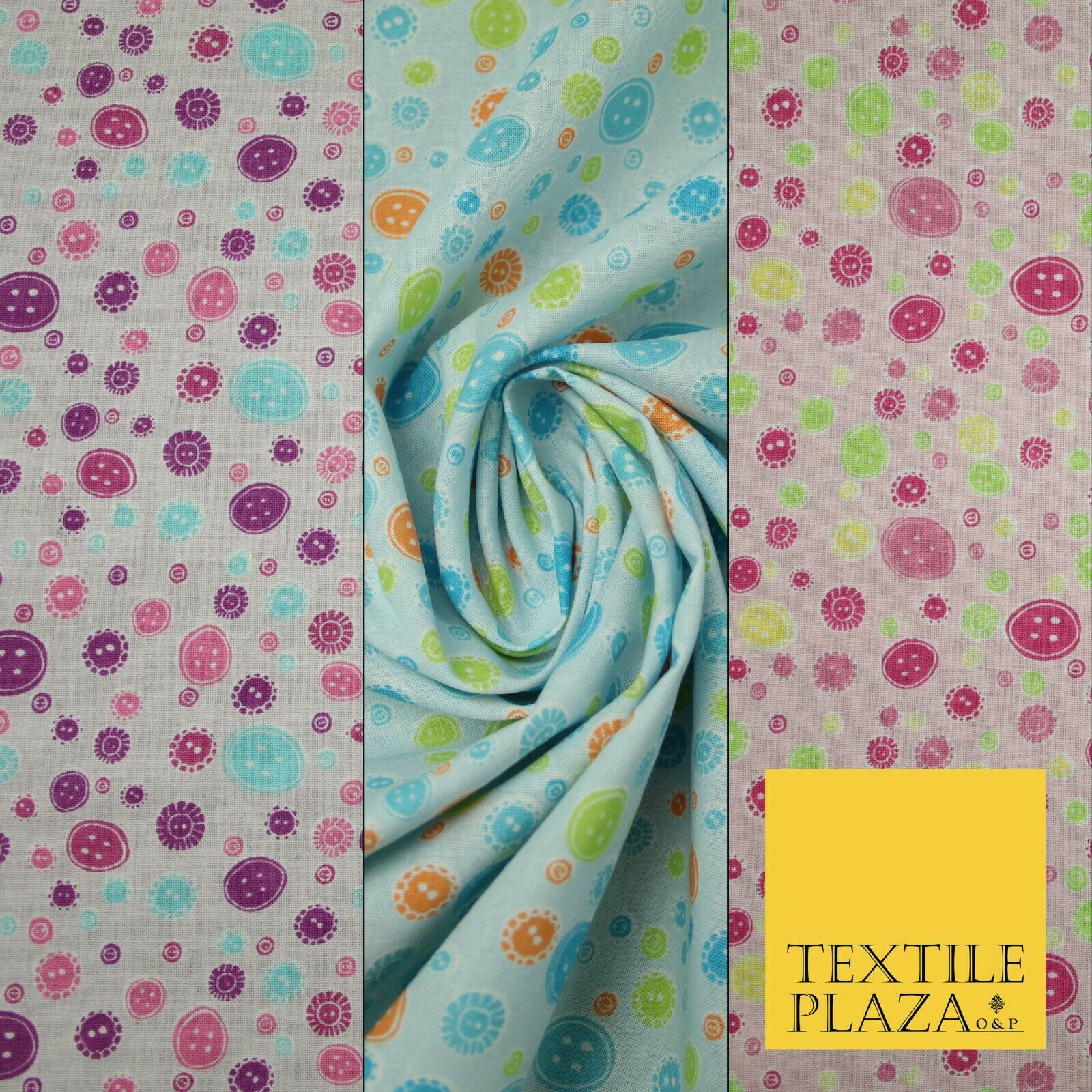 Falling Buttons Design Printed 100% Cotton Fabric Masks Sewing Dress Craft 44"