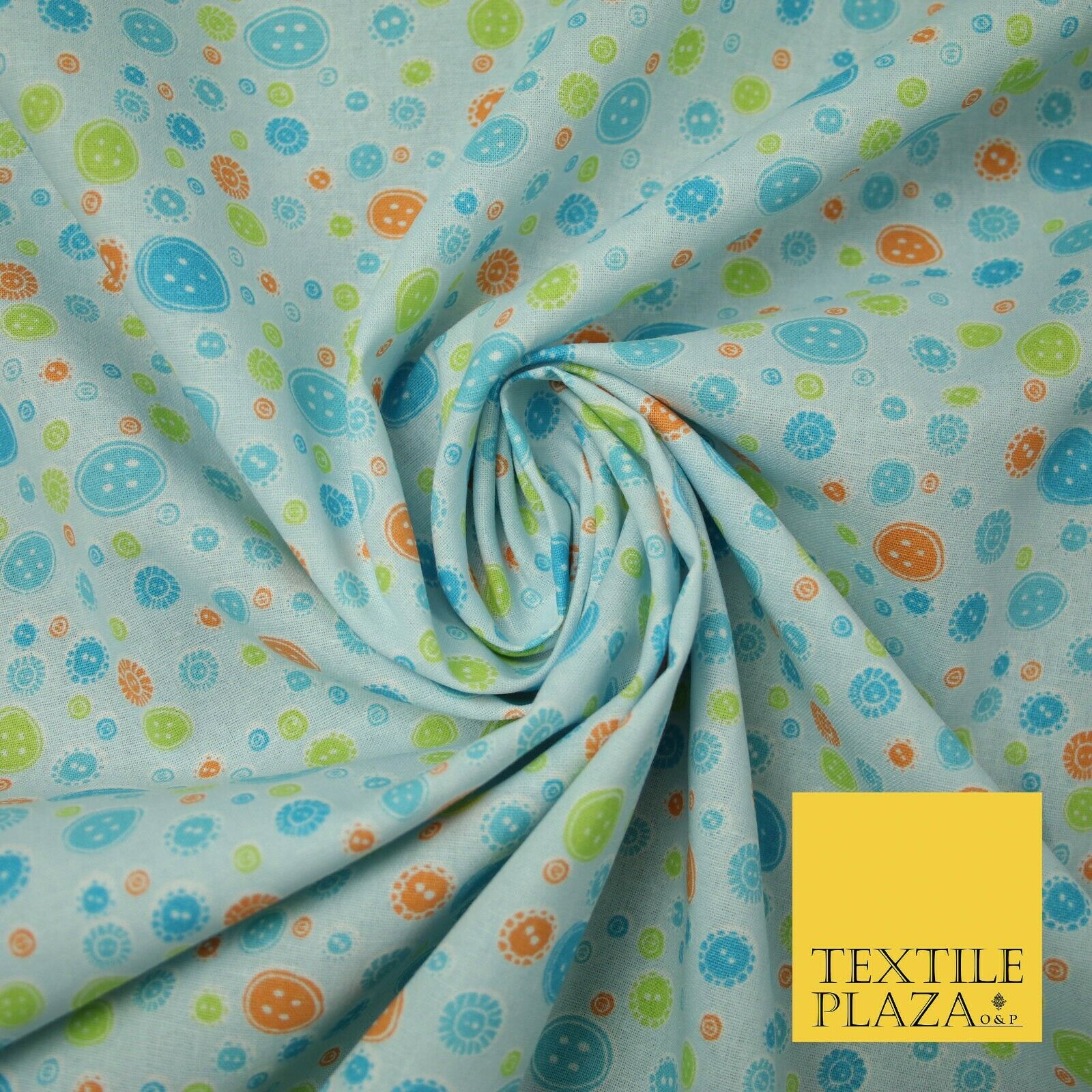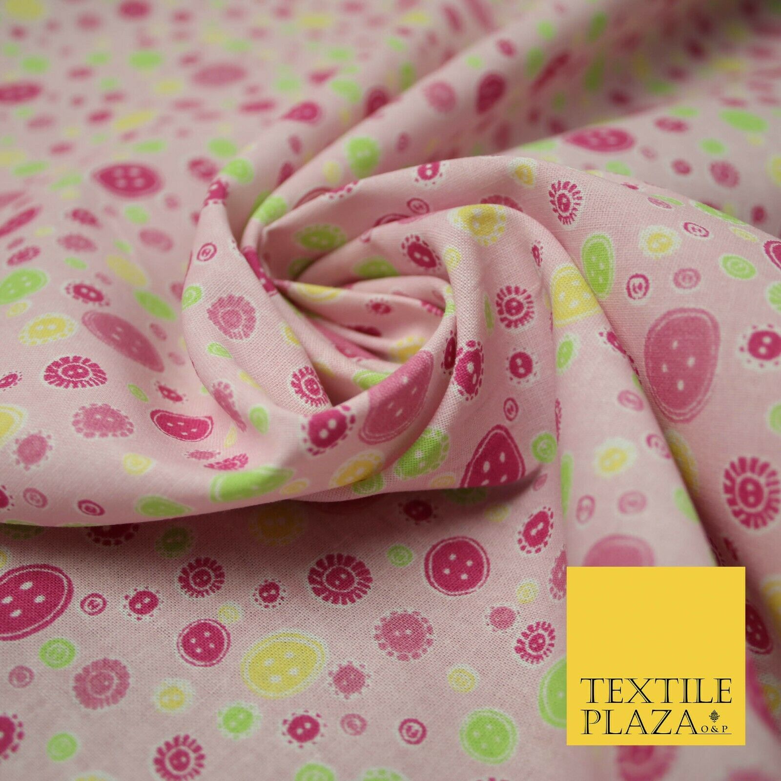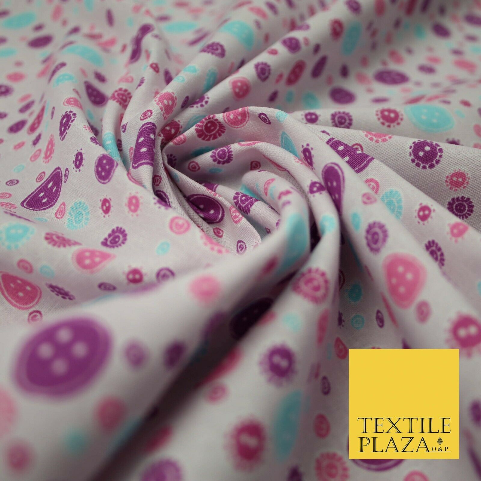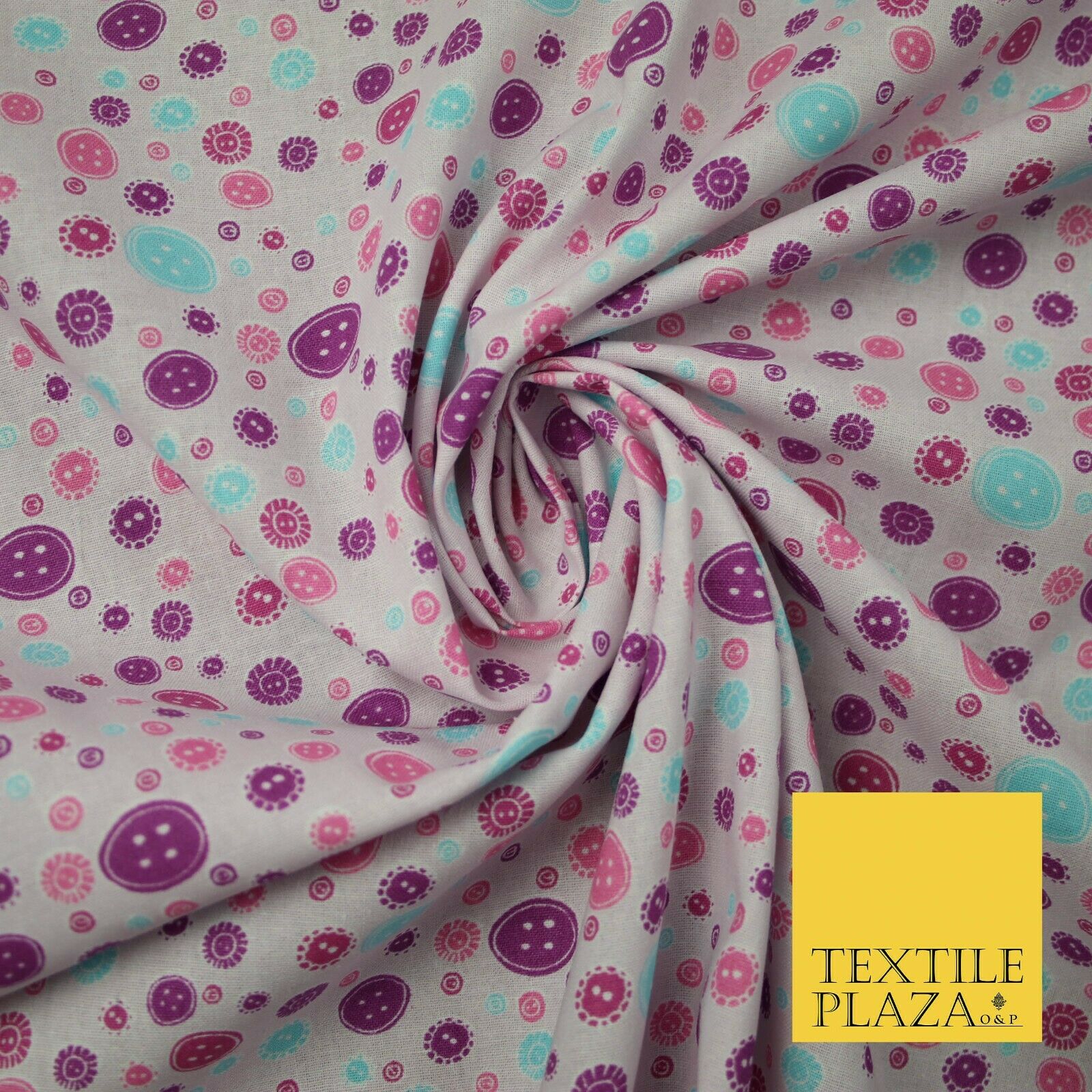 Falling Buttons Design Printed 100% Cotton Fabric Masks Sewing Dress Craft 44"