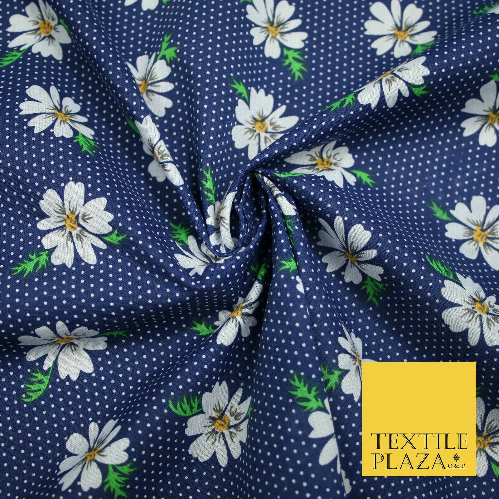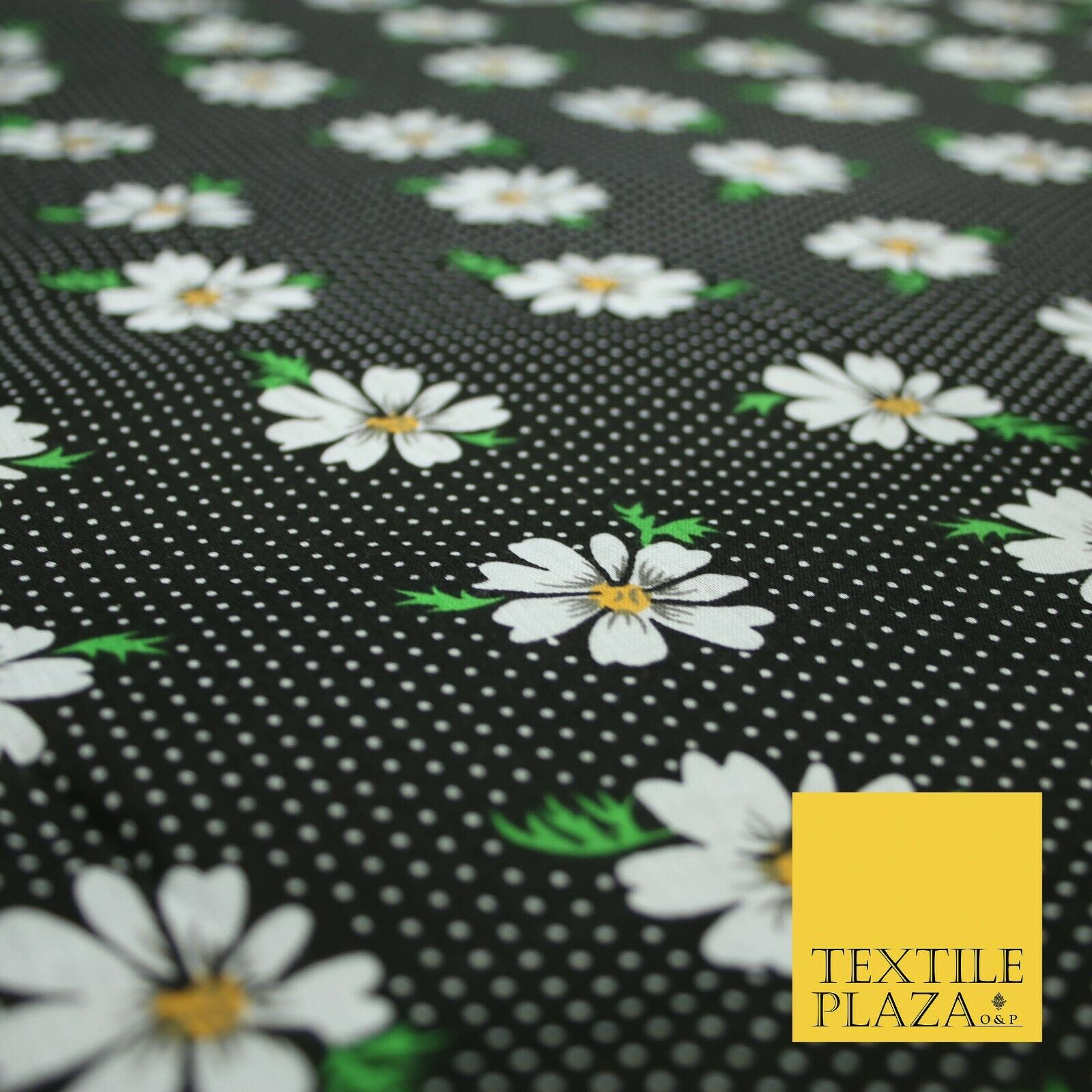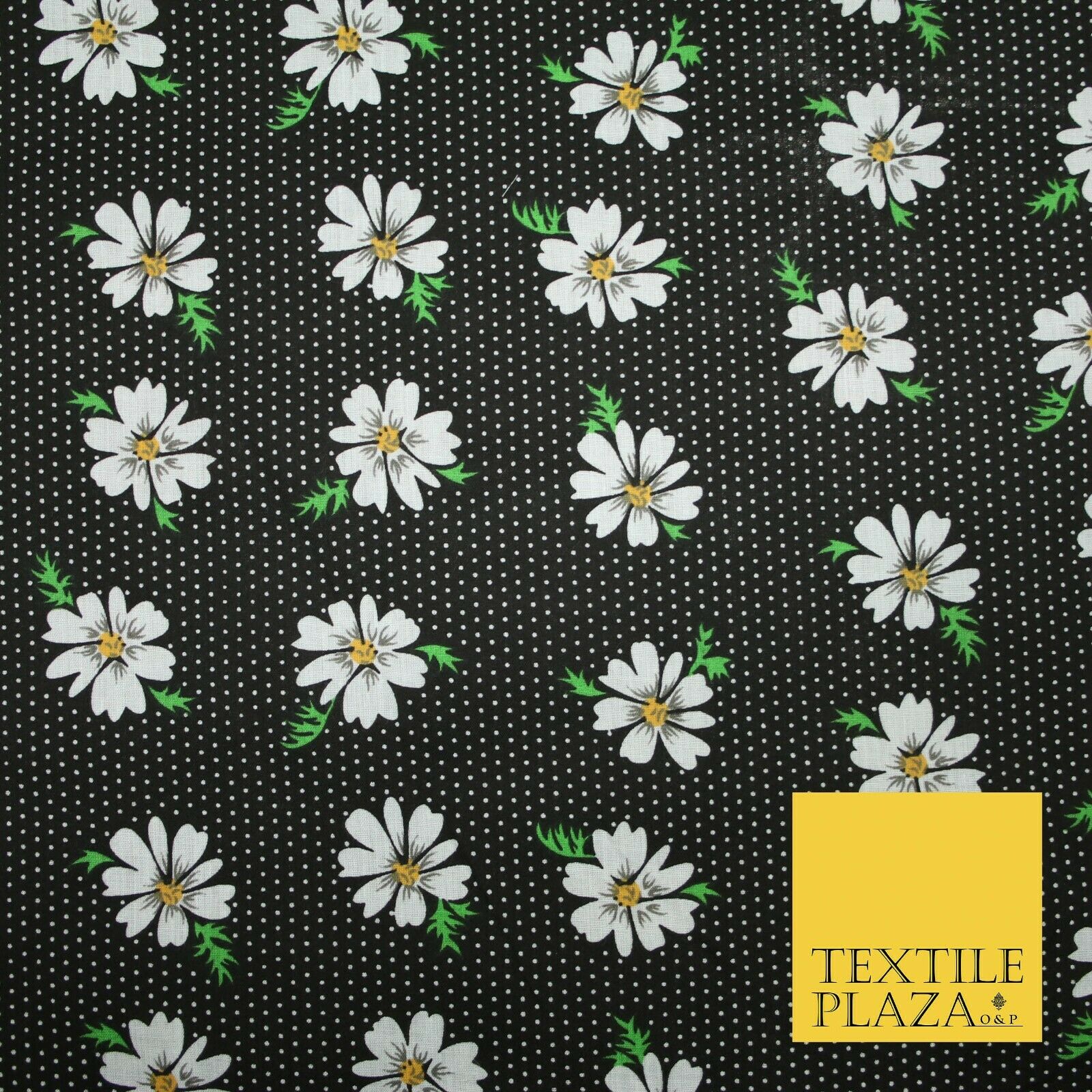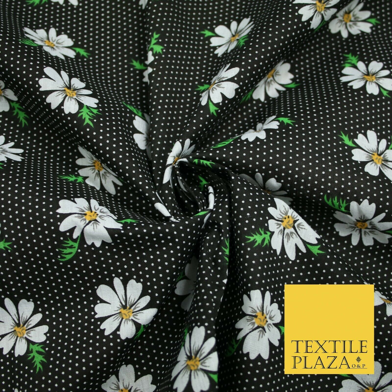 Premium Falling Daisy Flowers Pin Dot Print Poly Cotton Fabric