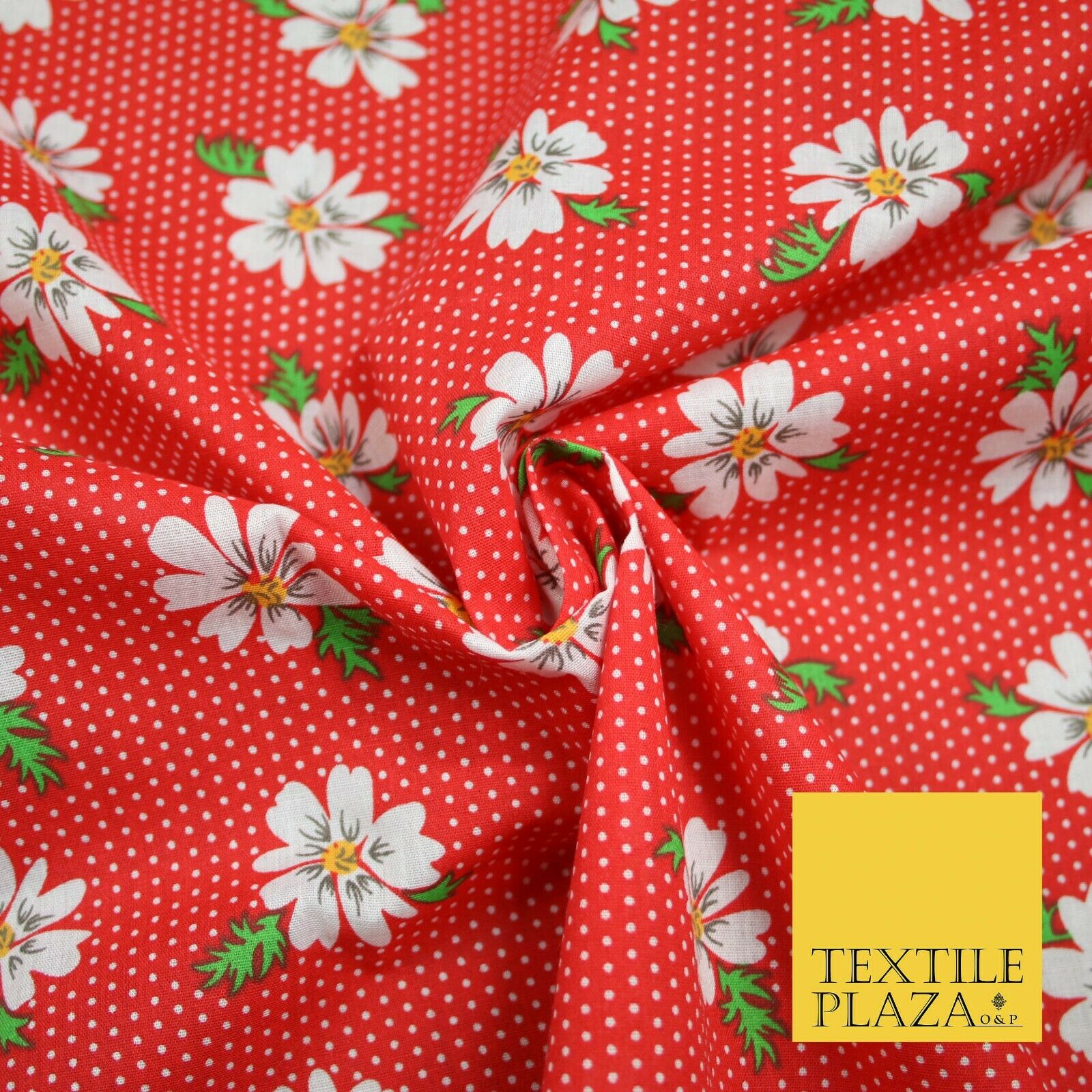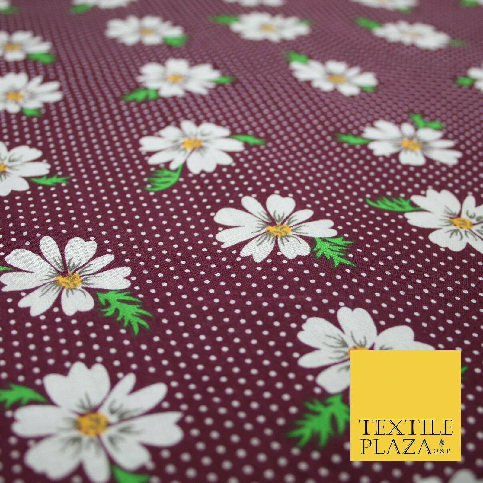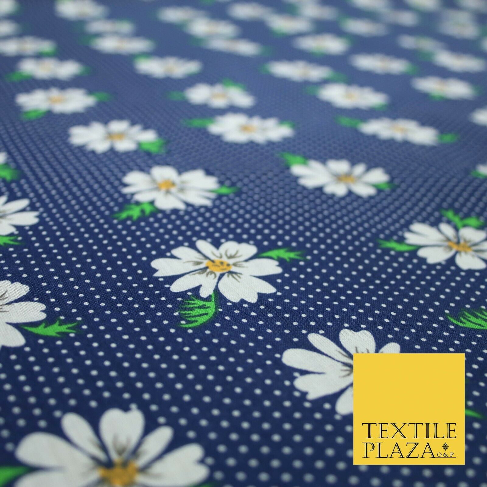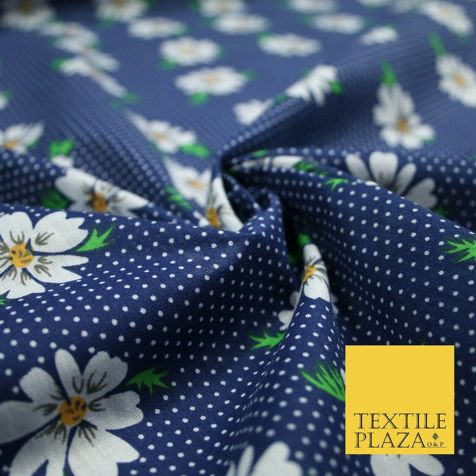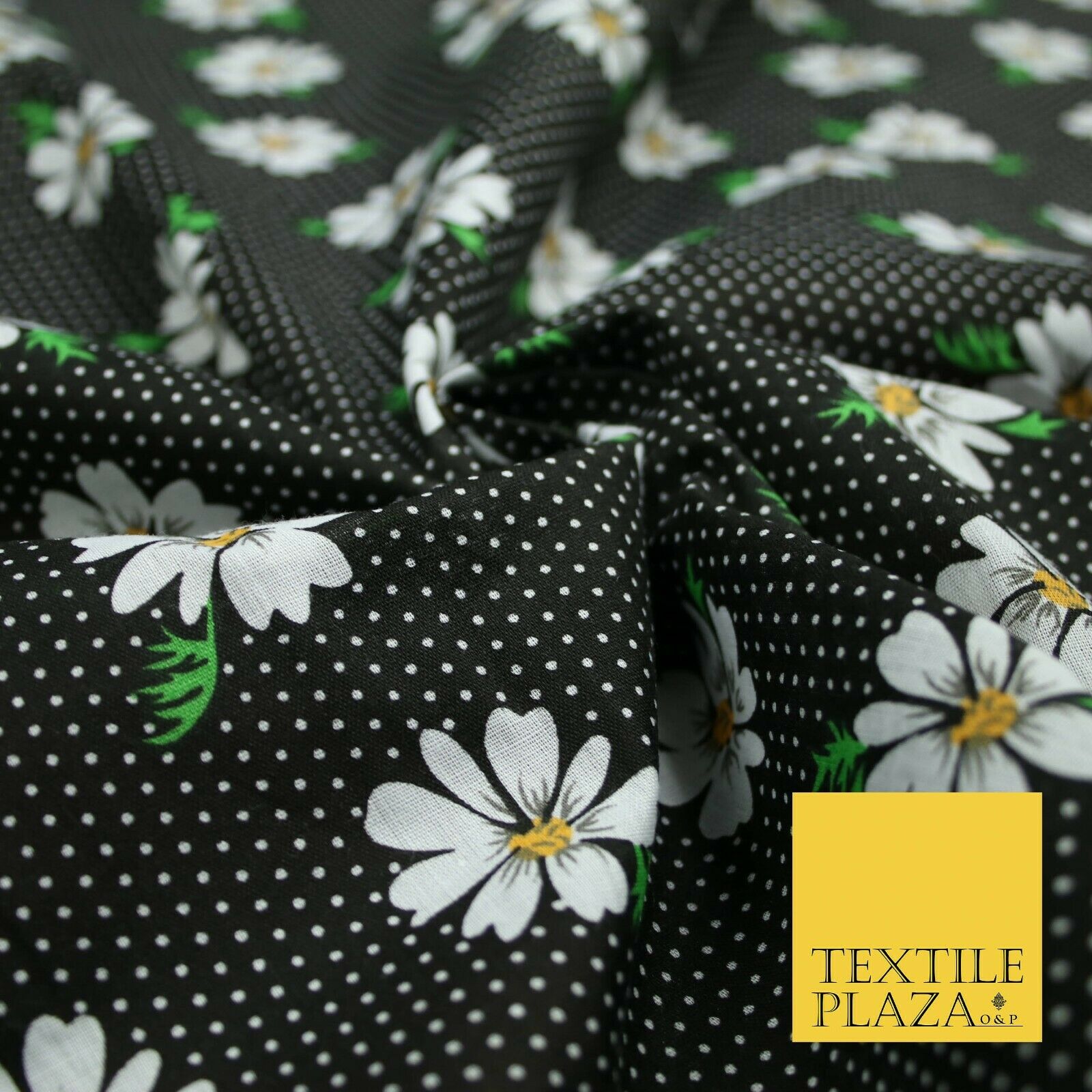 Premium Falling Daisy Flowers Pin Dot Print Poly Cotton Fabric